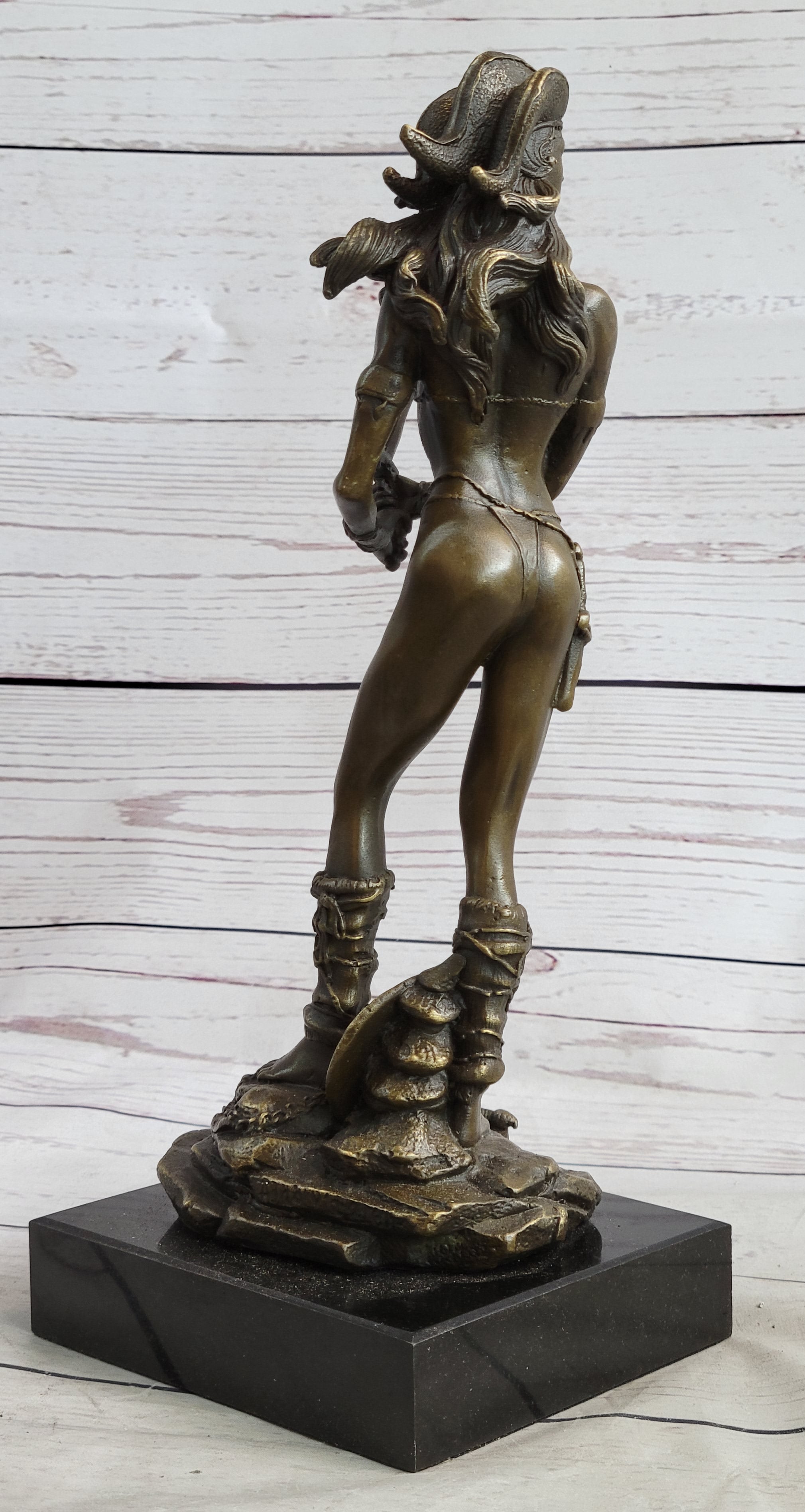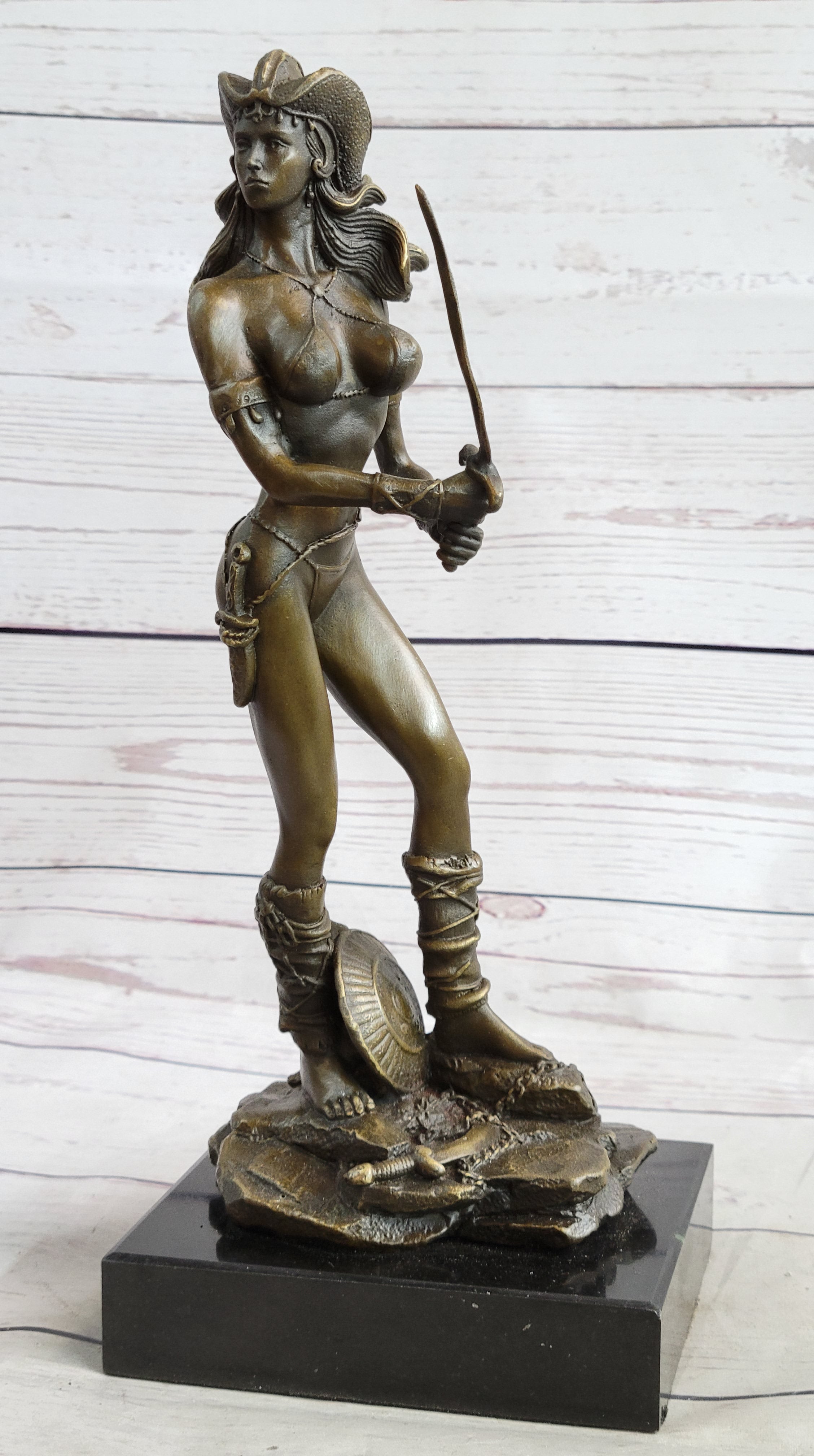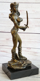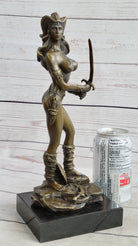 Handmade Vitaleh Original Bronze Sculpture Female Amazon Warrior Marble Figure