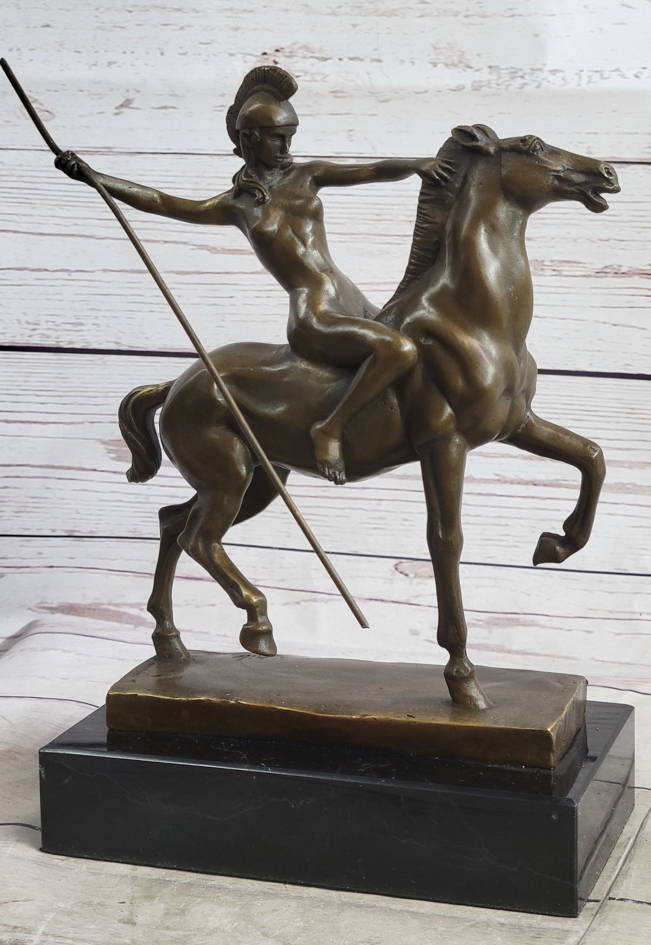 Hippolyta Amazon Warrior Princess Nude Girl on Horseback Bronze Statue Sculpture