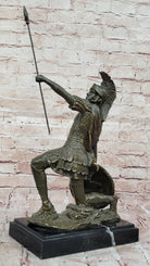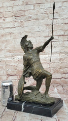 Kneeling Roman Legion Centurion Warrior Bronze Sculpture with Spear & Shield