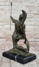 The Hot Cast Roman Gladiator Spartan Warrior Bronze Sculpture by Drouot is a bold tribute to ancient strength and valor. Expertly handmade using the lost wax method, this genuine bronze statue features a rich brown patina that enhances the intricate detailing of the warrior’s armor, shield, and commanding stance.