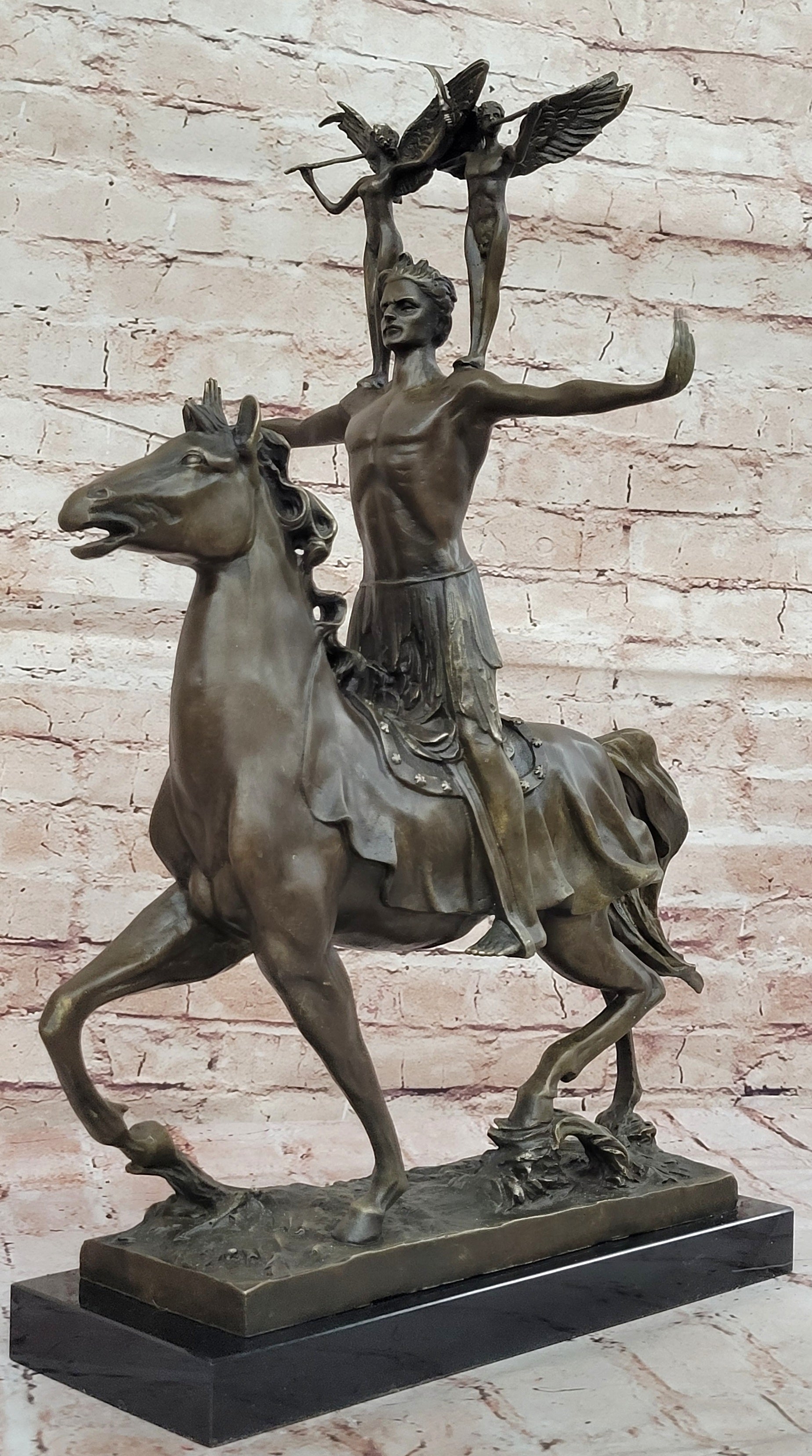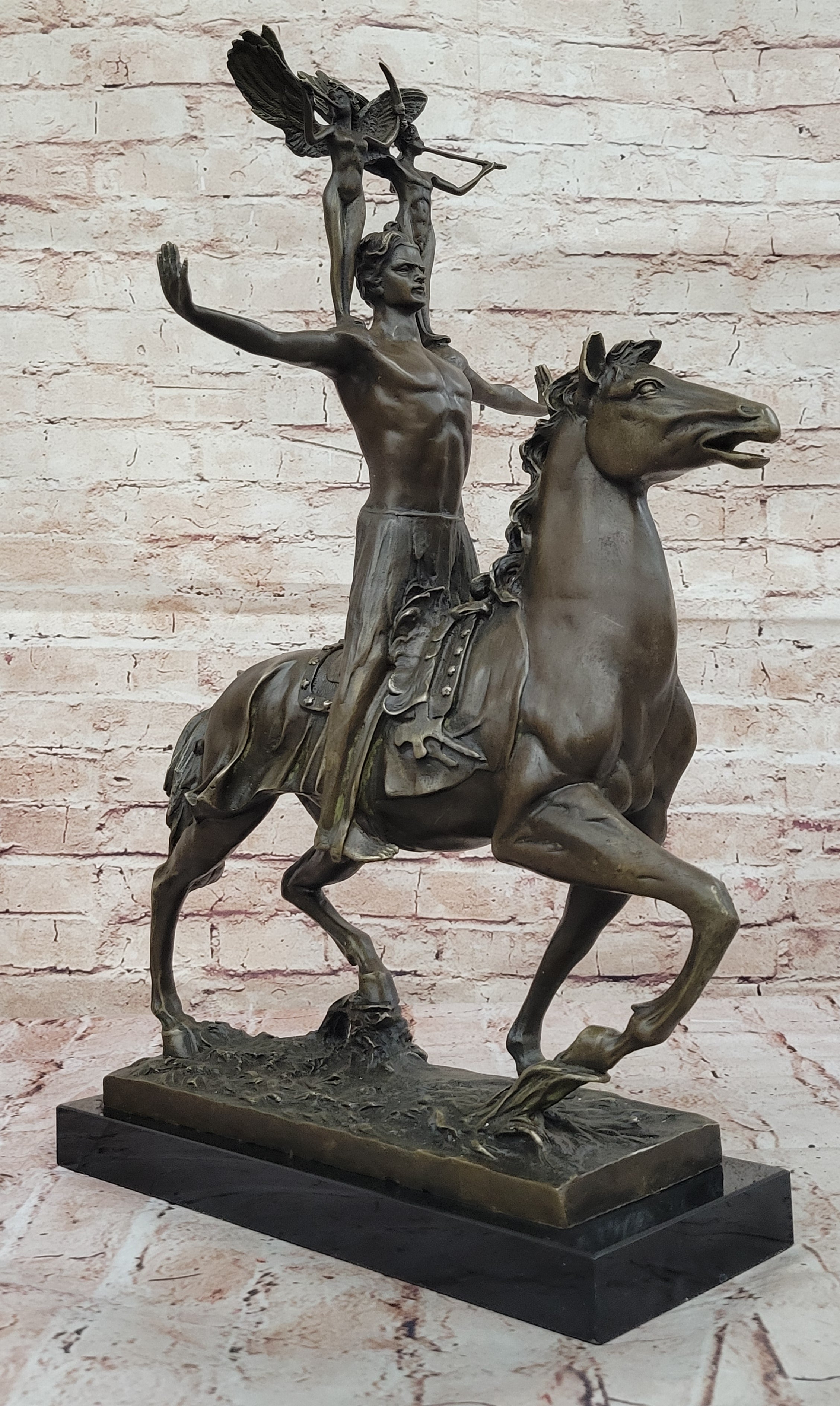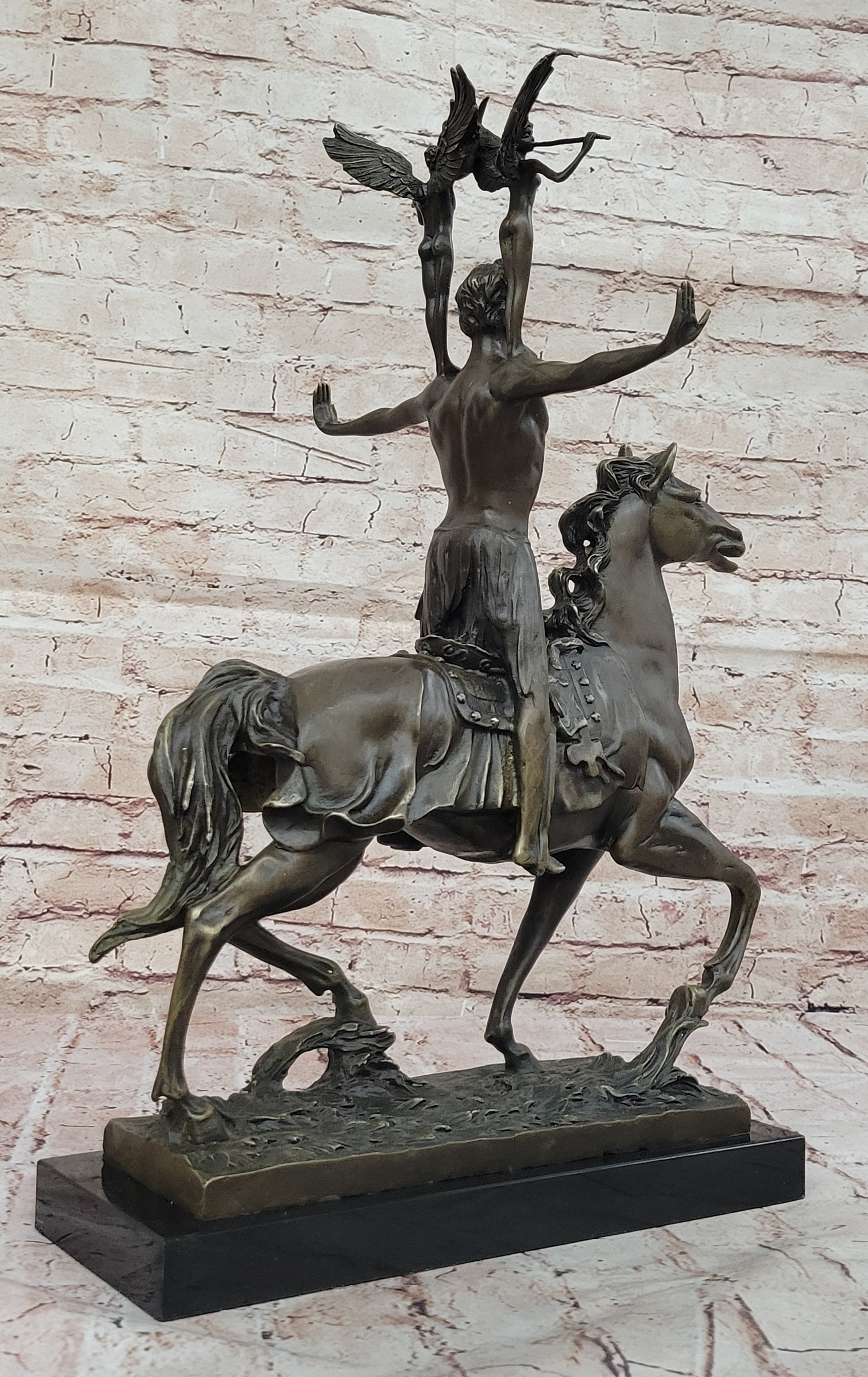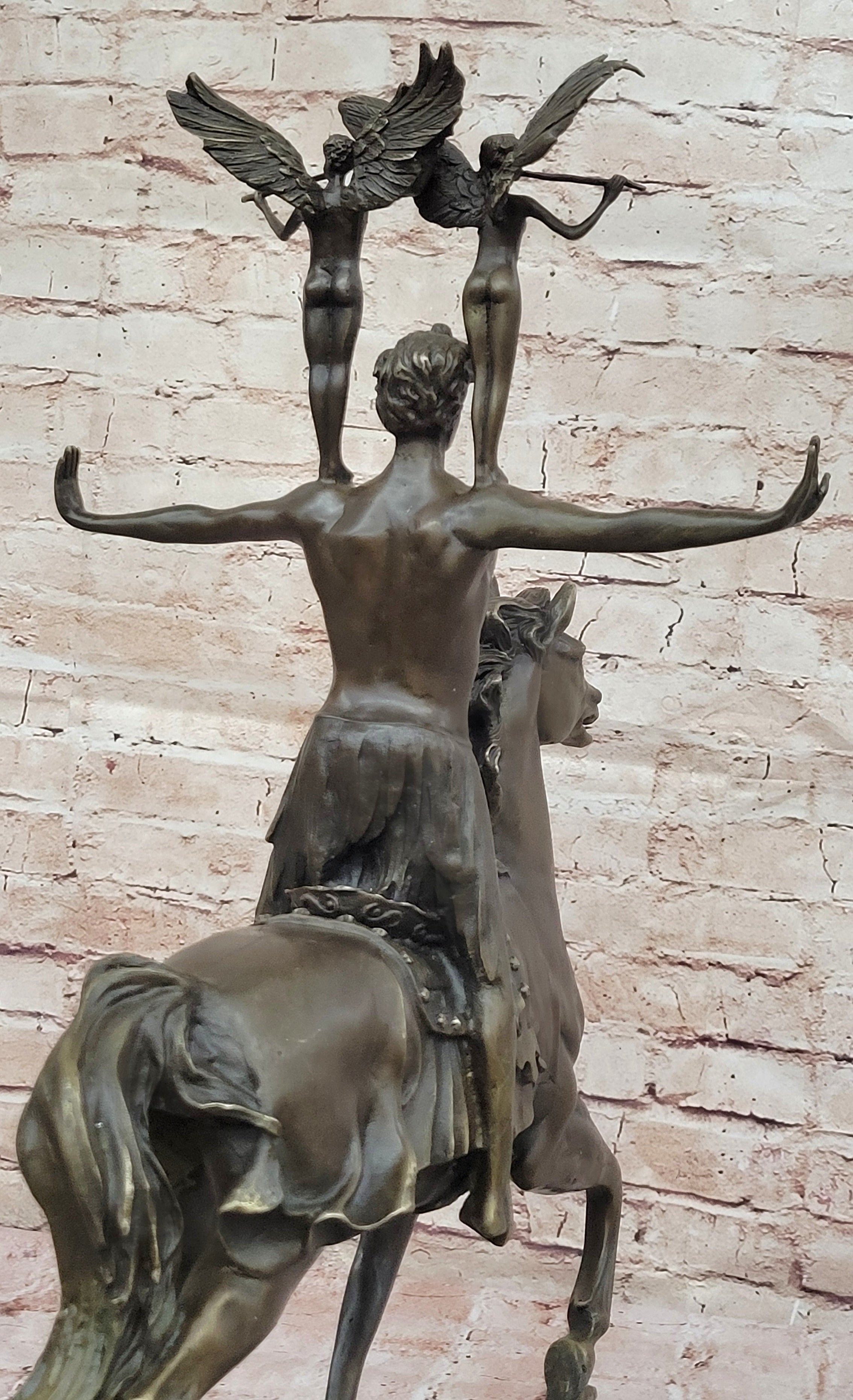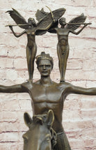 Majestic Bronze Sculpture of Warrior on Horseback with Winged Figures – Mythical Heroic Statue