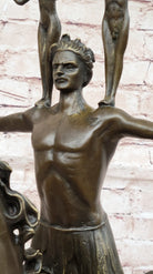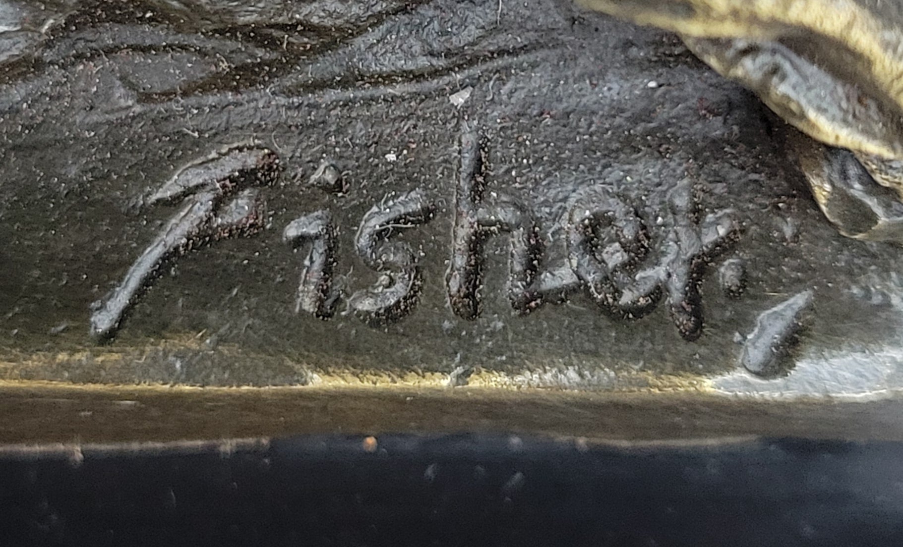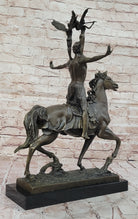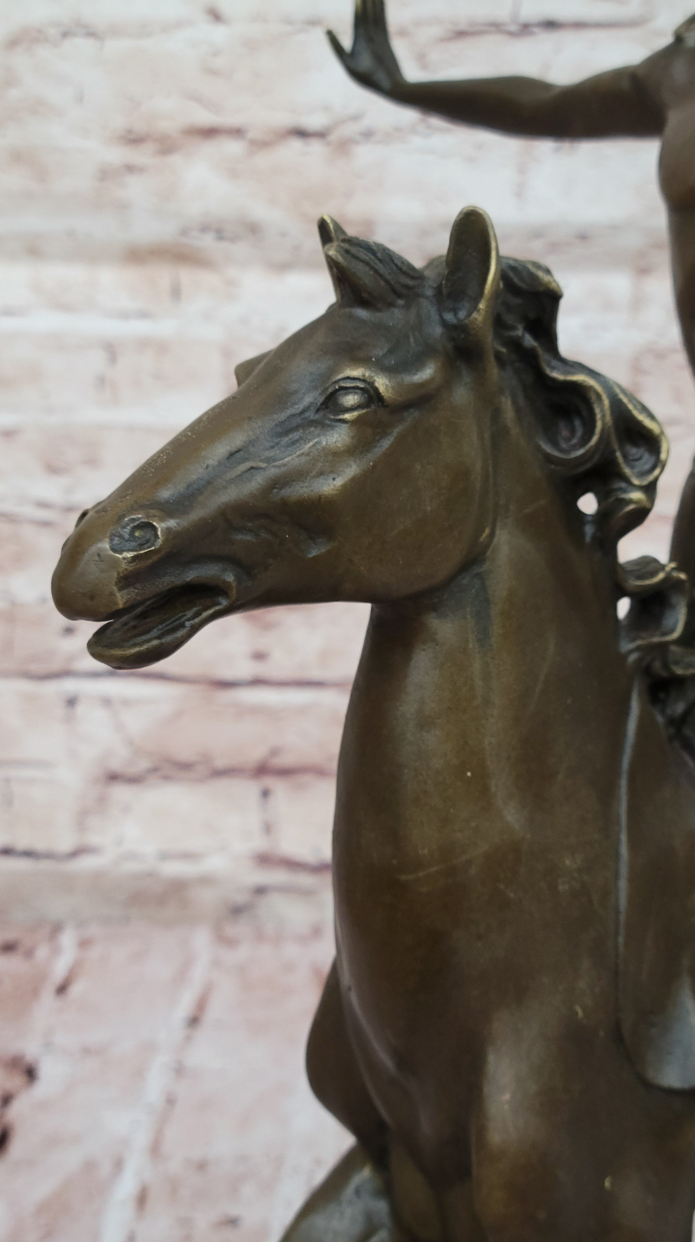 Handcrafted with precision, this 100% bronze sculpture features a rich brown patina finish, adding depth and texture to the piece. Cast using the traditional lost-wax method, the sculpture is mounted on a black marble base for stability and elegance. The work is signed by the artist Fisher, making it a timeless addition to any collection of fine art or mythical-inspired sculptures.Bronze Dimensions with Marble Base: Height 21" X Width 13"