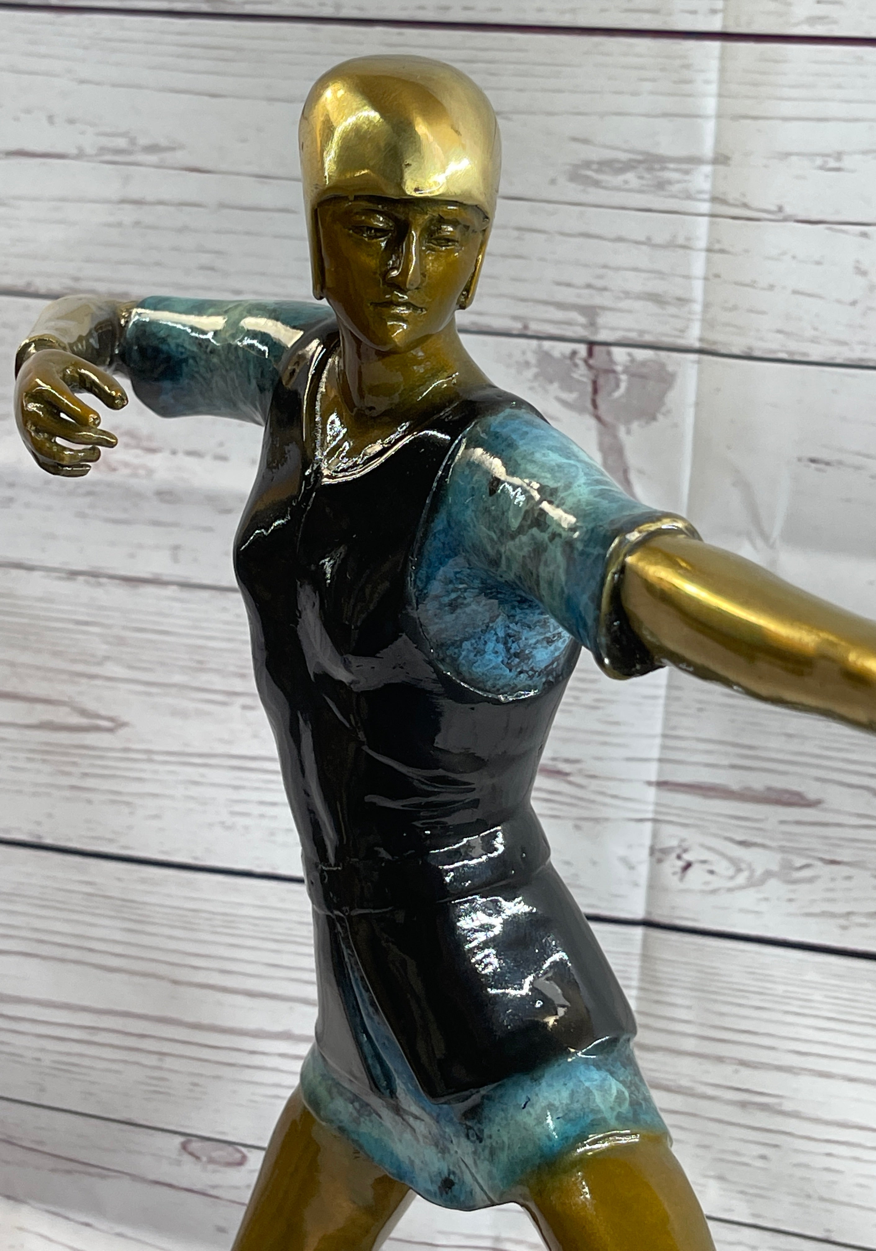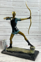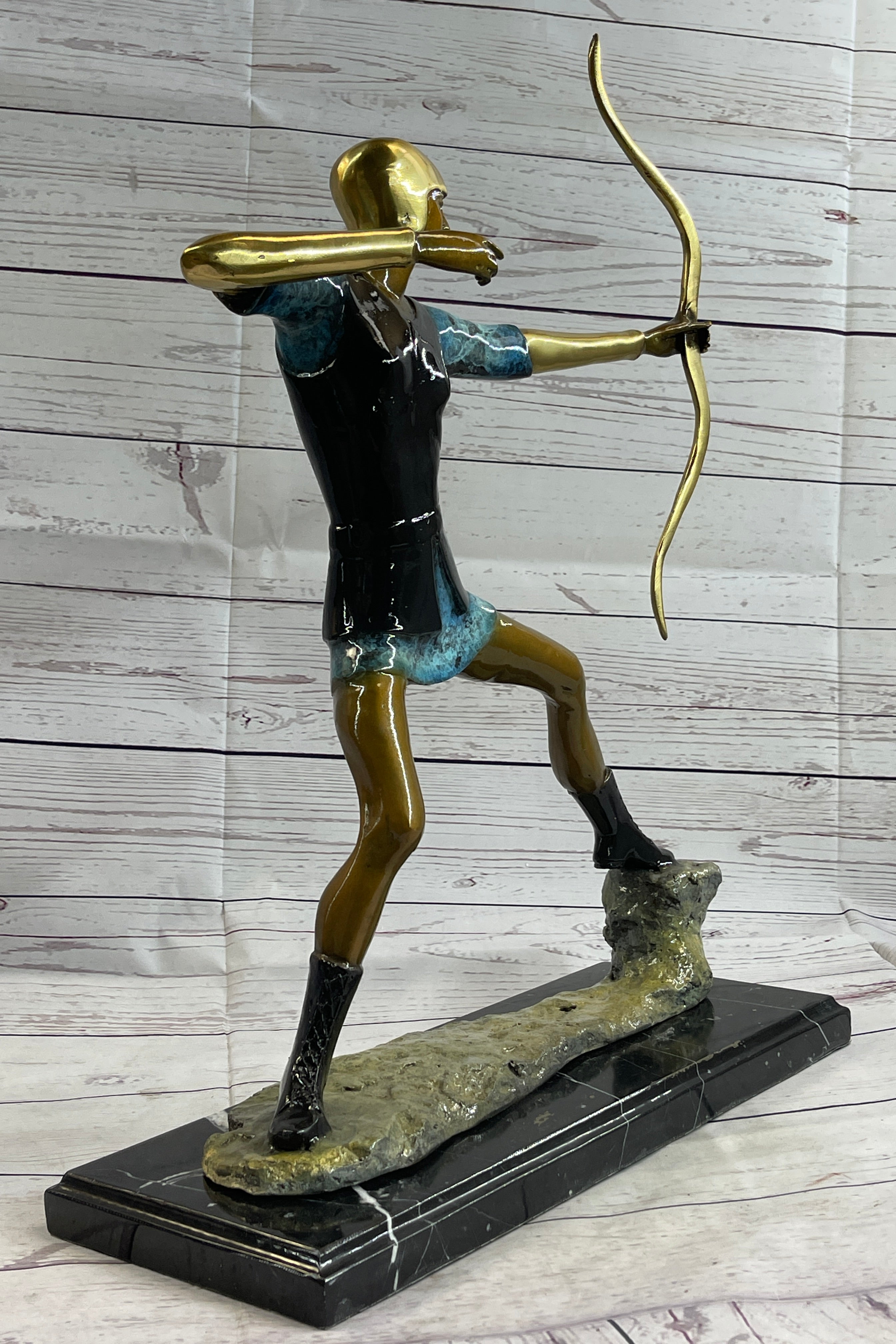 Resting upon a solid black marble base, this handmade bronze sculpture was created using the ancient "Lost Wax Method," ensuring precision and longevity. Signed and numbered by the artist N. Lowe, each of the 100 pieces is a unique masterpiece, making it a highly sought-after collectible. Whether displayed in a private collection or as a focal point in a home, this Archer sculpture embodies the timeless beauty of bronze artistry and the enduring allure of historical warriors.Bronze Dimensions with Marble Base: Height 20 1/2" X Width 15"