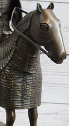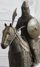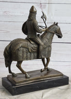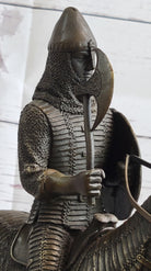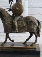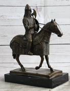 Medieval European Warrior Knight on Horseback Bronze Sculpture Statue on Marble Base
