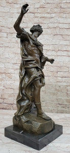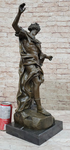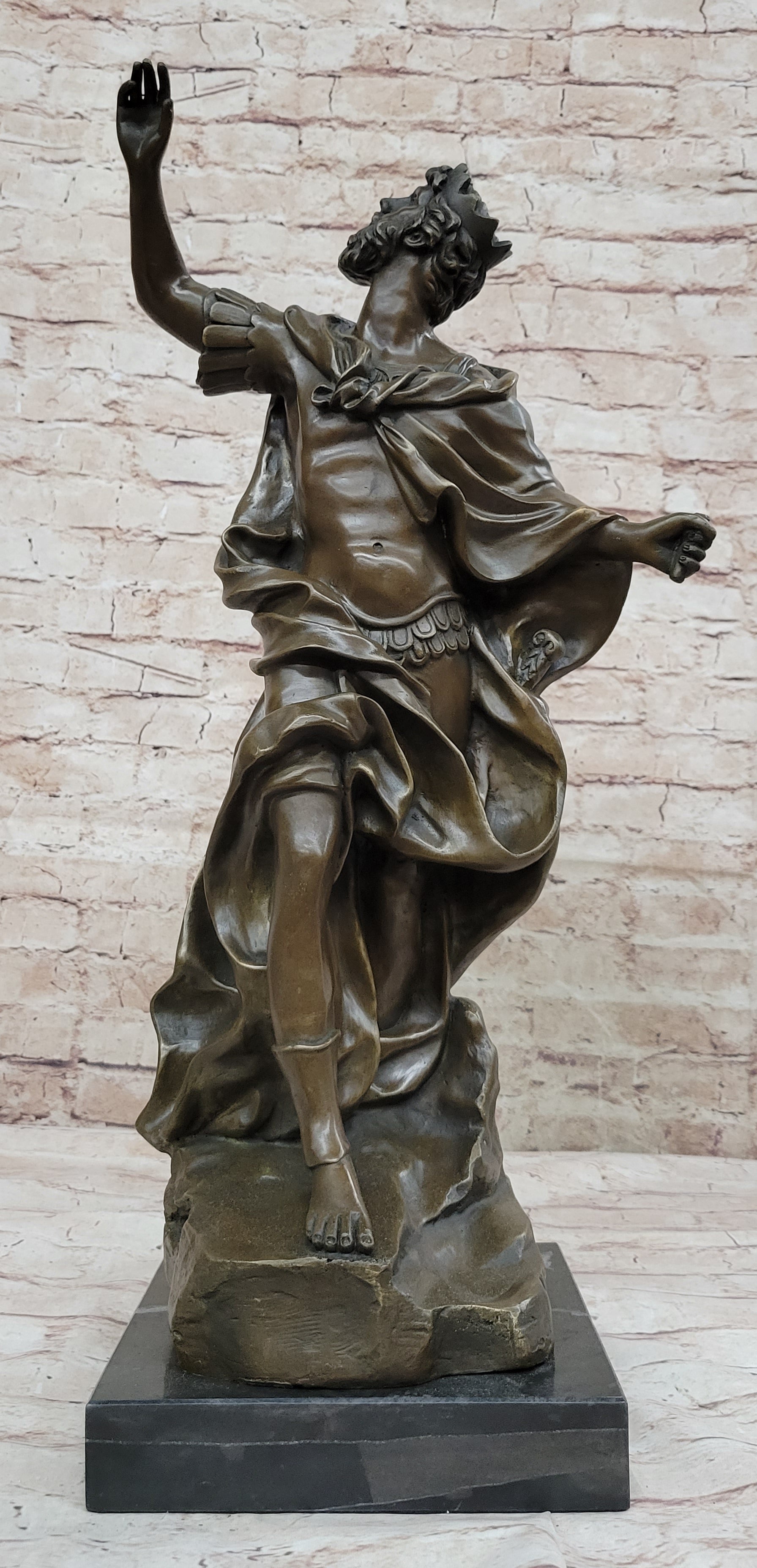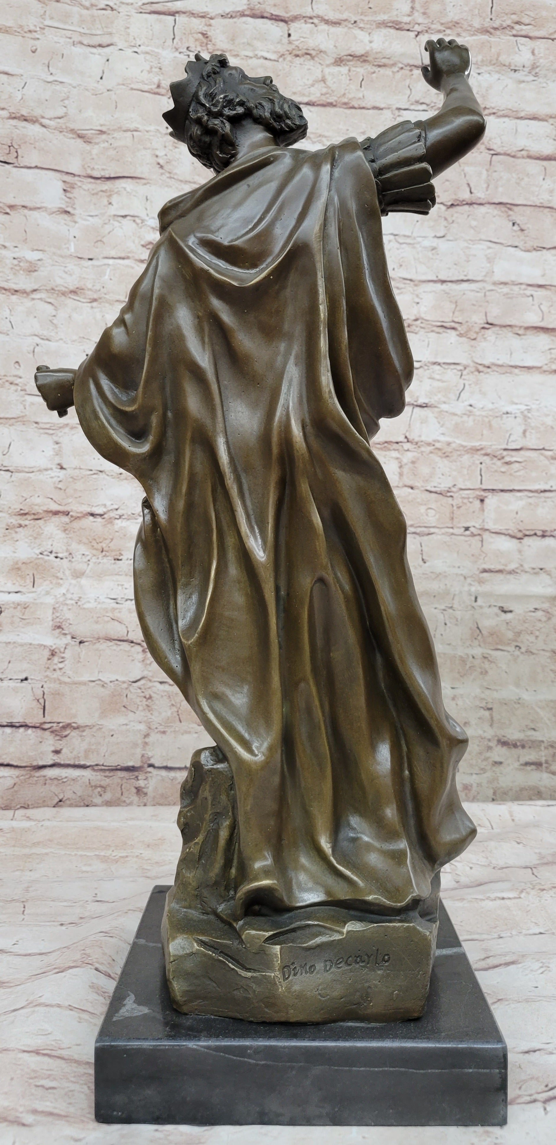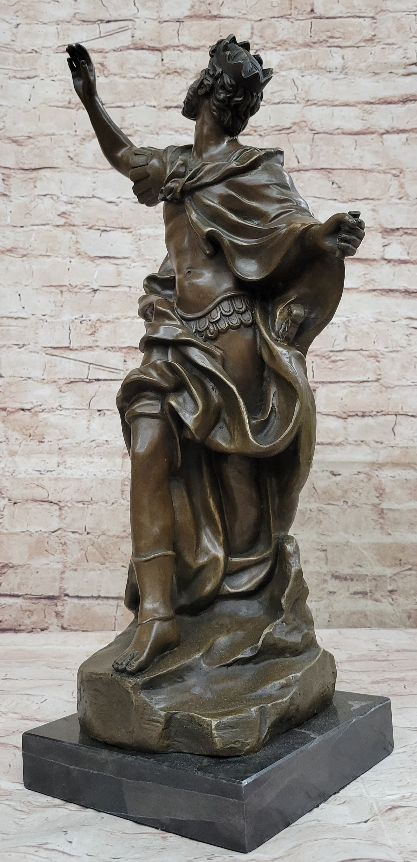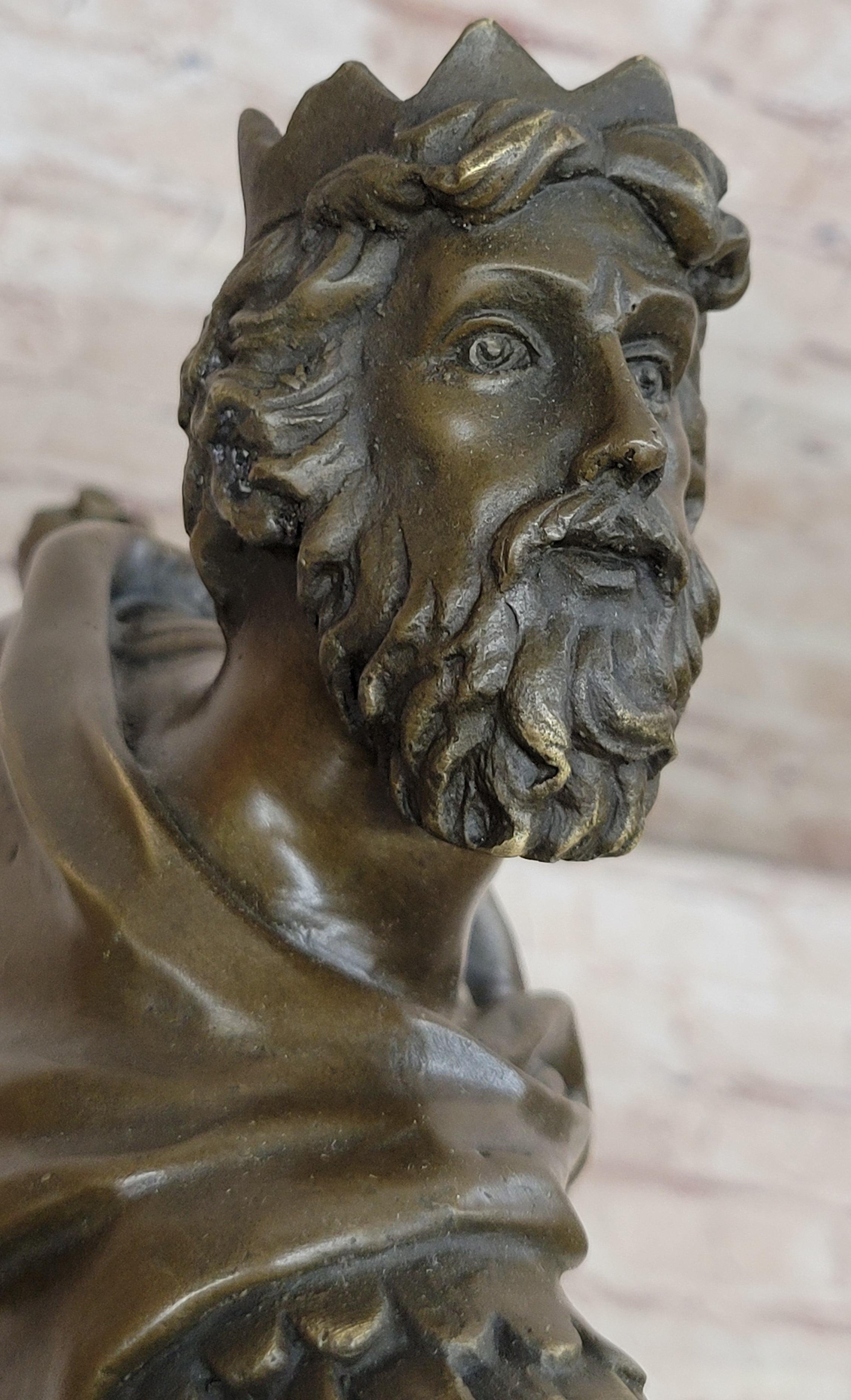 This remarkable bronze sculpture encapsulates the grandeur and timeless allure of ancient royalty, evoking a sense of awe and admiration. It serves as a visual reminder of the enduring human quest for wisdom and divine inspiration, inviting viewers to contemplate the profound connection between mortals and the celestial realm. Whether displayed in a private collection, gallery, or as a centerpiece in a regal setting, this sculpture embodies the essence of nobility and serves as a testament to the enduring legacy of ancient civilizations.Bronze Dimensions with Marble Base: Height 23" X Width 13"