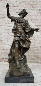Medieval King Arthur Hot Cast Bronze Sculpture Statue Figure on Marble Base Signed Original Art