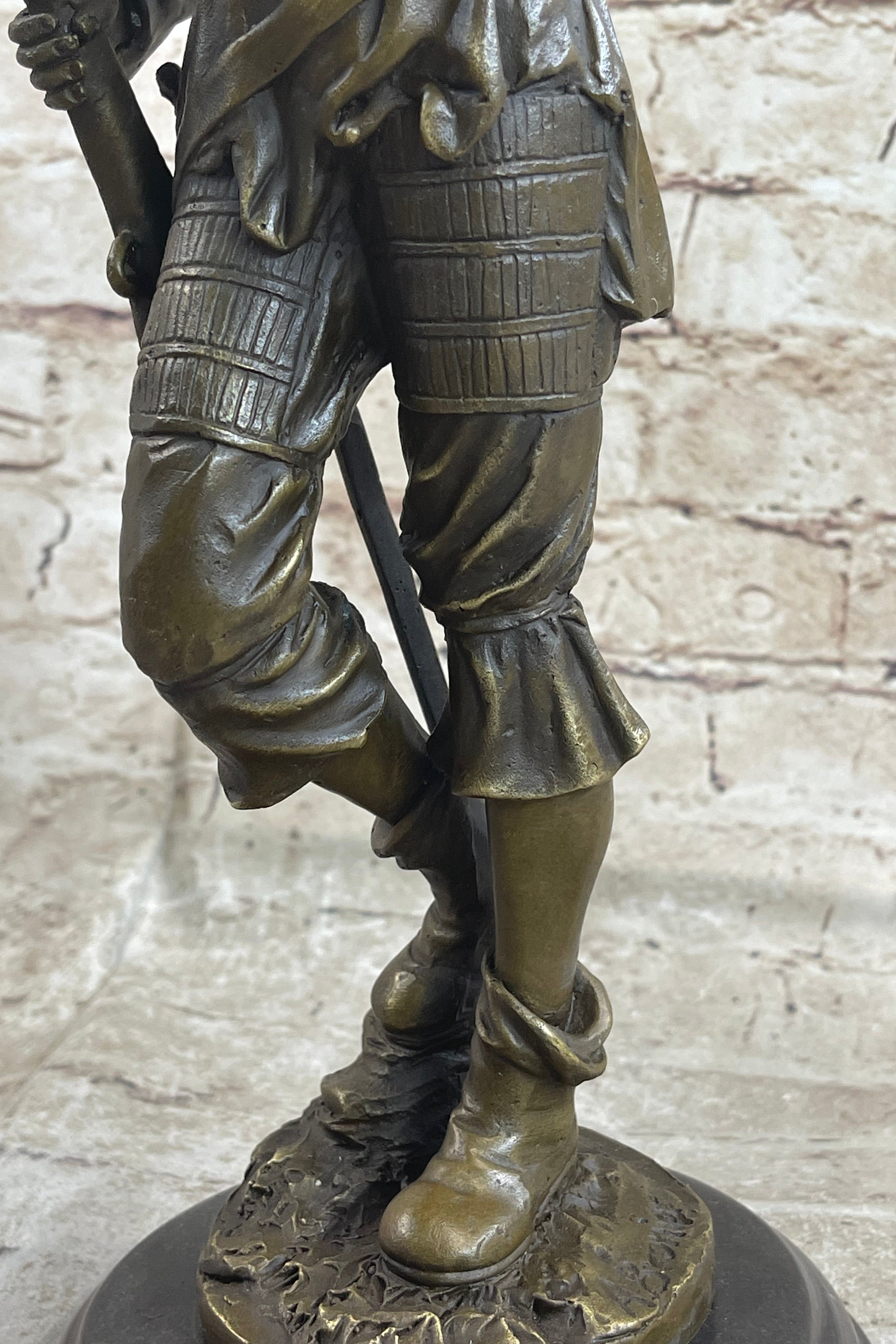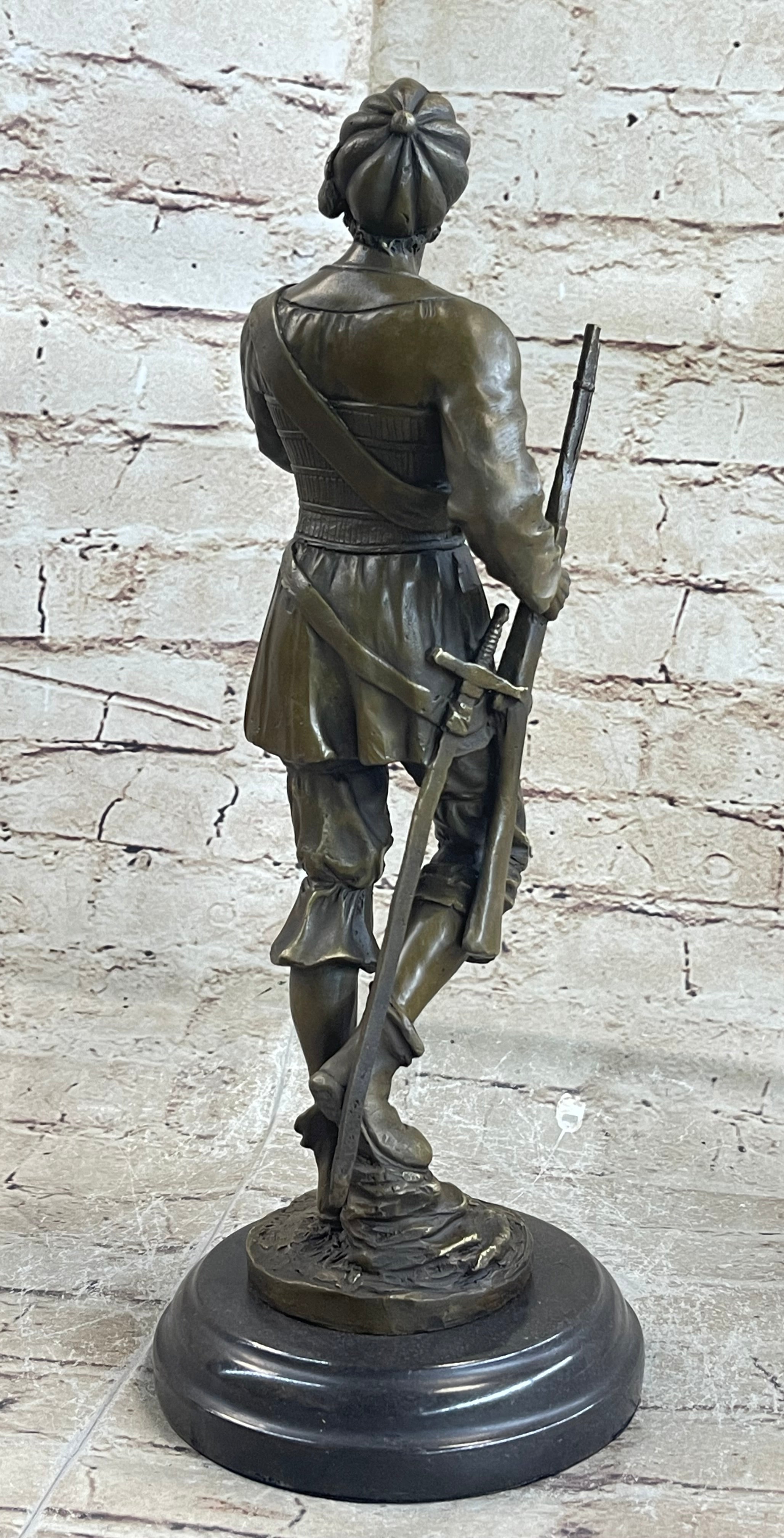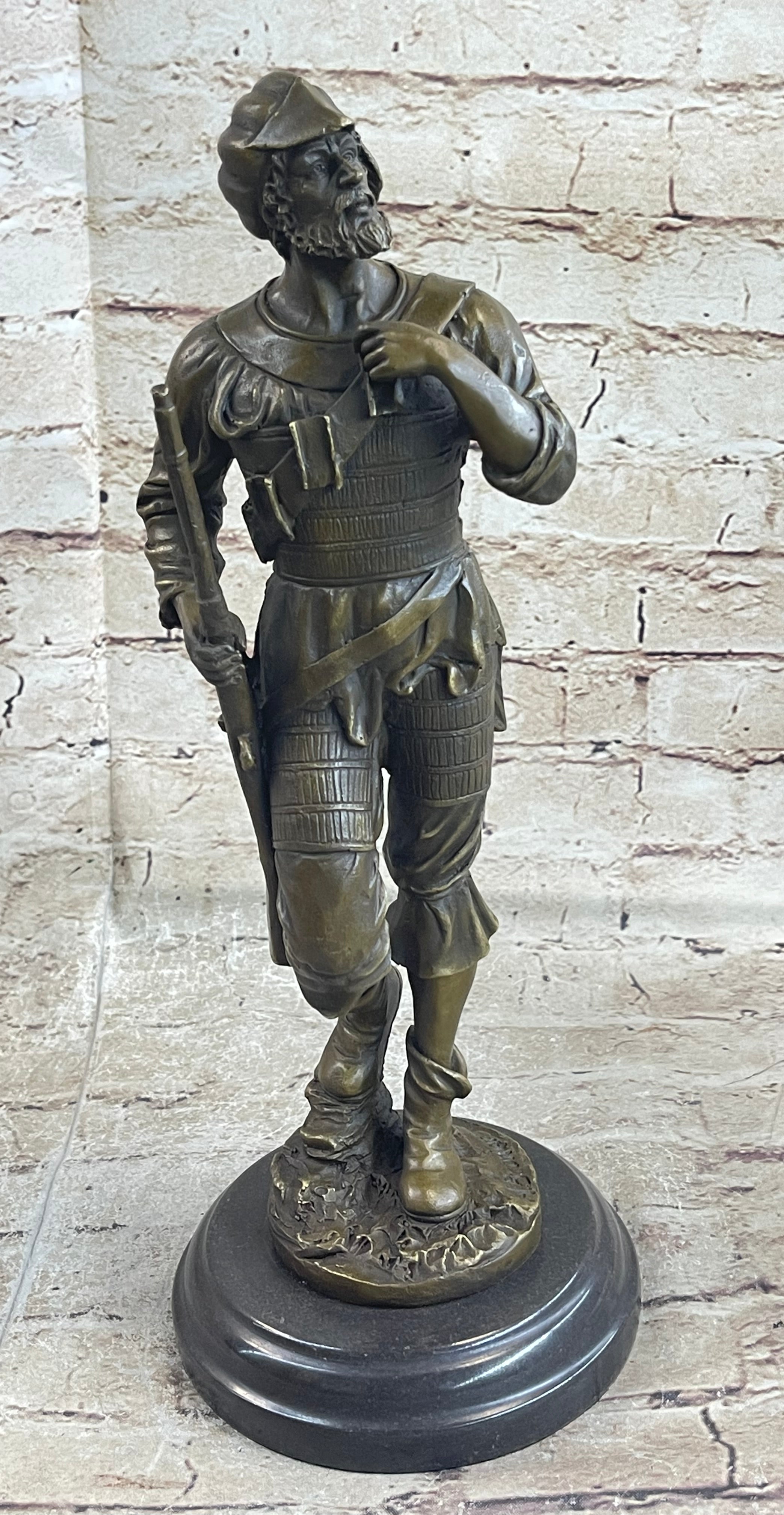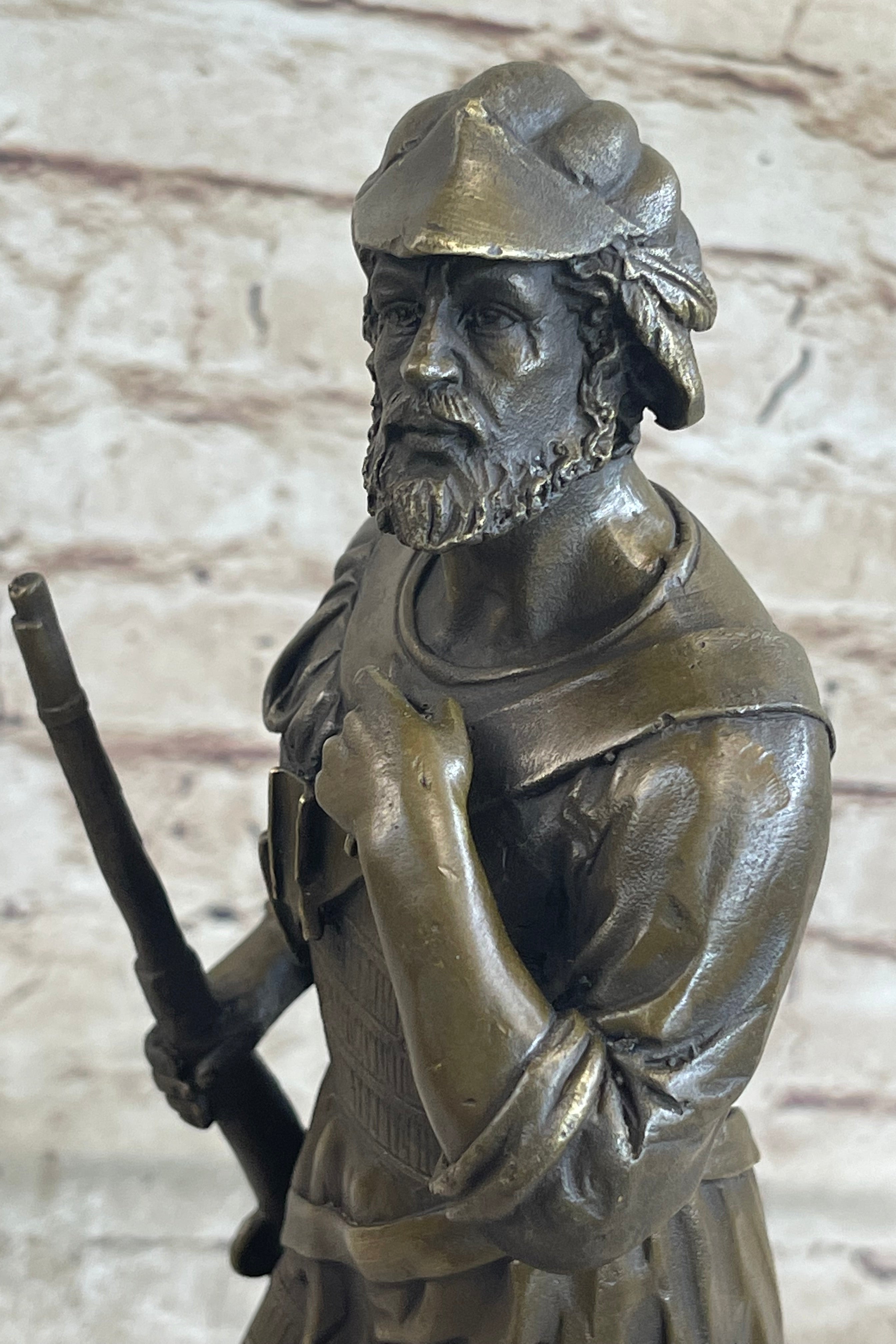 Mid Century French Renaissance Soldier Holding a Gun Bronze Sculpture Figurine