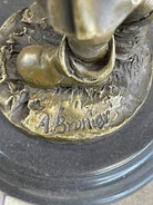 Signed Bronier, this distinguished sculpture is a fitting addition to refined spaces such as dining rooms, libraries, or studies—anywhere that honors classic taste and cultural heritage. Whether acquired as a collector’s item or a sophisticated decorative accent, this fine bronze sculpture is guaranteed to bring satisfaction and enduring value.Bronze Dimensions with Marble Base: Height 14.5" X Width 5.5"