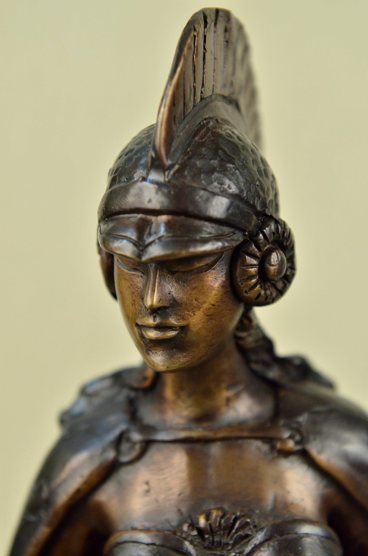 Military Soldier Spartan Gladiator Spear Shield Bronze Marble Statue Sculpture