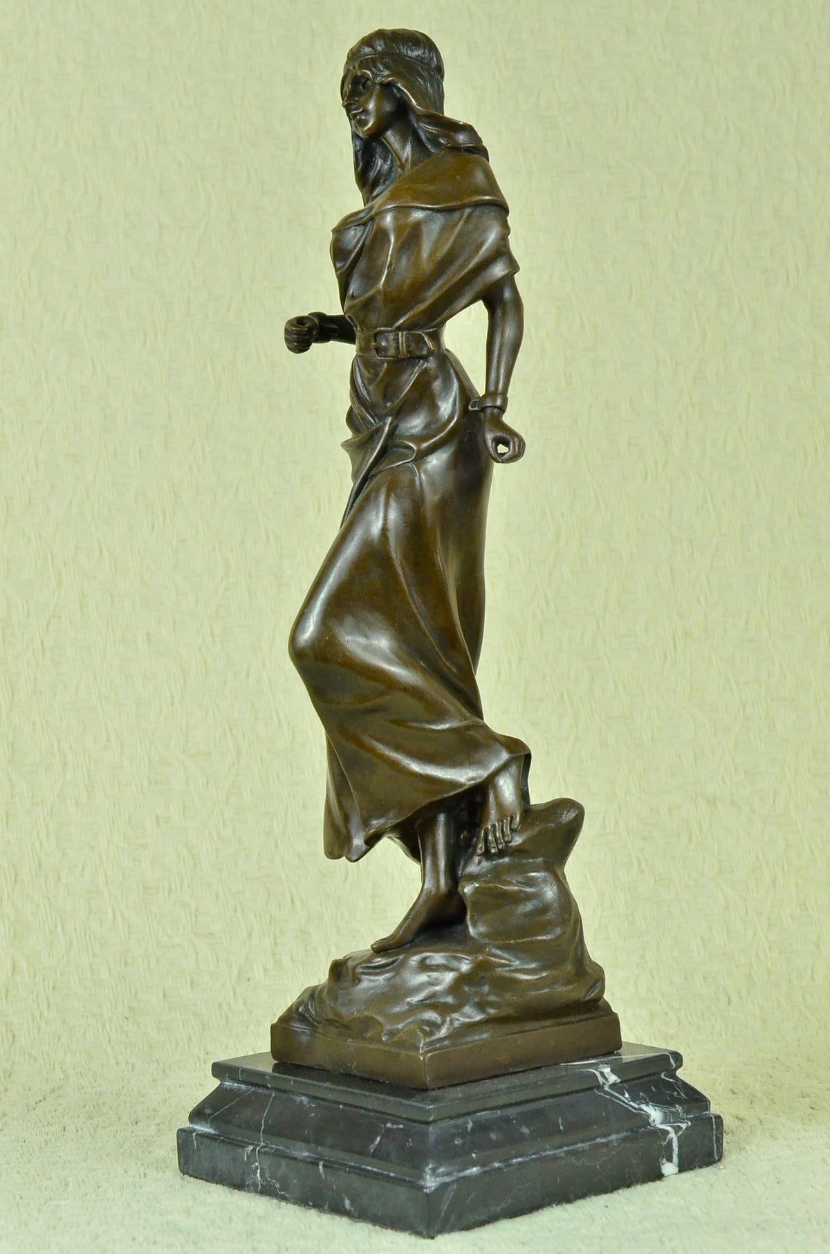 Native American Girl 100% Solid Bronze Sculpture Statue Figure Decor Art Deco