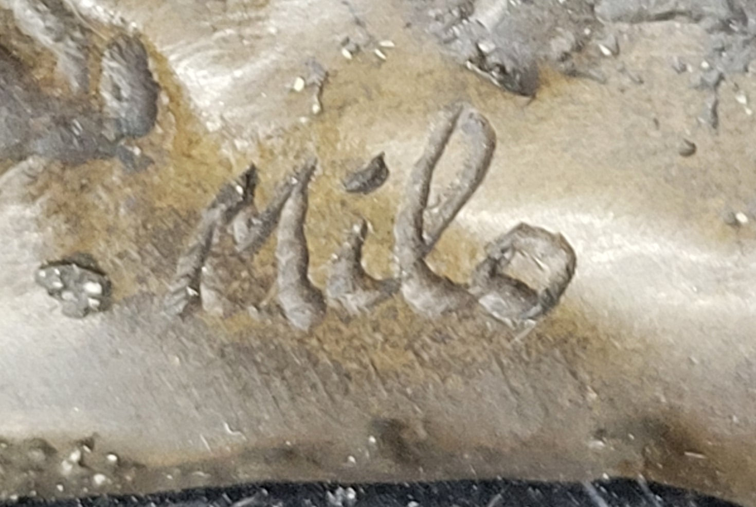 Crafted with precision and reverence, this exquisite bronze sculpture portrays an American Indian warrior atop his noble steed, capturing the spirit of strength, courage, and resilience. Signed by the acclaimed artist Miguel Lopez, also known as Milo, this piece is a testament to his mastery of sculpting and his deep respect for indigenous cultures.
