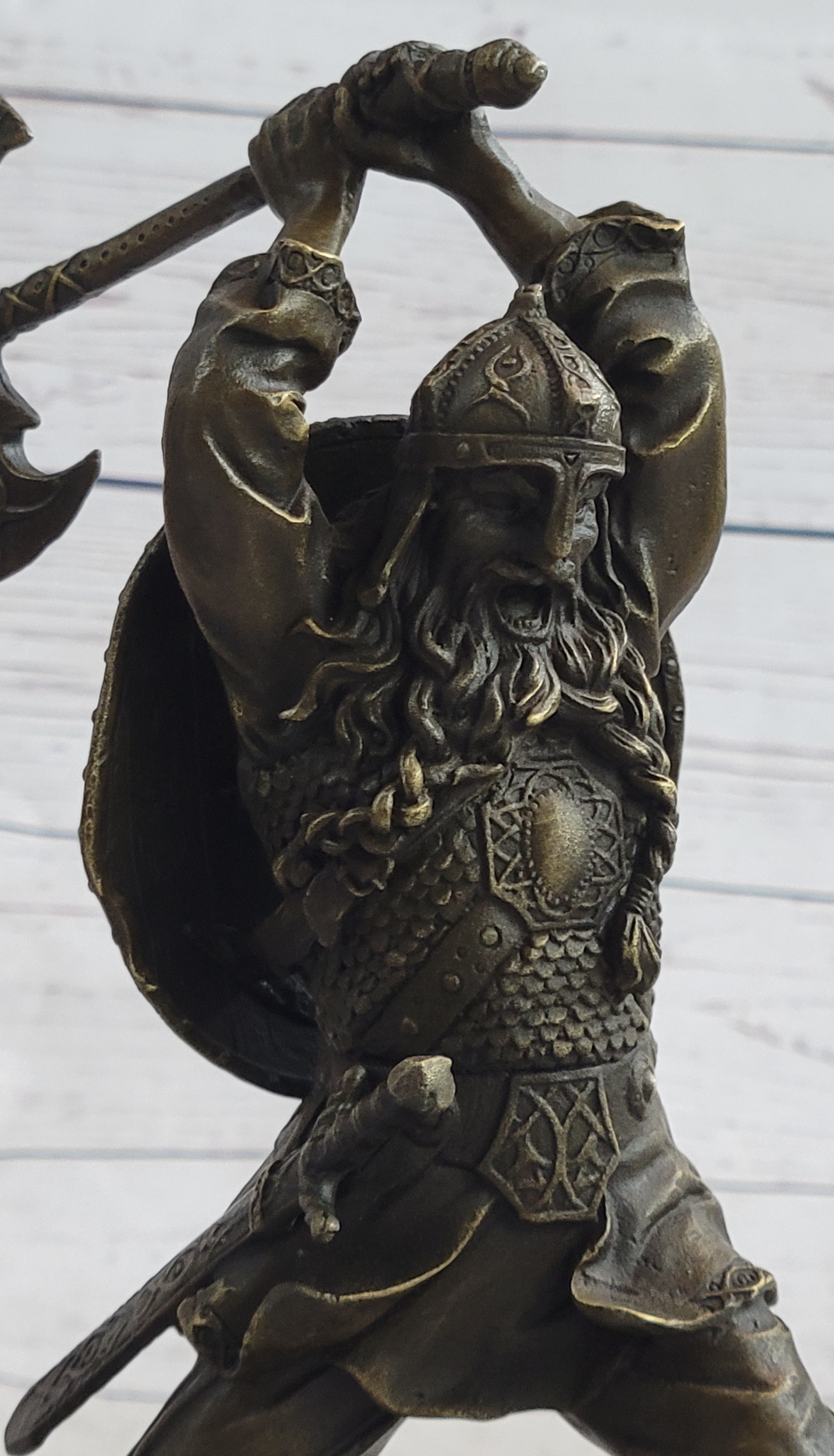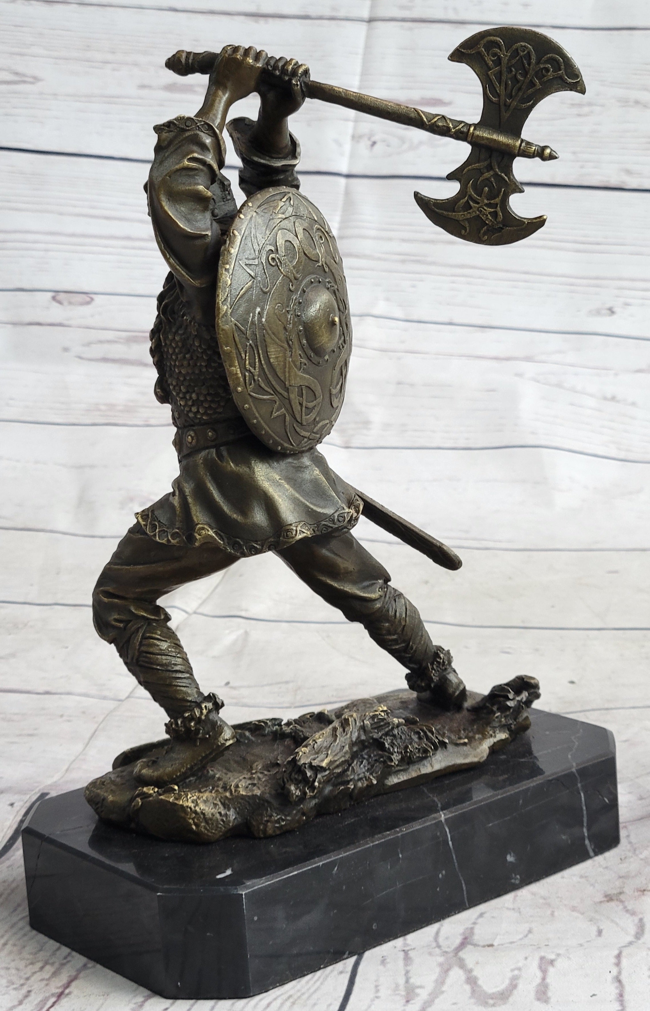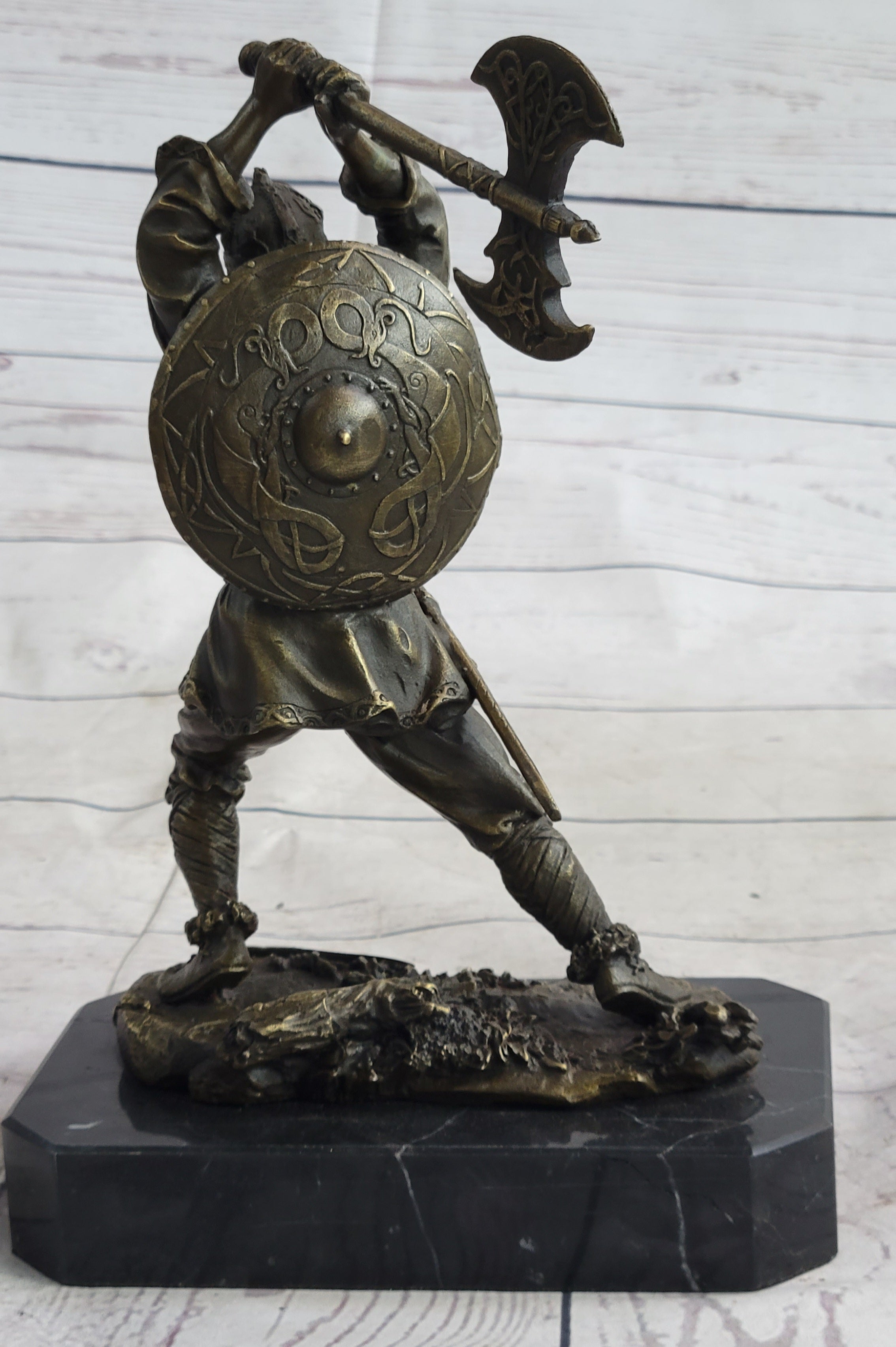 Nordic Viking Norse Warrior w/ Battle Axe Bronze Statue Sculpture Original Art 10" x 7"