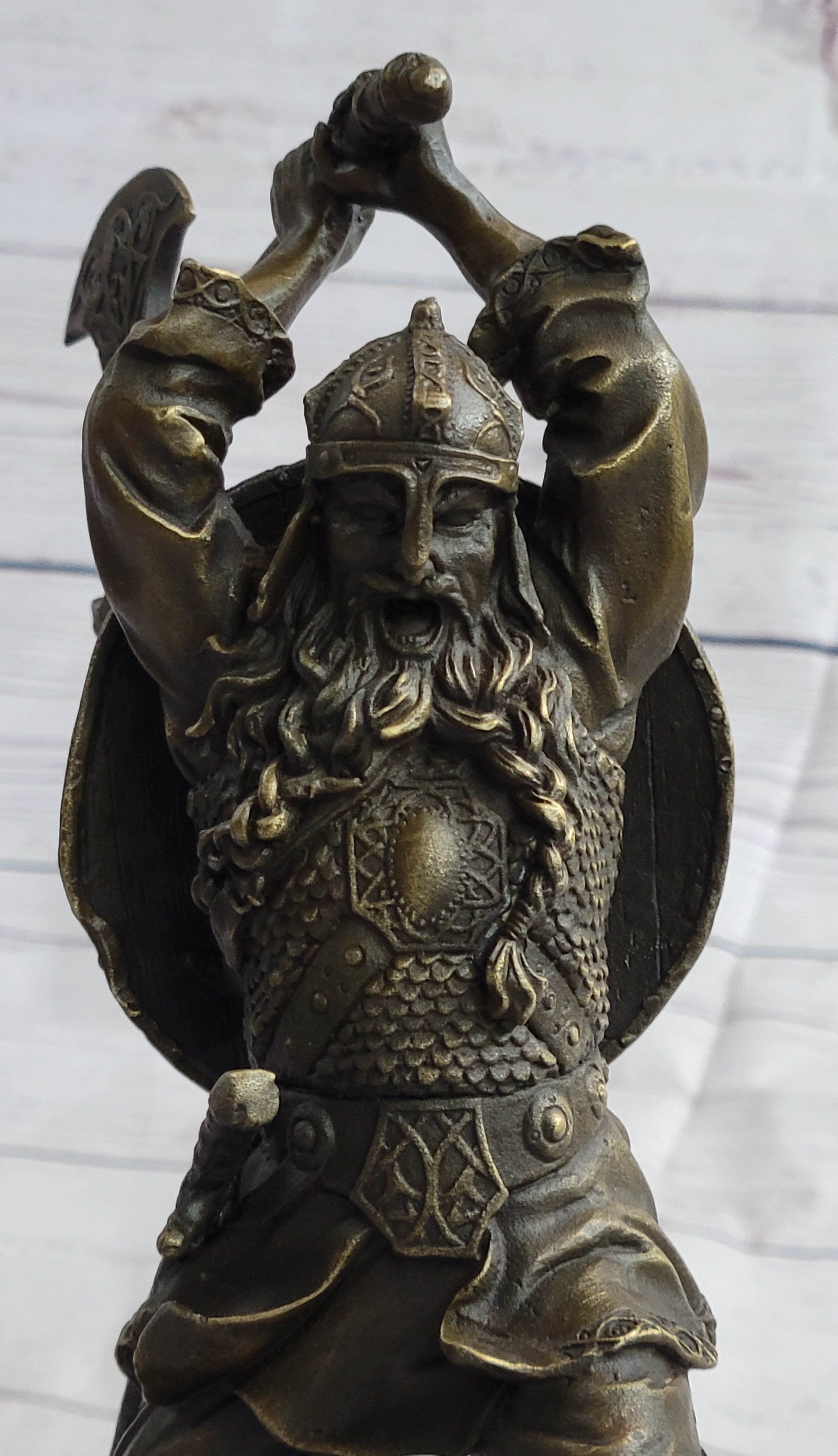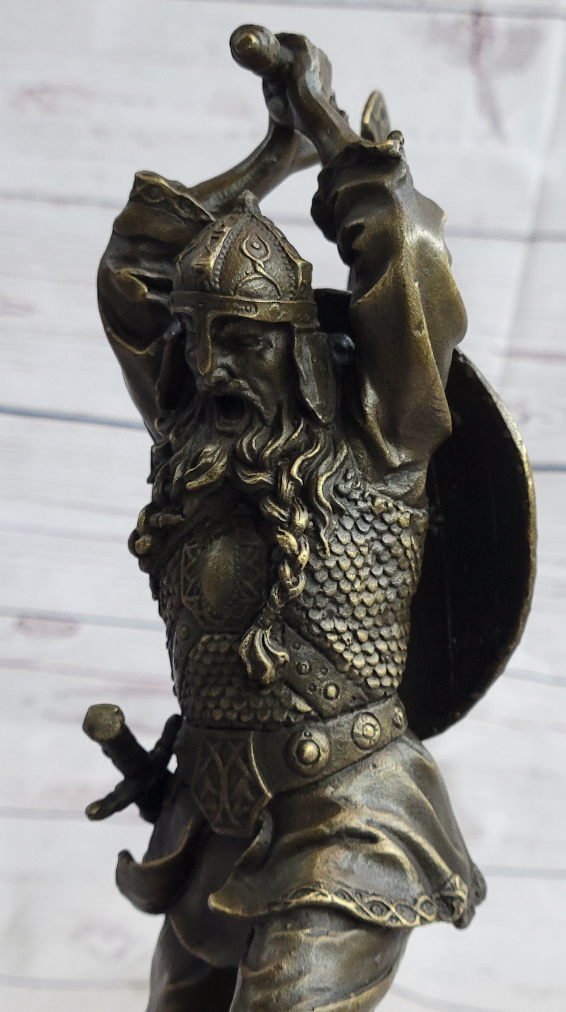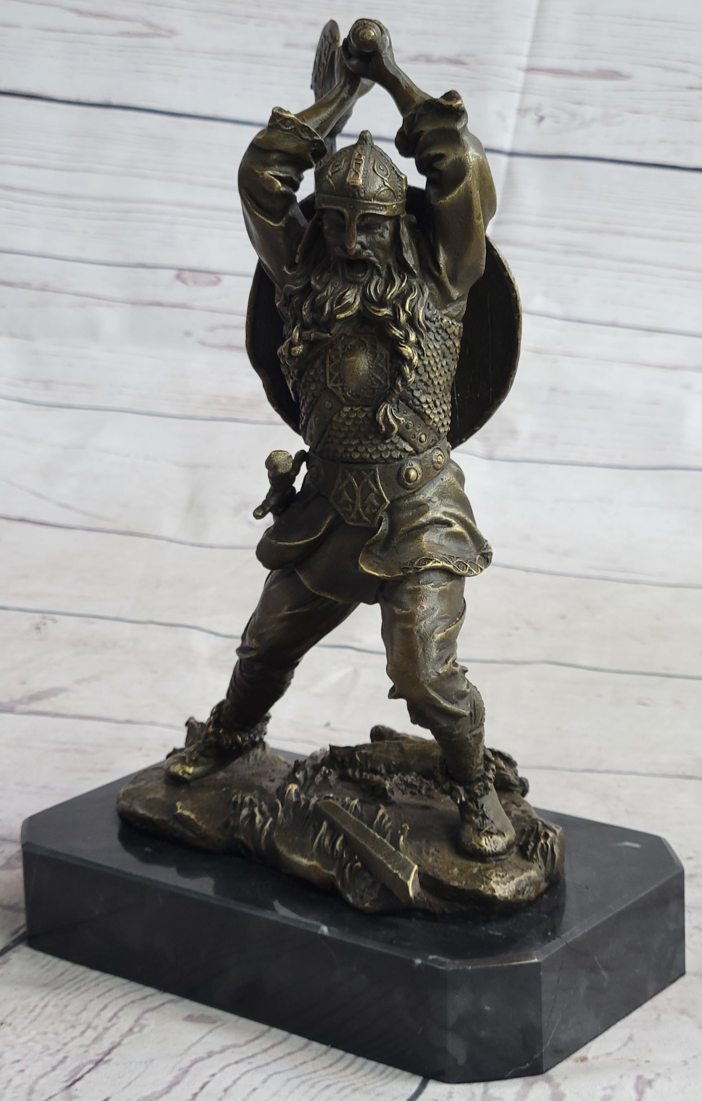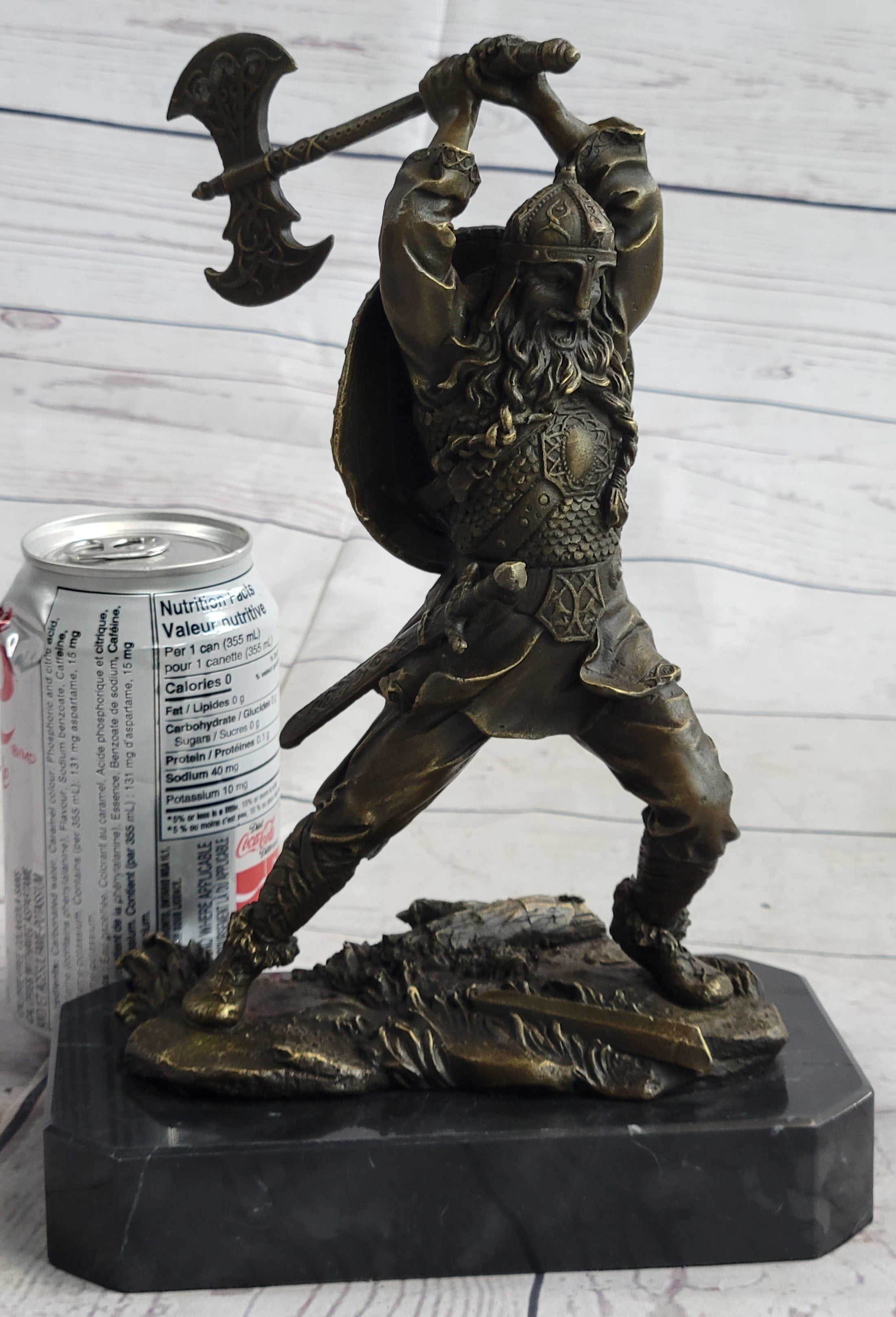 Nordic Viking Norse Warrior w/ Battle Axe Bronze Statue Sculpture Original Art 10" x 7"