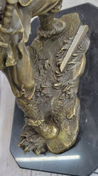 Crafted using the ancient and time-honored lost-wax casting method, this sculpture exudes authenticity and artistry. It stands proudly atop a black marble base, creating a stunning visual contrast that enhances its presence. The artist Milo's signature adds a final touch of prestige to this extraordinary piece, making it a must-have for collectors and enthusiasts of history, martial arts, and classic art.Bronze Dimensions with Marble Base: Height 10" X Width 7"