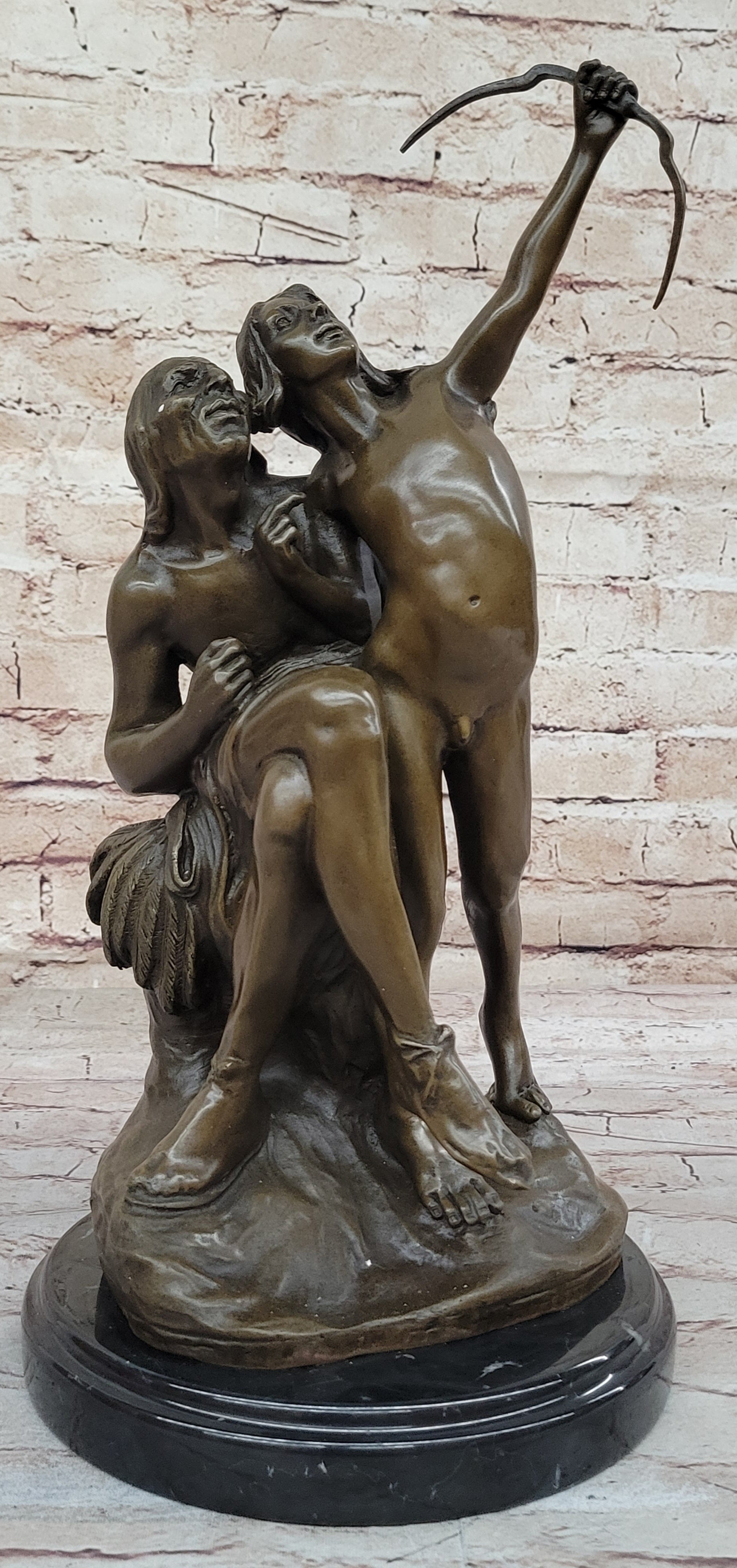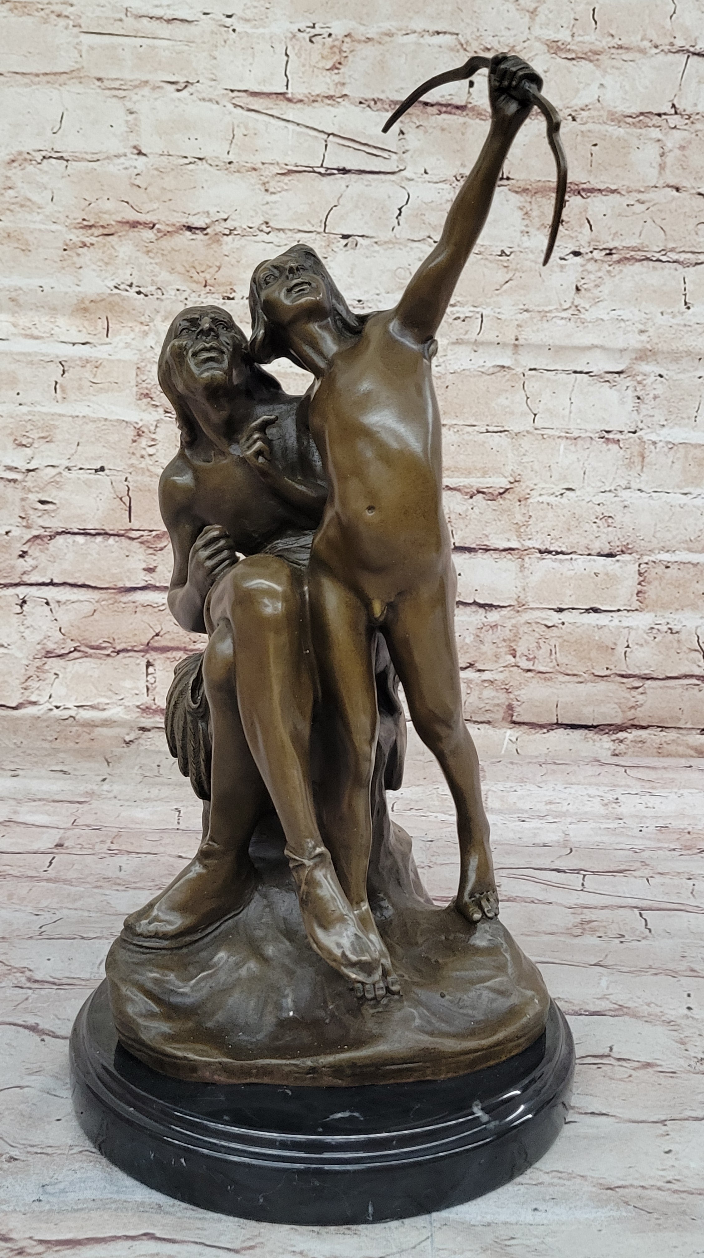 Nude Native American Male Archer Figures w/ Bow - Bronze Sculpture Art by Milo