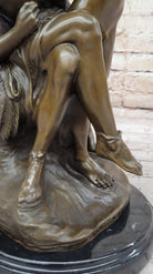 Whether displayed in a home, office, or gallery, this striking sculpture serves as a poignant reminder of the resilience and bravery of Native American warriors. A tribute to their storied history and enduring legacy, it invites viewers to reflect on the rich tapestry of Indigenous cultures and their contributions to our world.Bronze Dimensions with Marble Base: Height 15.5" X Width 9"