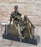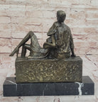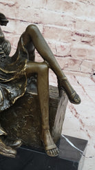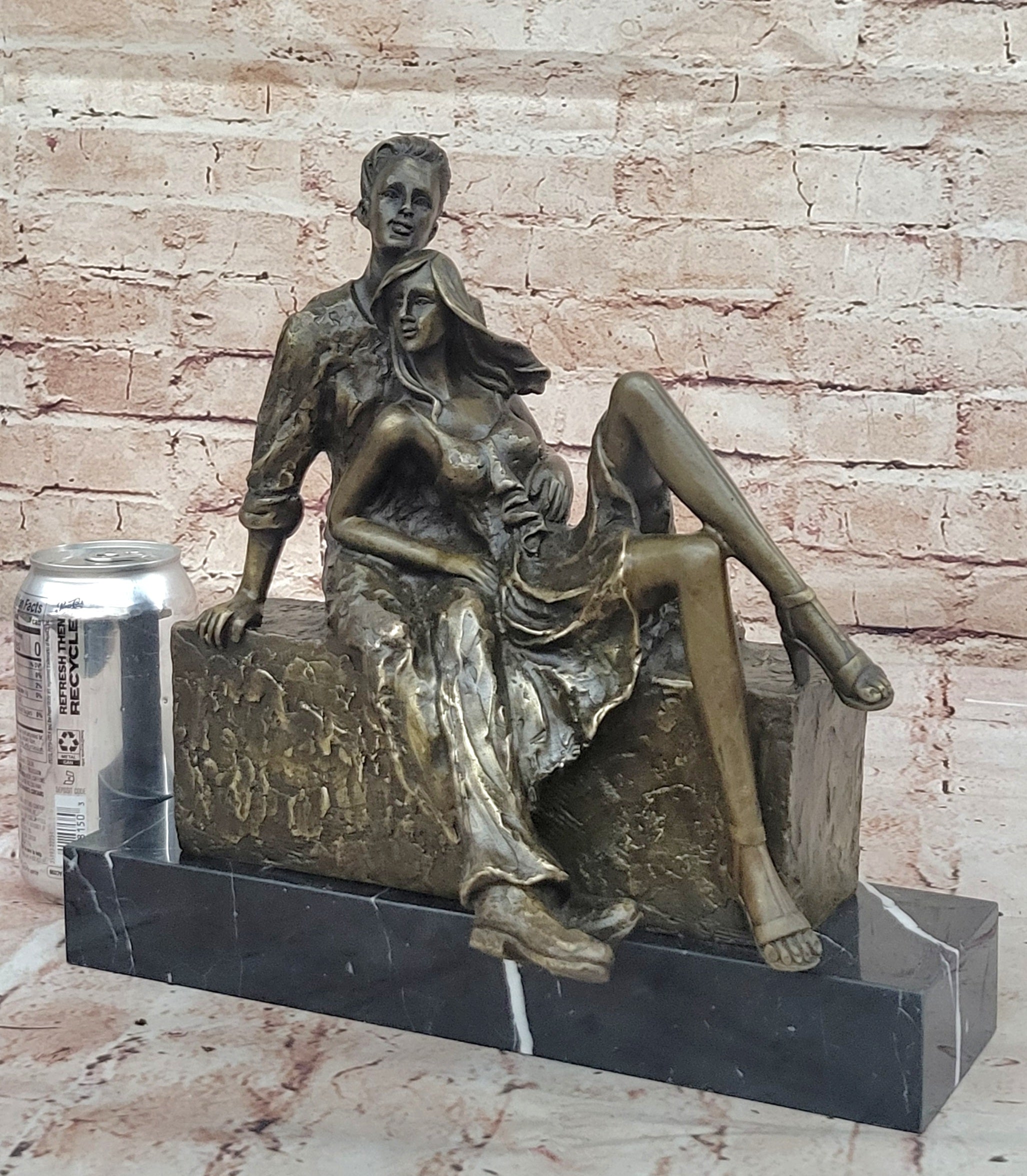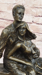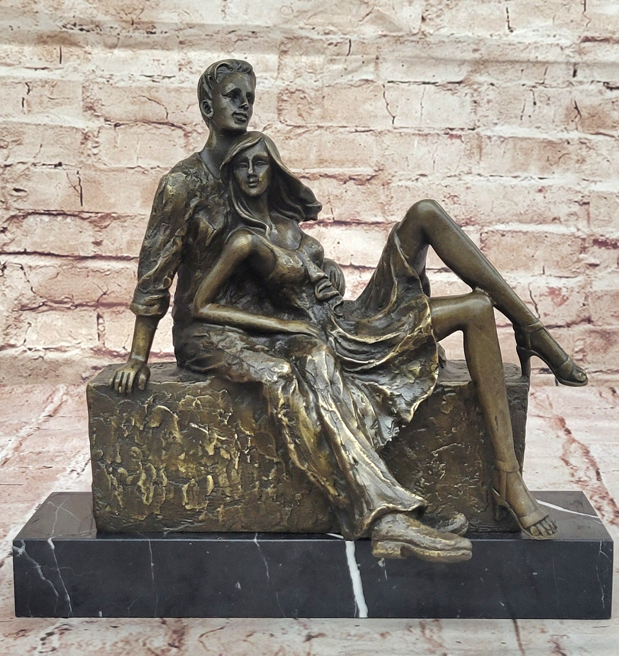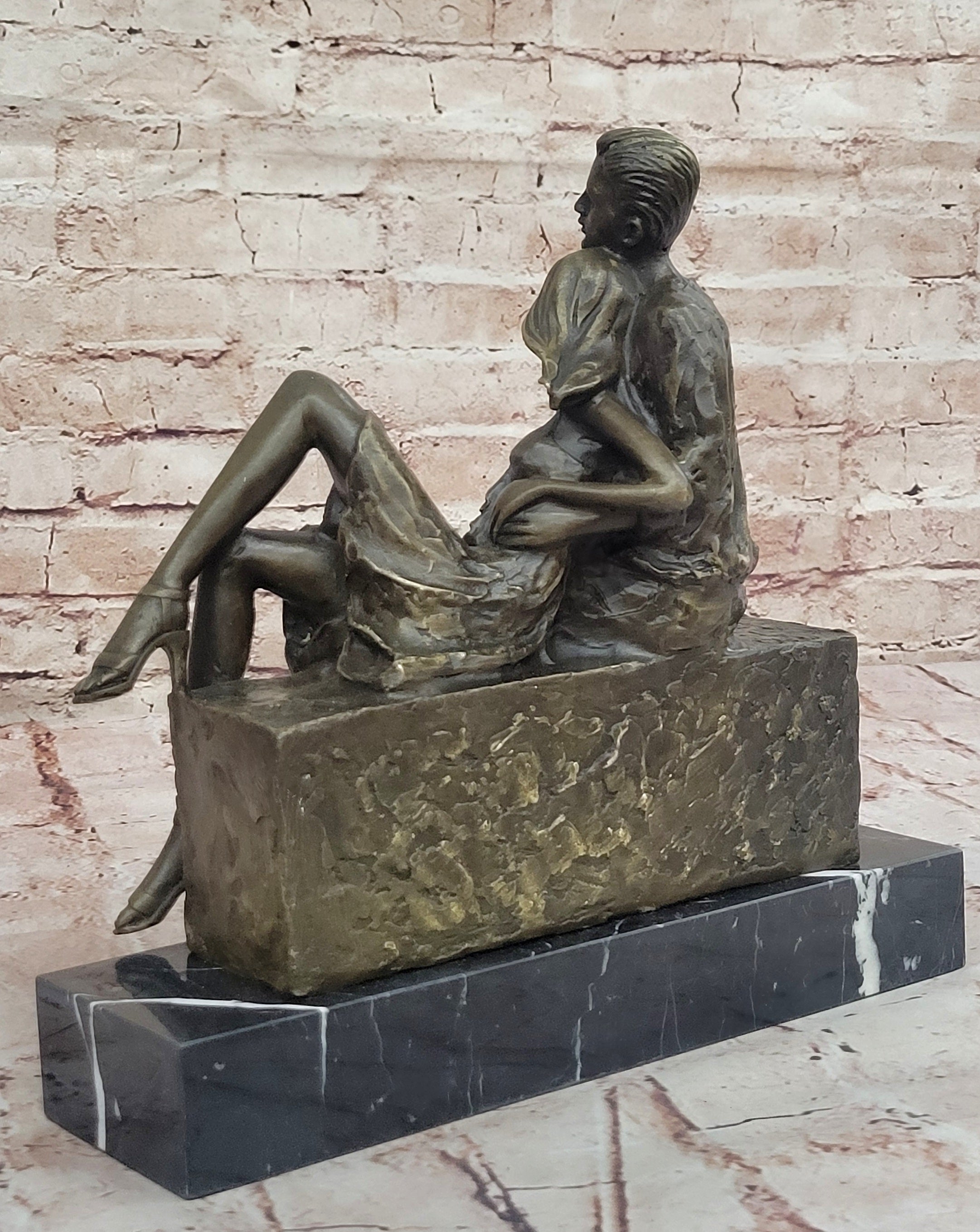 Relaxed Couple Bronze Sculpture – Intimate Sitting Lovers Figurine on Marble Base