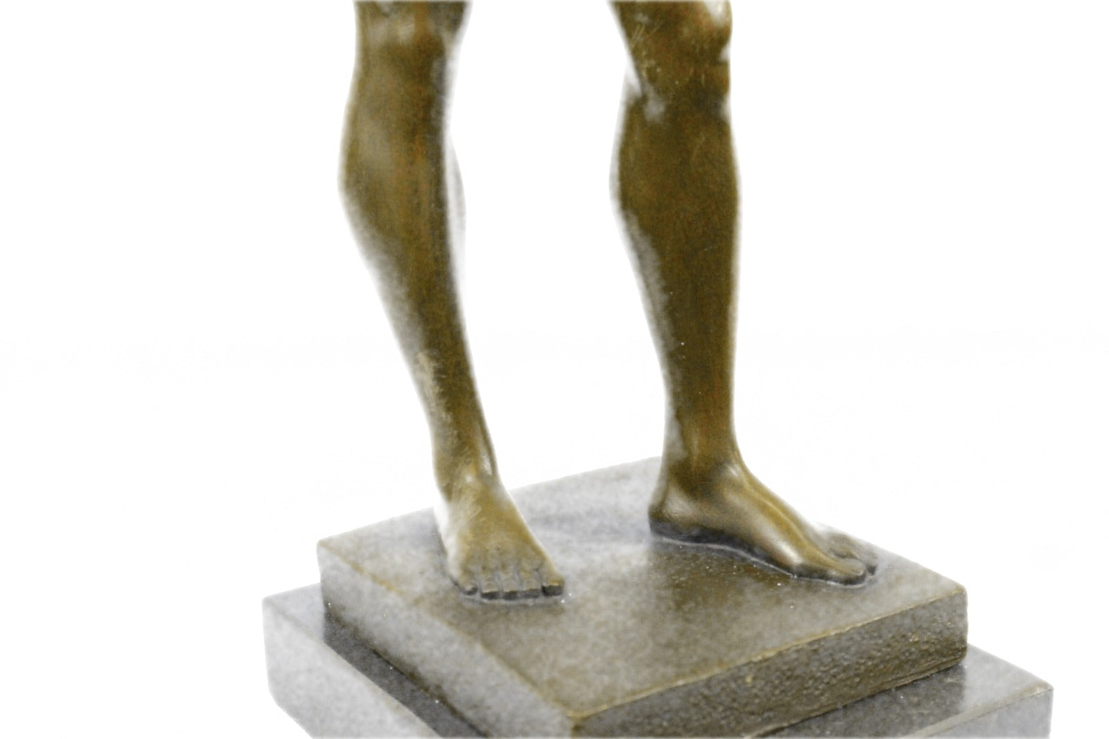 Condition: This sculpture is in perfect condition. Bronze Dimensions with Marble Base:Height 17" x Width 5 1/2" Marble Dimensions: 5 1/2" X 4 1/2". Height without base: 16" Weight : 10 LBS Inventory 32DS0064323