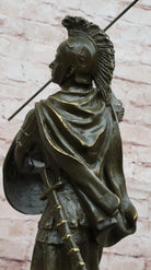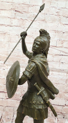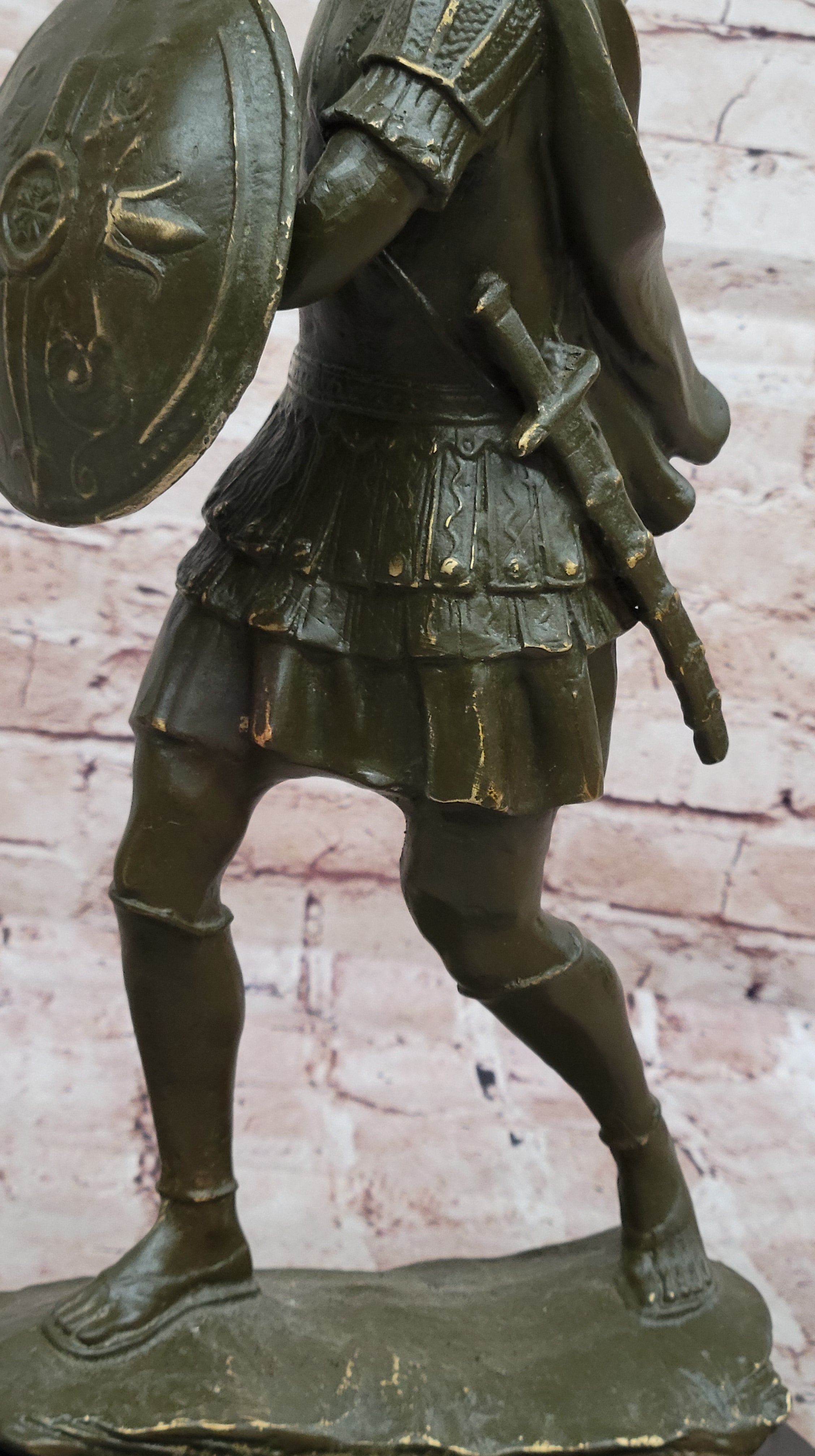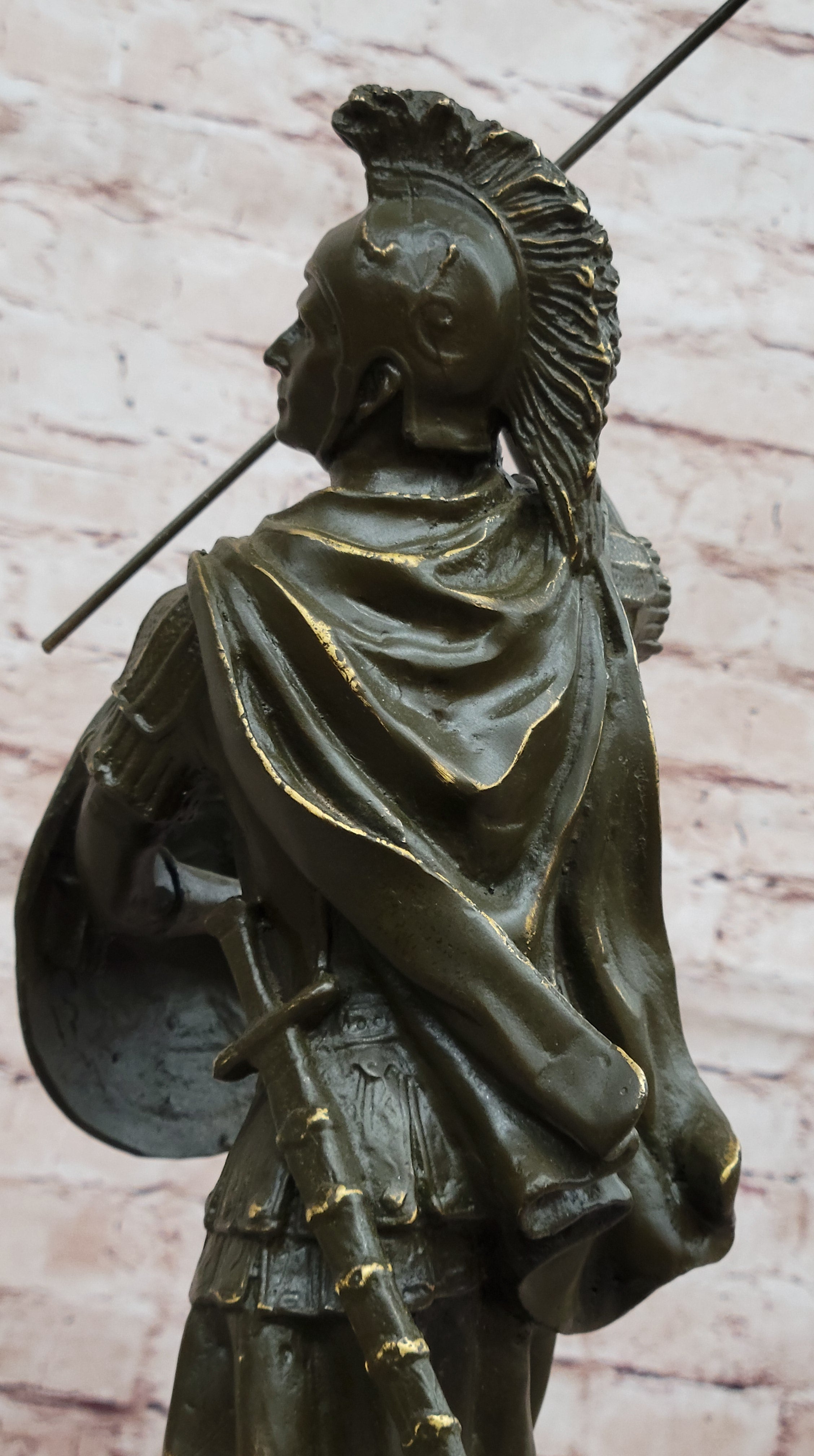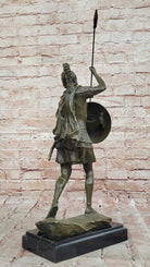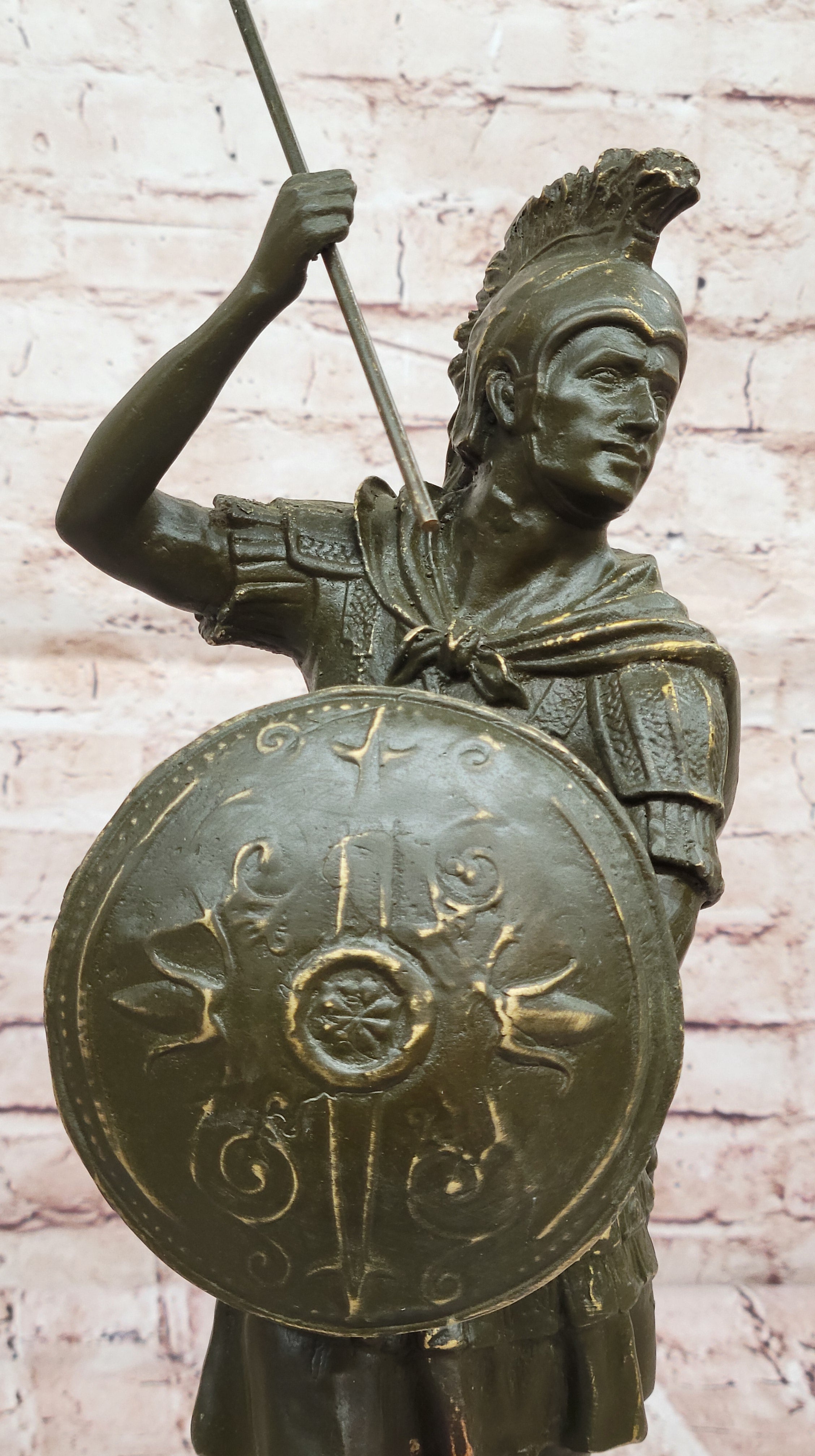 Roman or Greek Soldier Bronze Sculpture with Spear and Shield on Marble Base