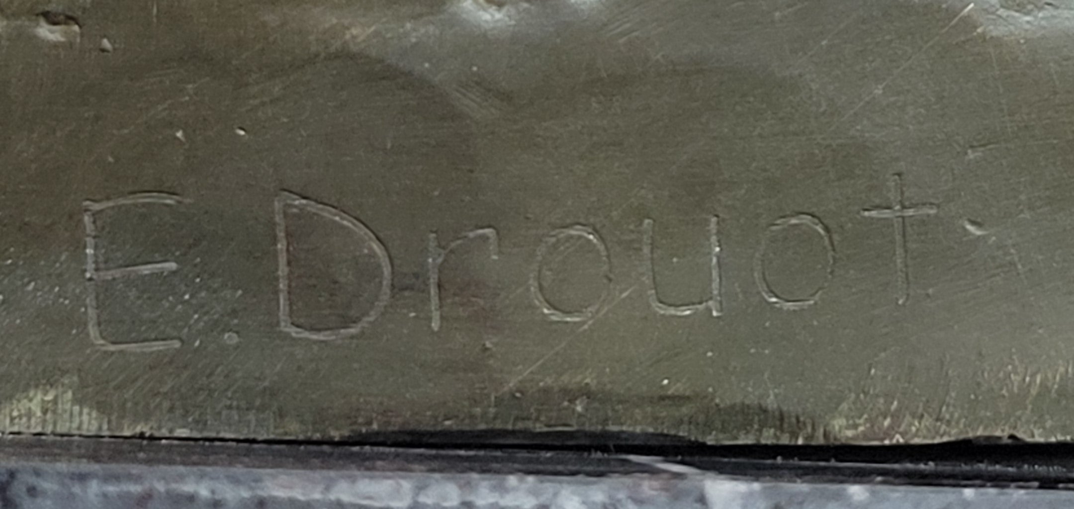 Signed by artist Drouot, this piece makes a striking statement in any home, study, or office—ideal for lovers of history, mythology, or timeless classical décor. It’s a powerful tribute to ancient valor and a refined addition to any art collection.Bronze Dimensions with Marble Base: Height 18" X Width 8.5"