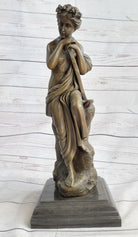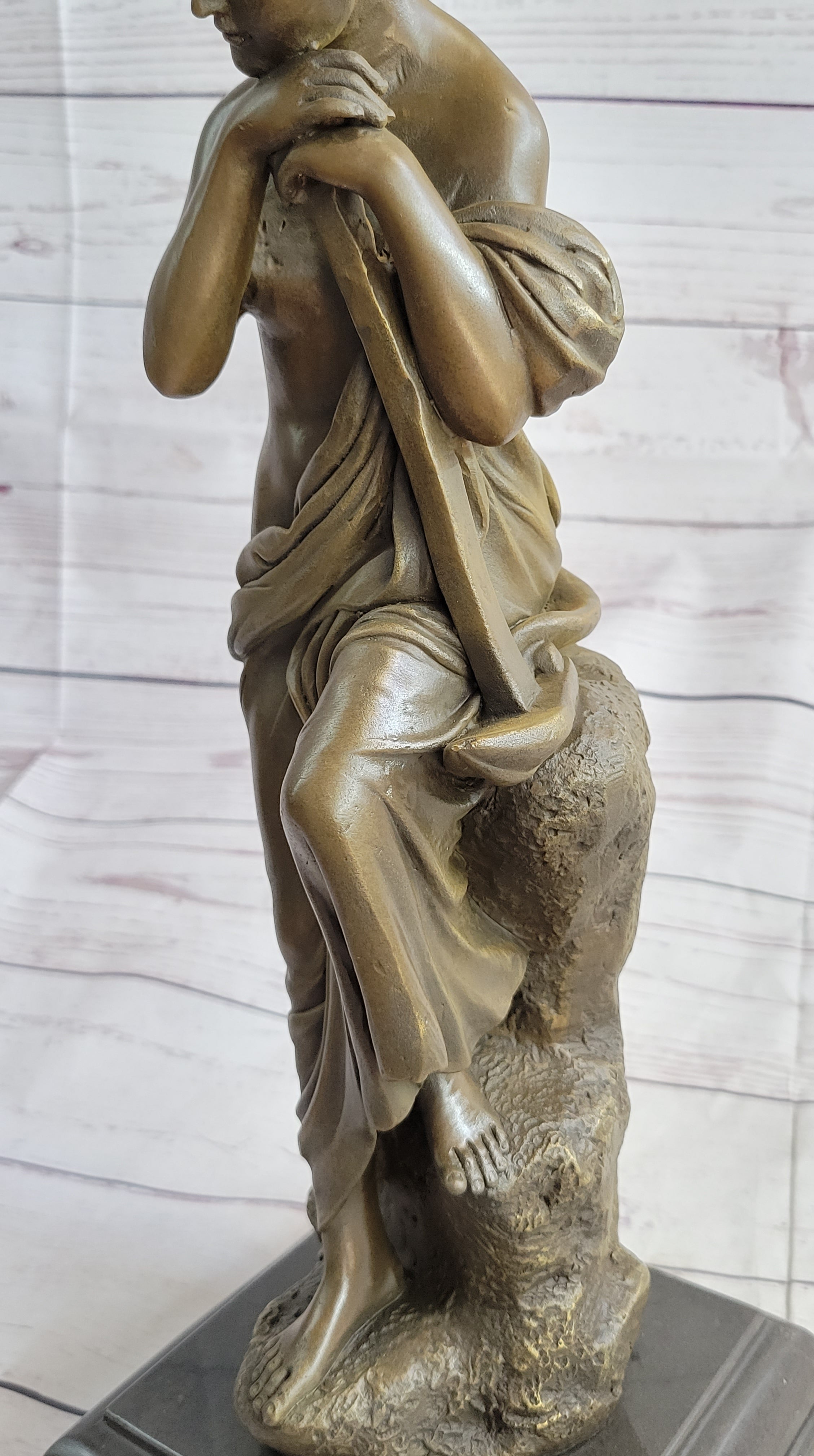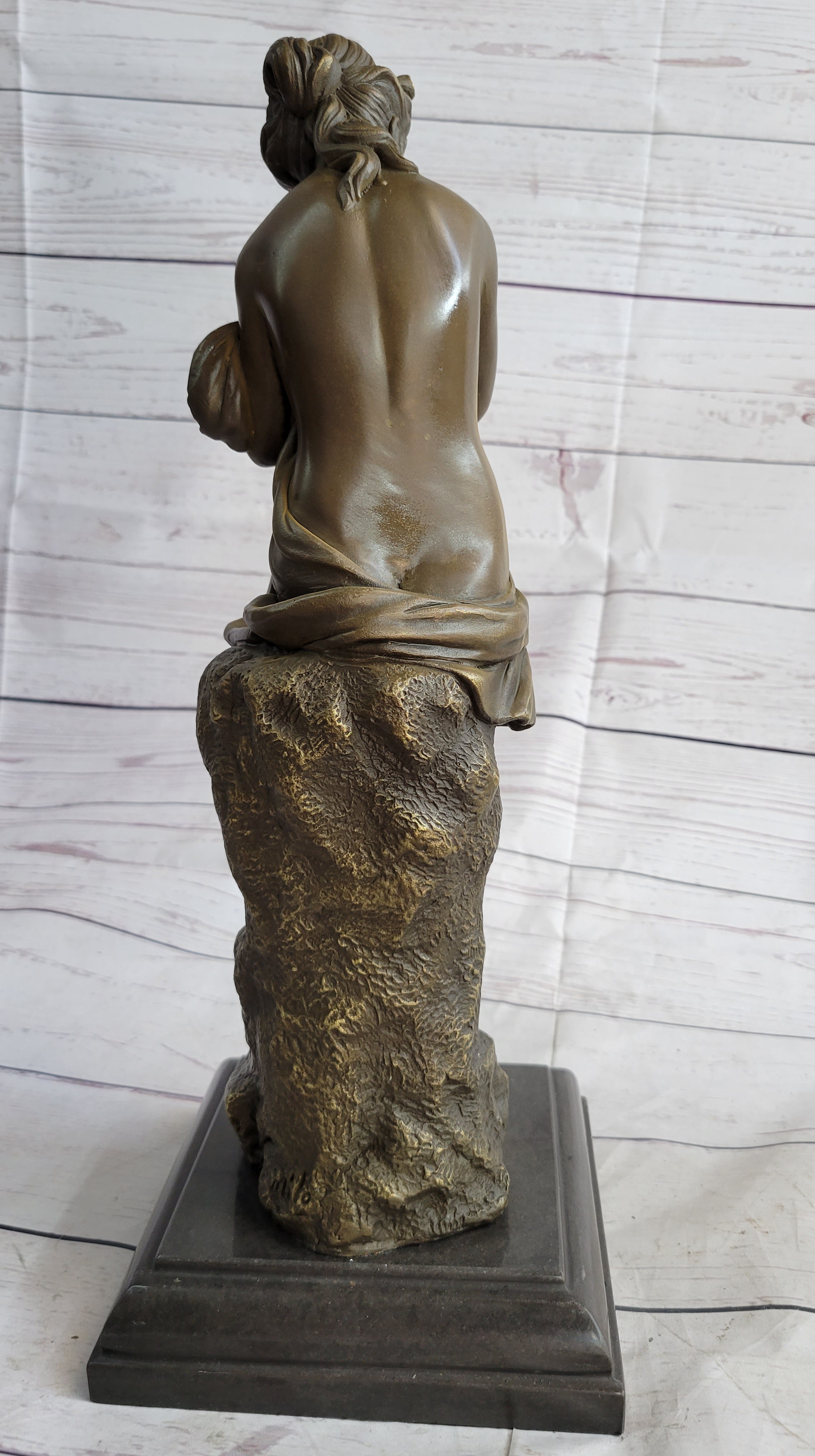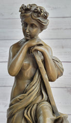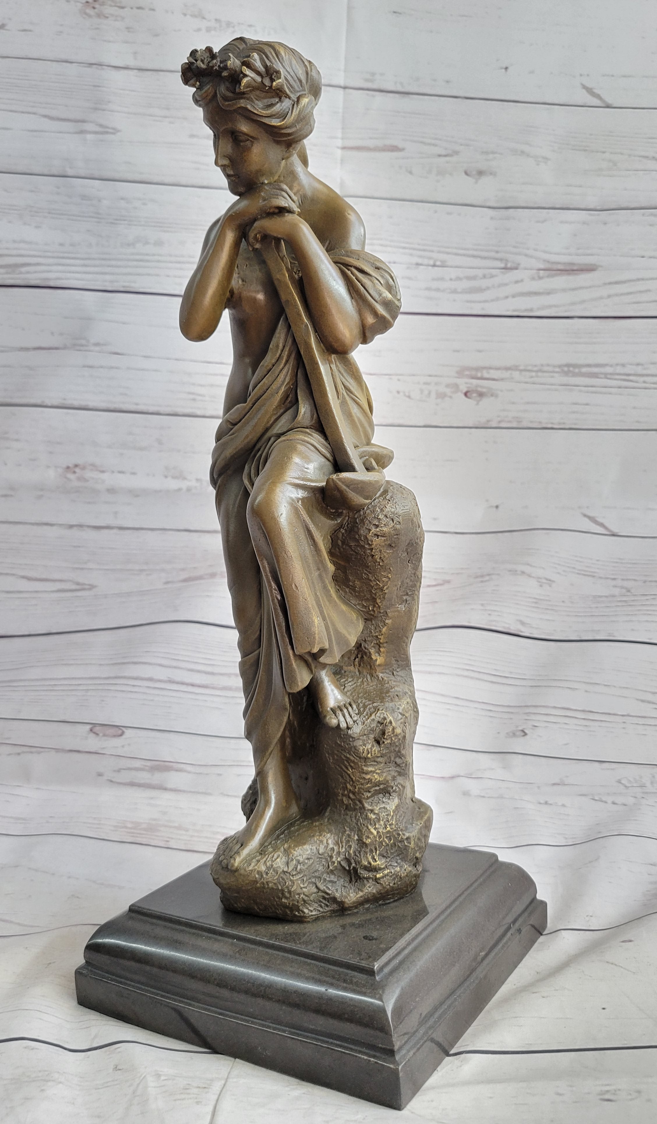 Semi Nude Female Greek Goddess Woman Holding Pickaxe Bronze Metal Statue Sculpture on Marble Base 16" x 5"
