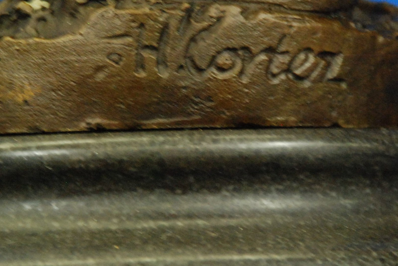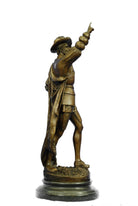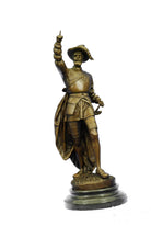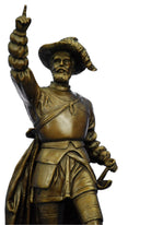 The 16th-century Spanish conquistador and explorer Vasco Núñez de Balboa (1475-1519) helped establish the first stable settlement on the South American continent at Darién, on the coast of the Isthmus of Panama. In 1513, while leading an expedition in search of gold, he sighted the Pacific Ocean. Balboa claimed the ocean and all of its shores for Spain, opening the way for later Spanish exploration and conquest along the western coast of South America. Balboa’s achievement and ambition posed a threat to Pedro Arias Dávila, the Spanish governor of Darién, who falsely accused him of treason and had him executed in early 1519. The handmade bronze sculpture was cast using the archaic method of lost-wax casting and stained with a brown  patina finish for perpetuation. He is mounted upon a black marble base with the artist C.Cortez signature.Bronze Dimensions with Marble Base:Height 16" x Width6"