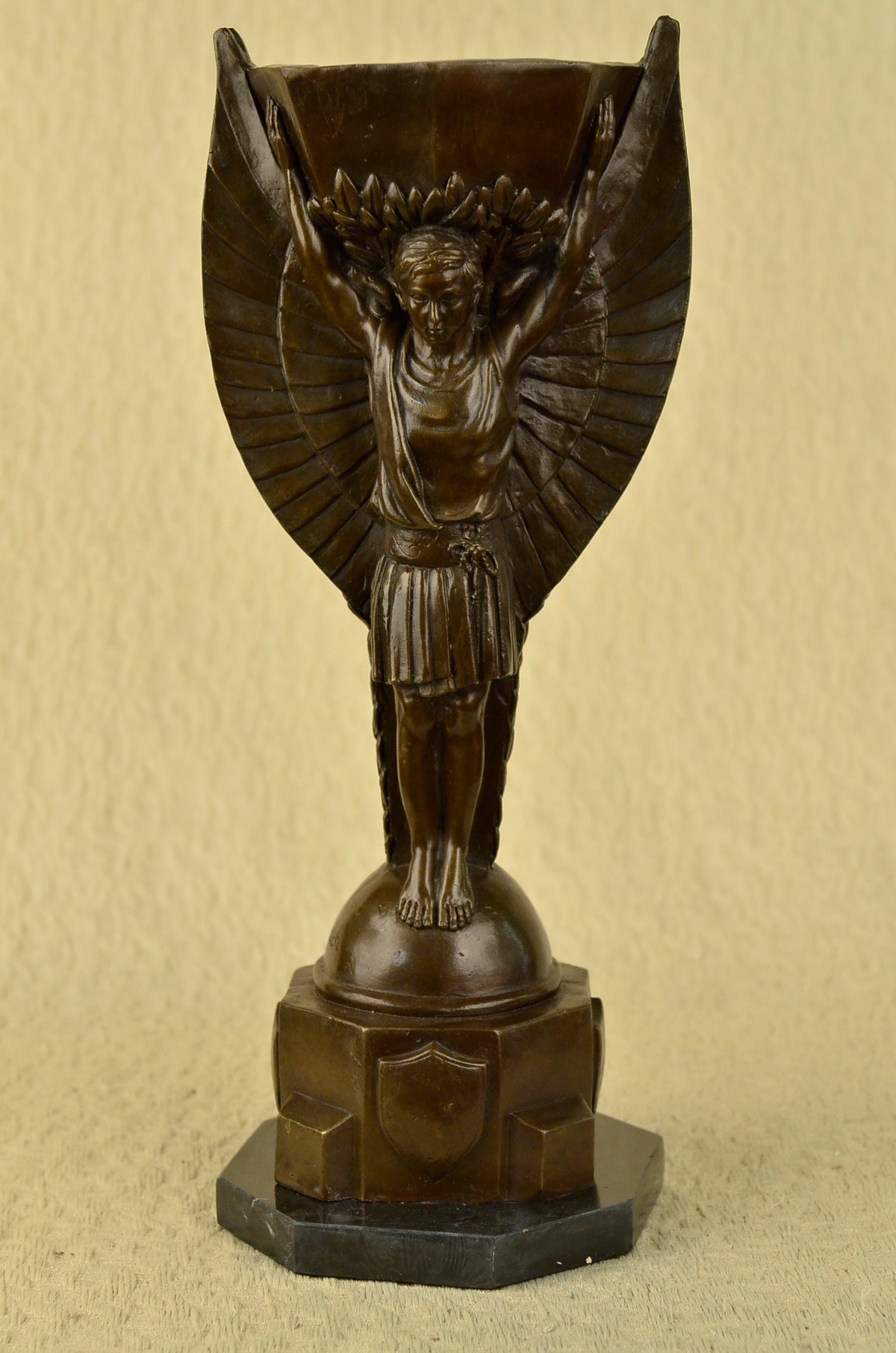 Signed Aldo Vitaleh Roman God Male Bronze Vase Sculpture Marble Base Statue SALE