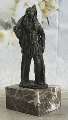 Signed American Warrior By Coypel Bronze Bookend Statue Sculpture Art Decor Gift