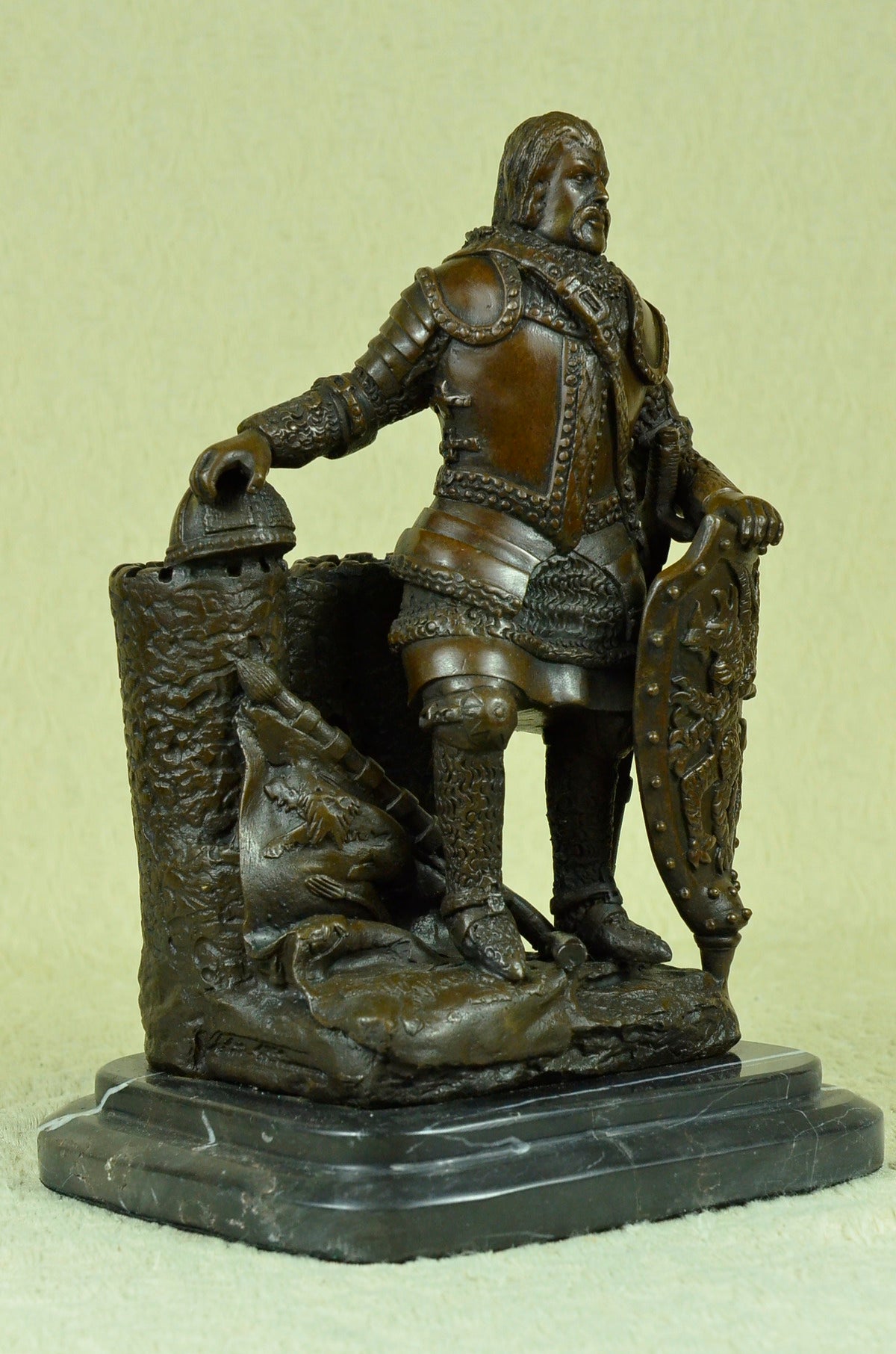 Signed Dalov Heavy Armor Viking Warrior Bronze Sculpture Statue Figure Figurine