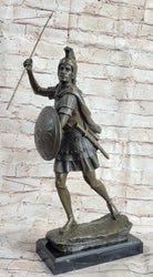Signed Drouot Roman Legion Soldier Warrior Bronze Marble Sculpture Statue Figure