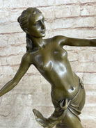 Crafted entirely from 100% bronze, this sculpture exemplifies the enduring legacy of the "Lost Wax Method." This ancient technique ensures that every aspect of the artwork is faithfully reproduced, preserving its quality. The sculpture stands proudly atop a marble base, infusing an air of sophistication into its presentation. The inclusion of the artist R. Leger's signature underscores its provenance and artistic lineage.
