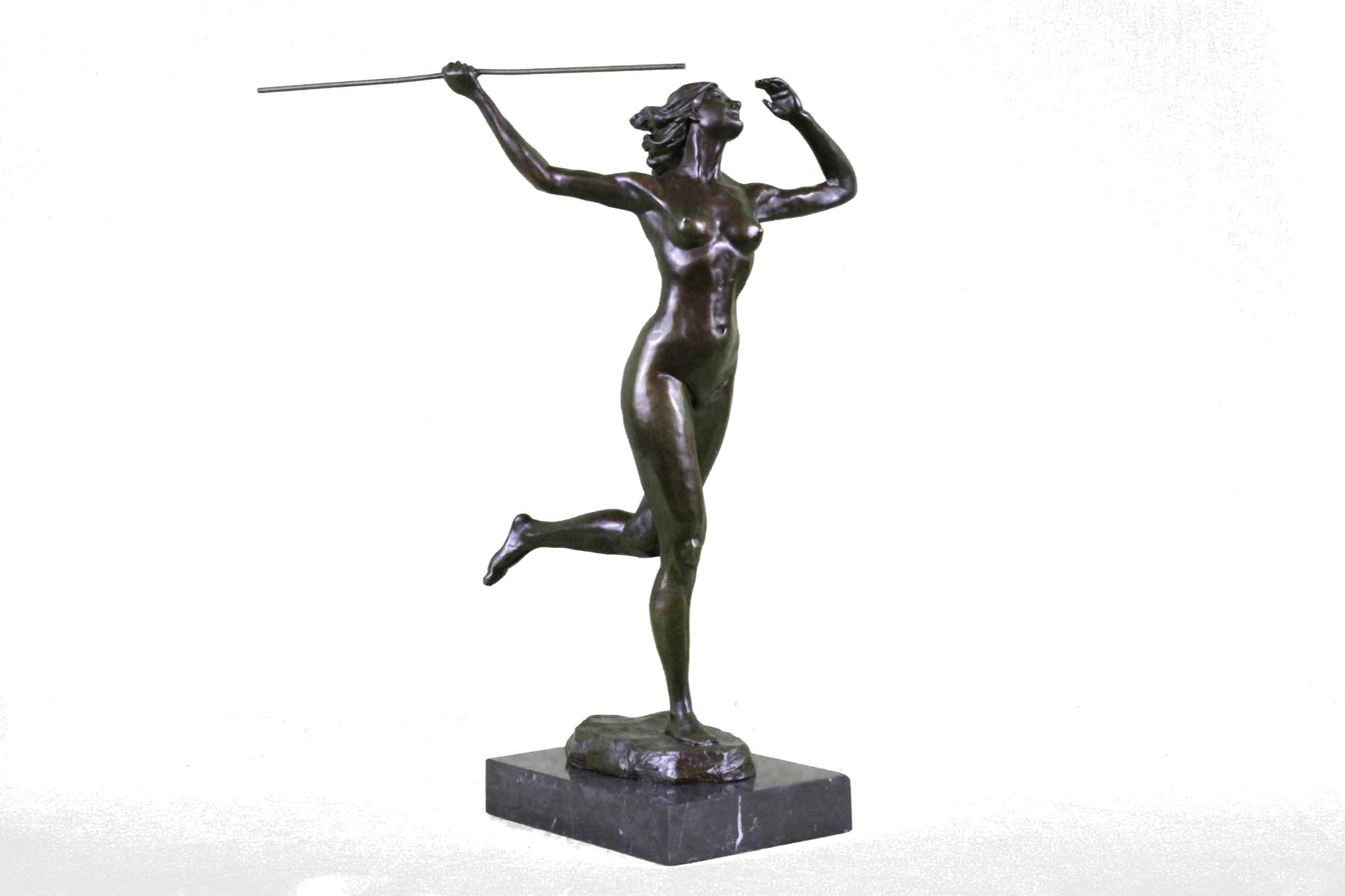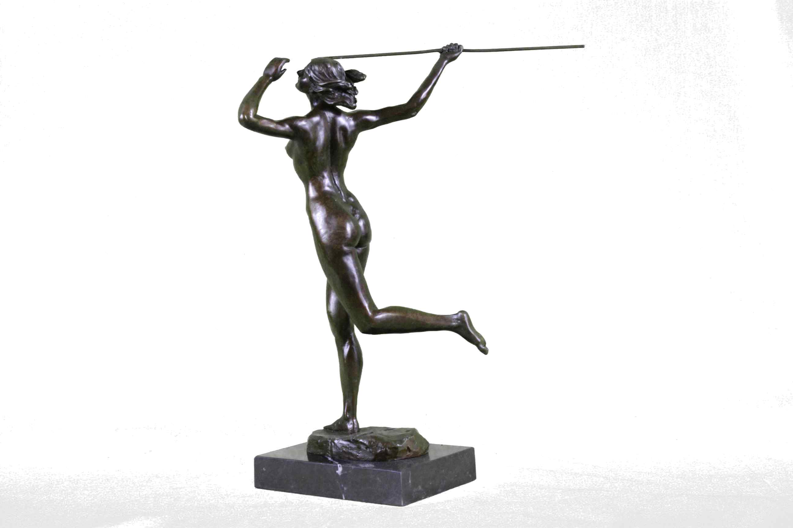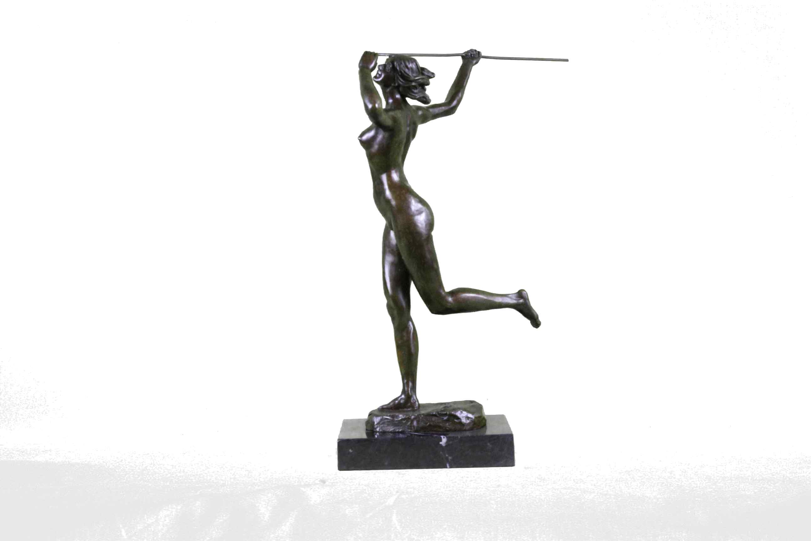 Signed Original Italian Artist Nude Diana The Huntress Bronze Sculpture Figure