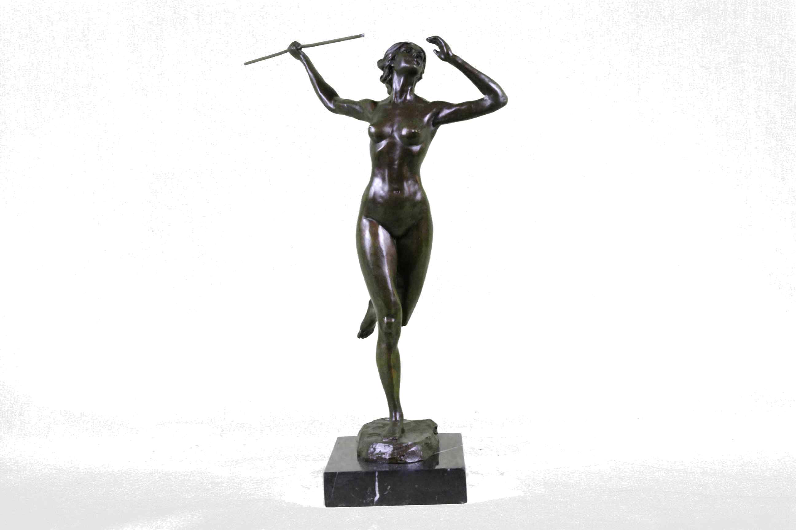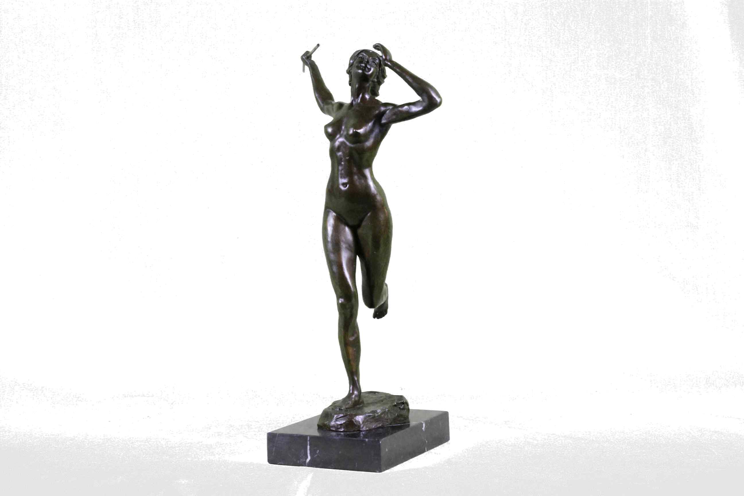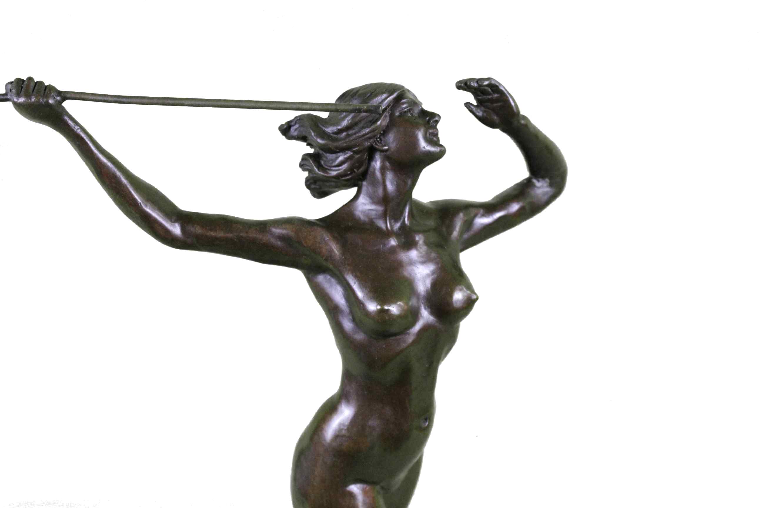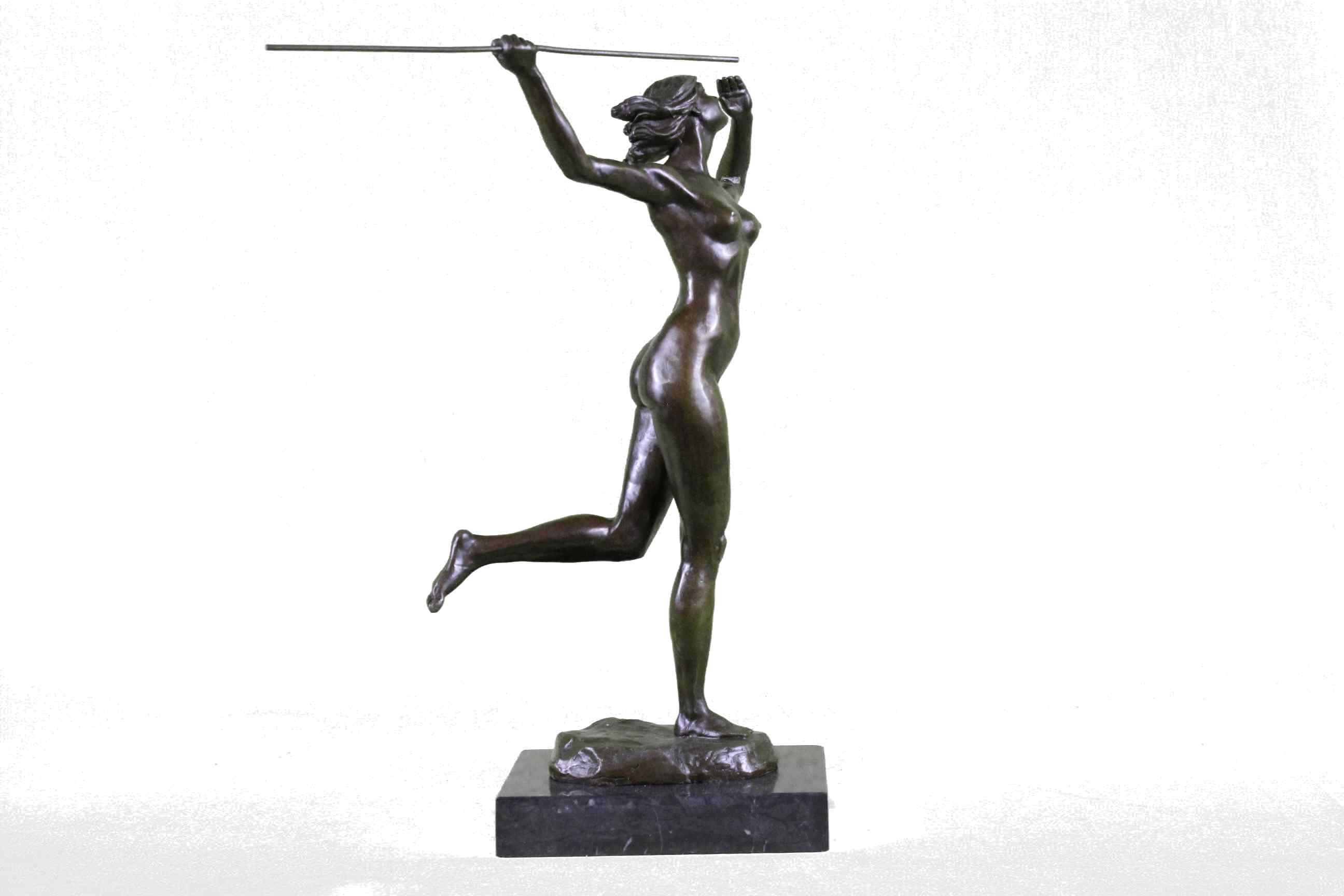 Signed Original Italian Artist Nude Diana The Huntress Bronze Sculpture Figure
