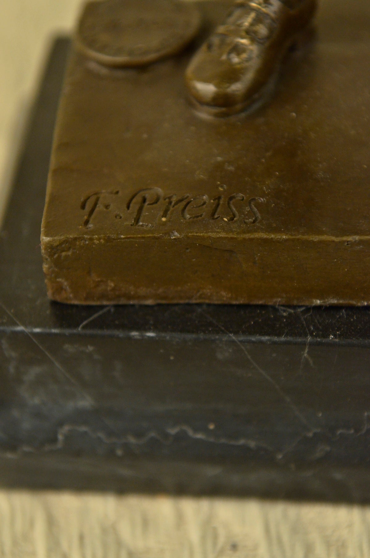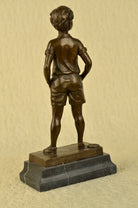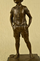 Signed Preiss Young Boy School Boy Bow Tie Bronze Sculpture Marble Base Statue