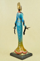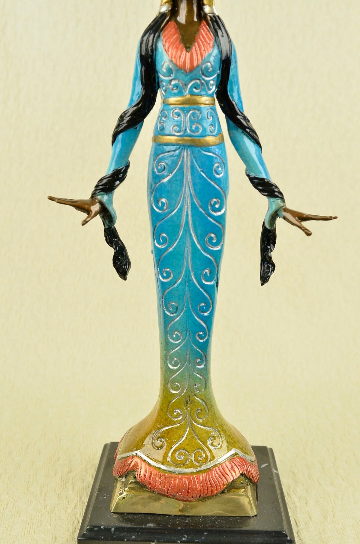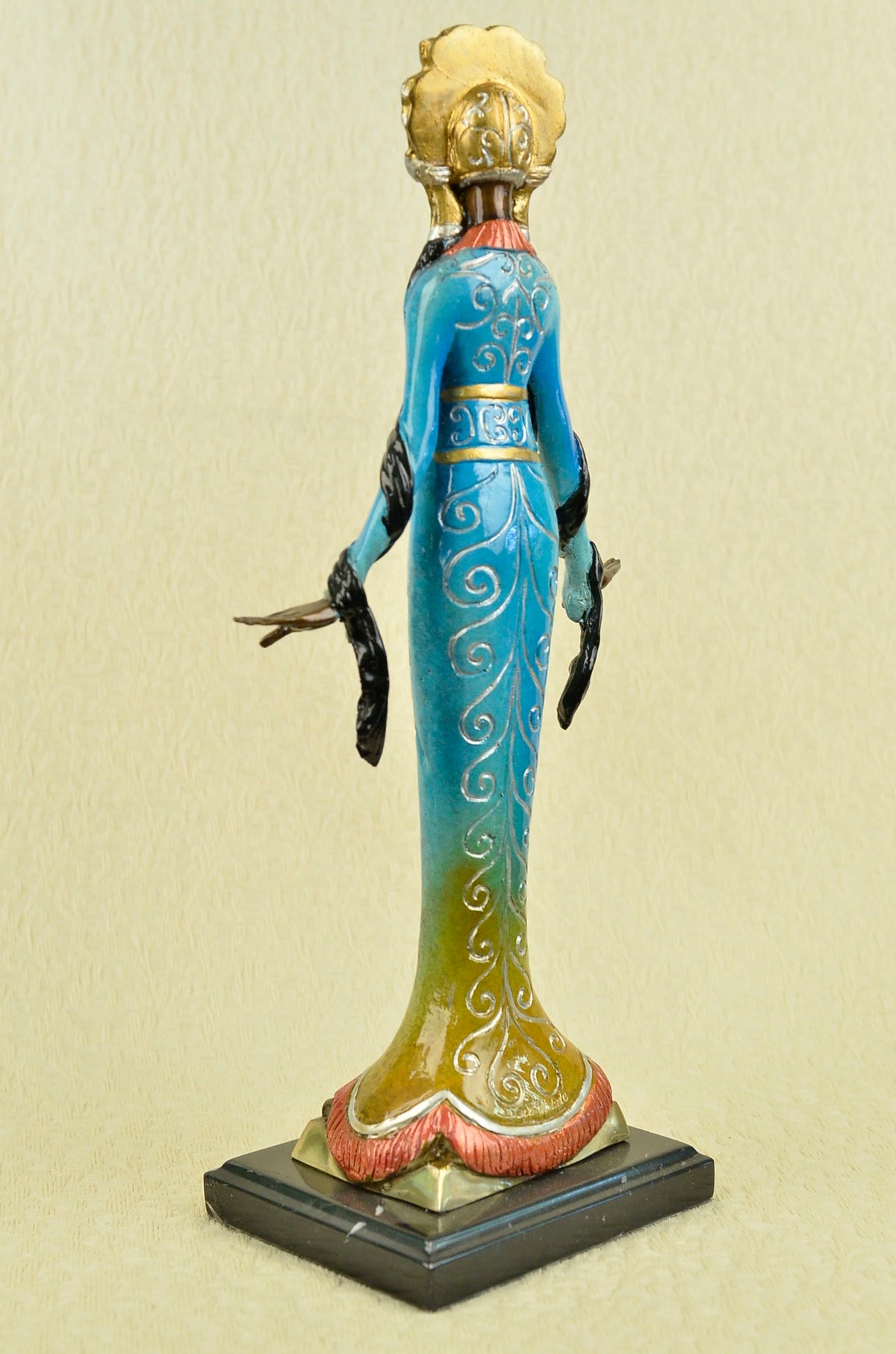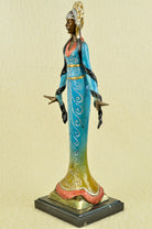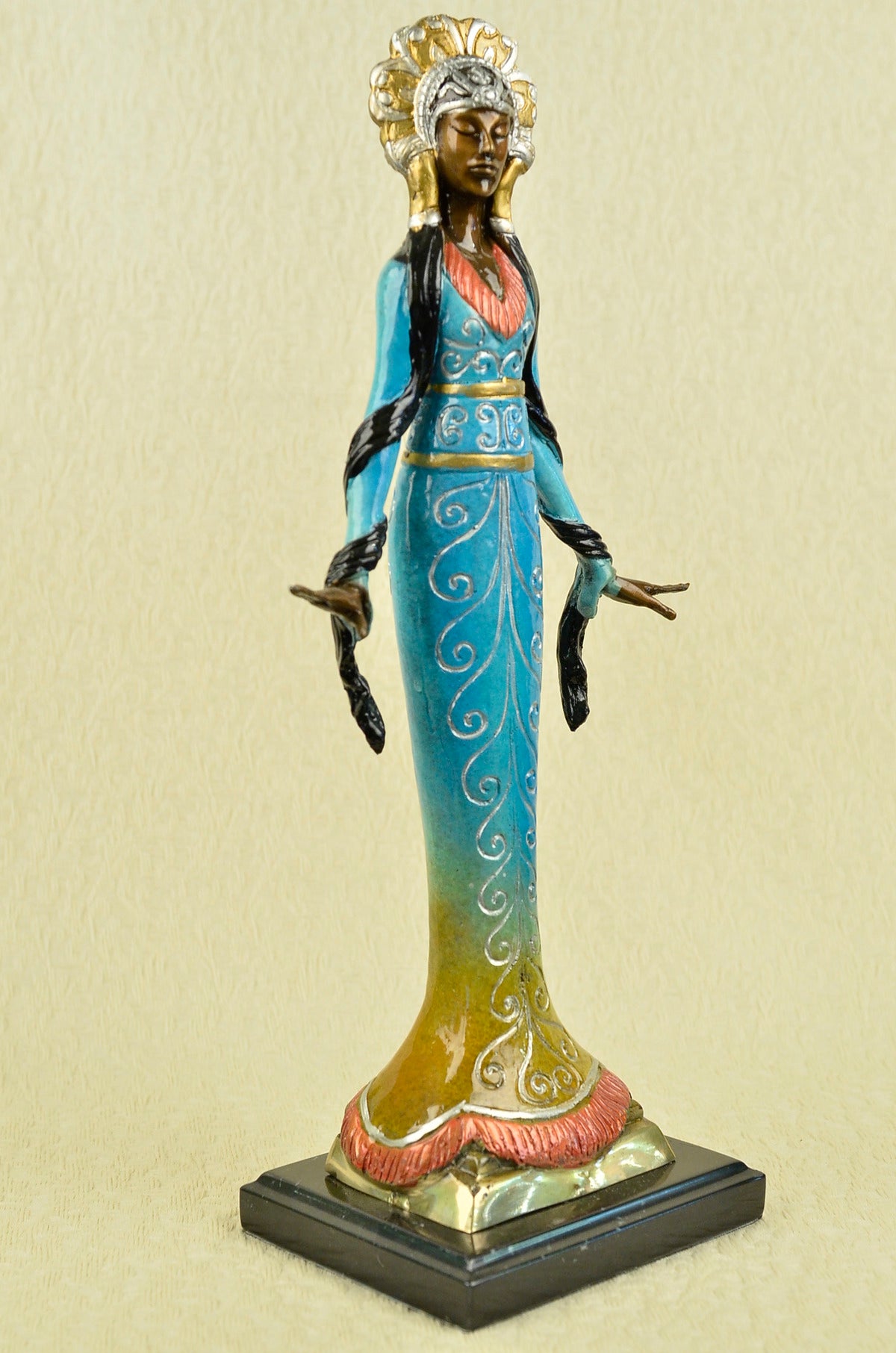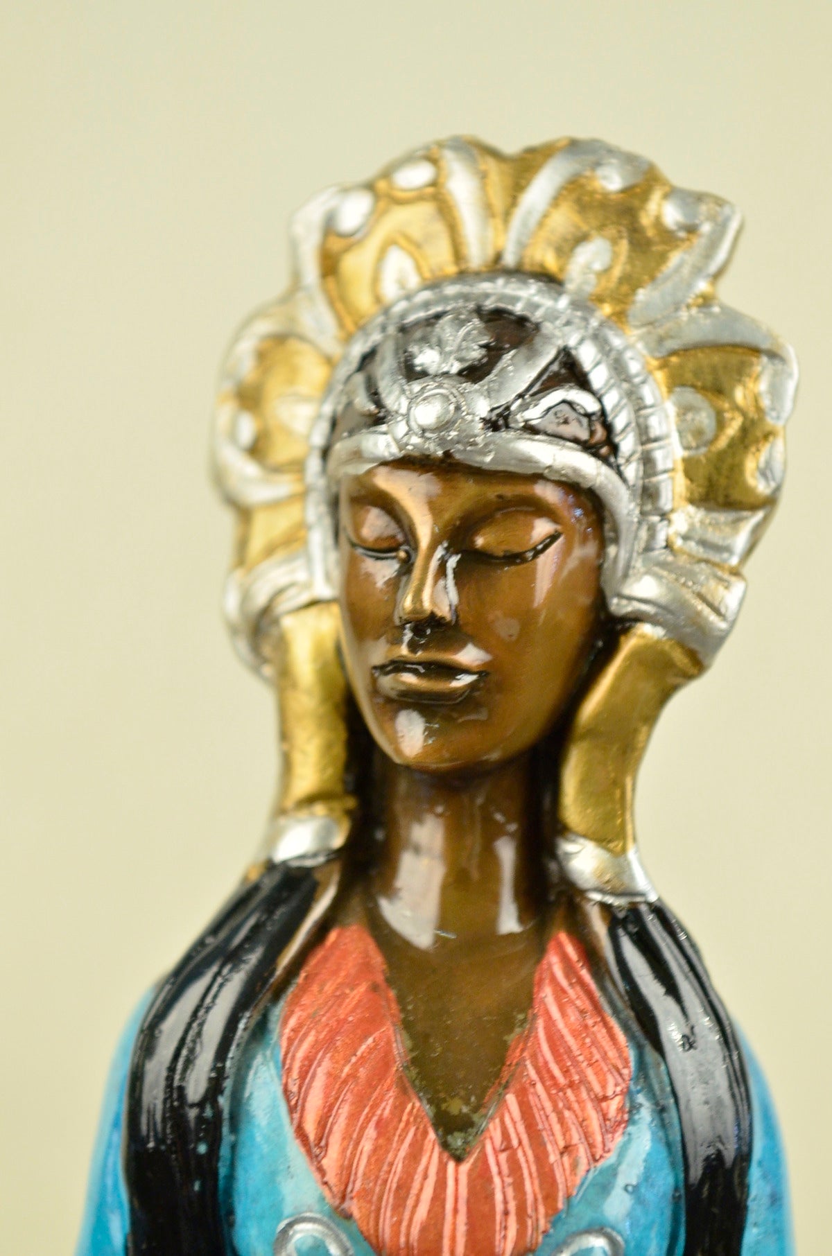 TALL INDIAN GIRL WARRIOR BRONZE STATUE SCULPTURE ON MARBLE BASE FIGURINE FIGURE