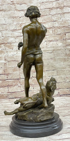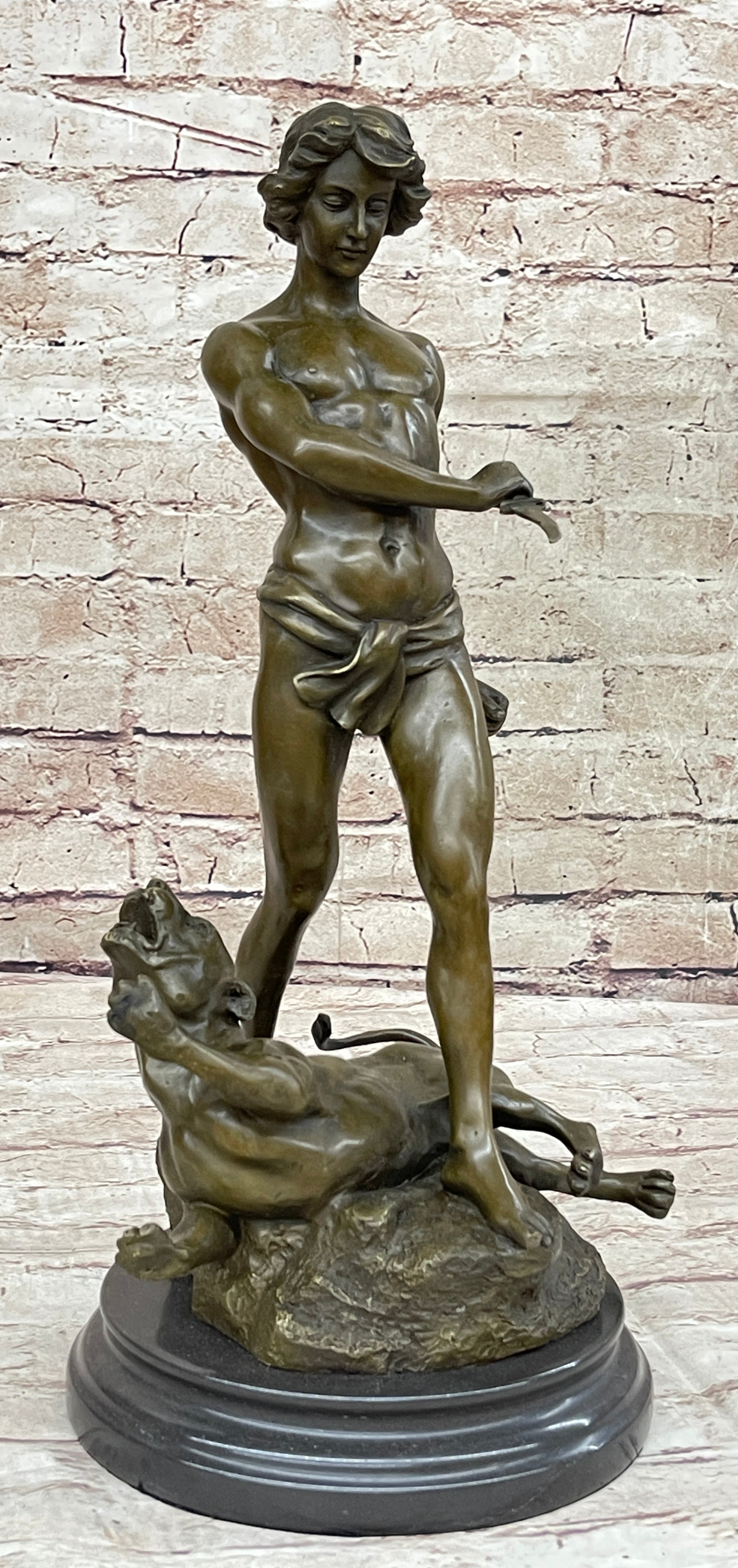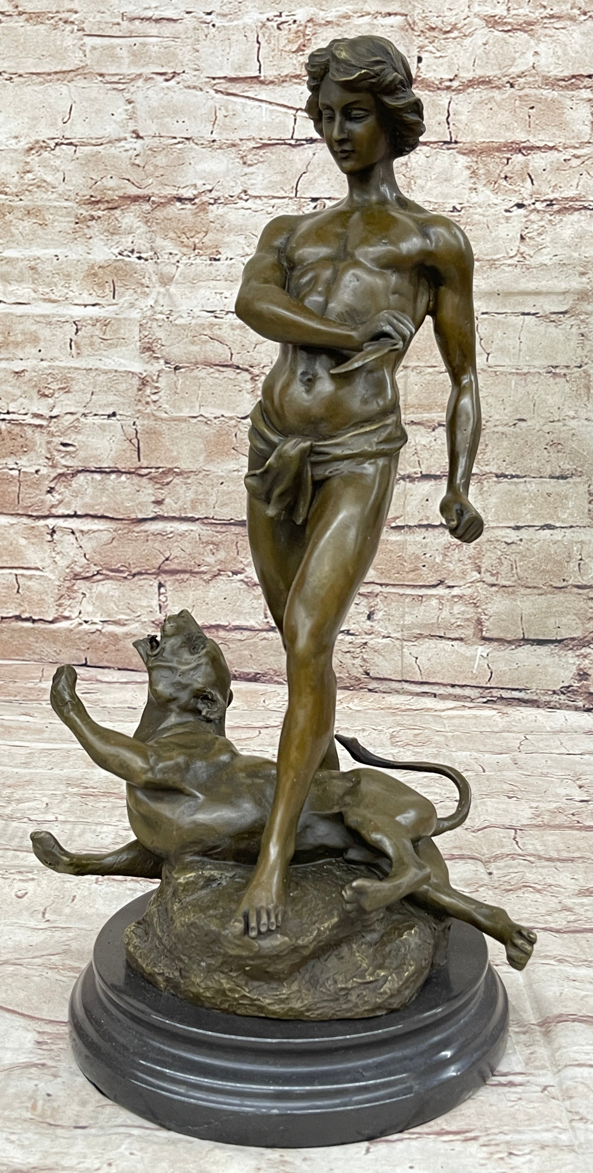 The Lion Slayer Bronze Statue Sculpture Figure by L. Potet on Marble Base