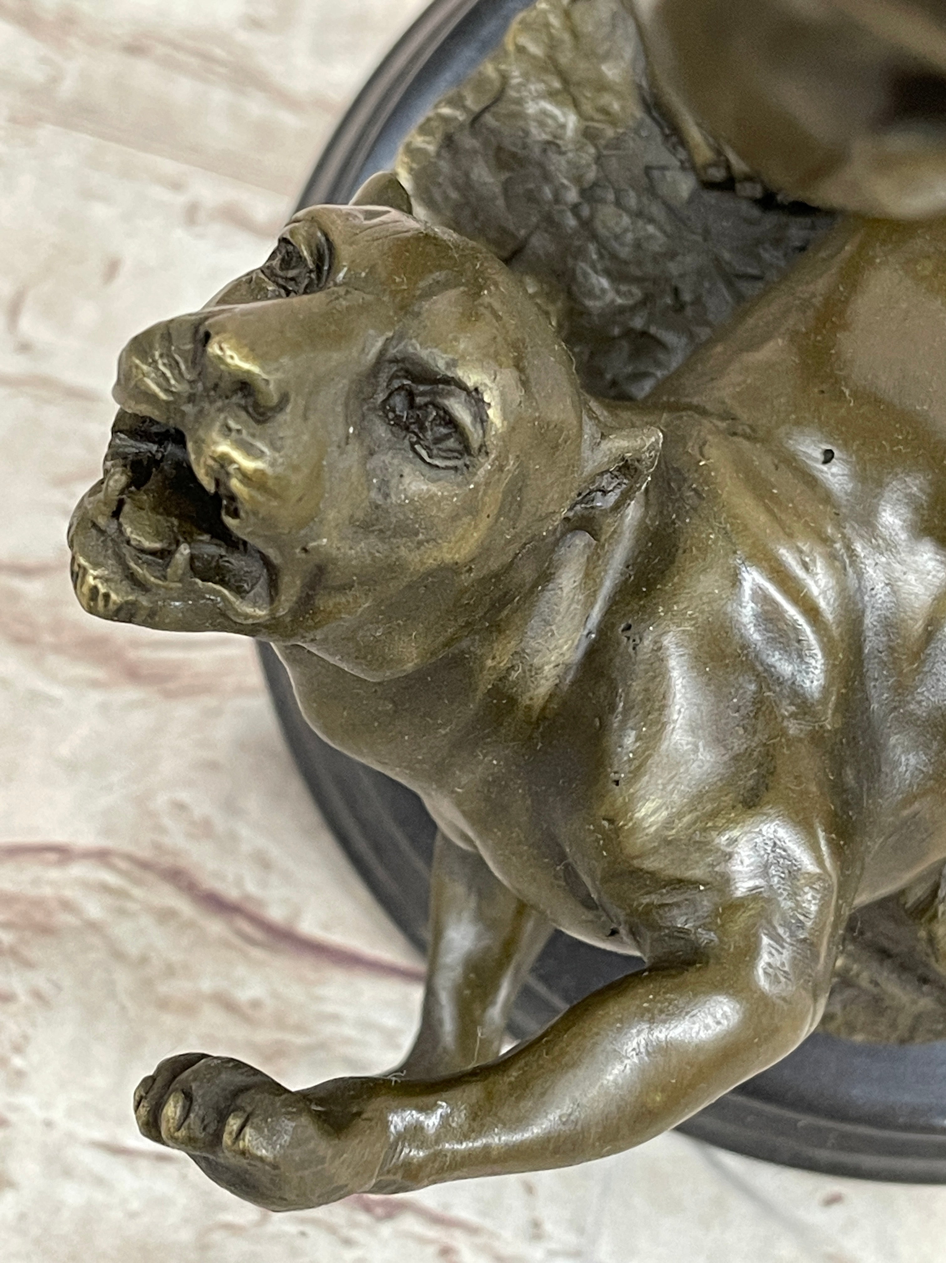 Invite the essence of bravery and artistry into your space with the Lion Slayer bronze sculpture. Whether displayed in a private art collection or showcased as a focal point in your home, this magnificent piece will captivate and inspire all who behold it. Immerse yourself in the world of Art Nouveau and embrace the beauty and symbolism that this sculpture embodies.Bronze Dimensions with Marble Base: Height 16.5" X Width 7"