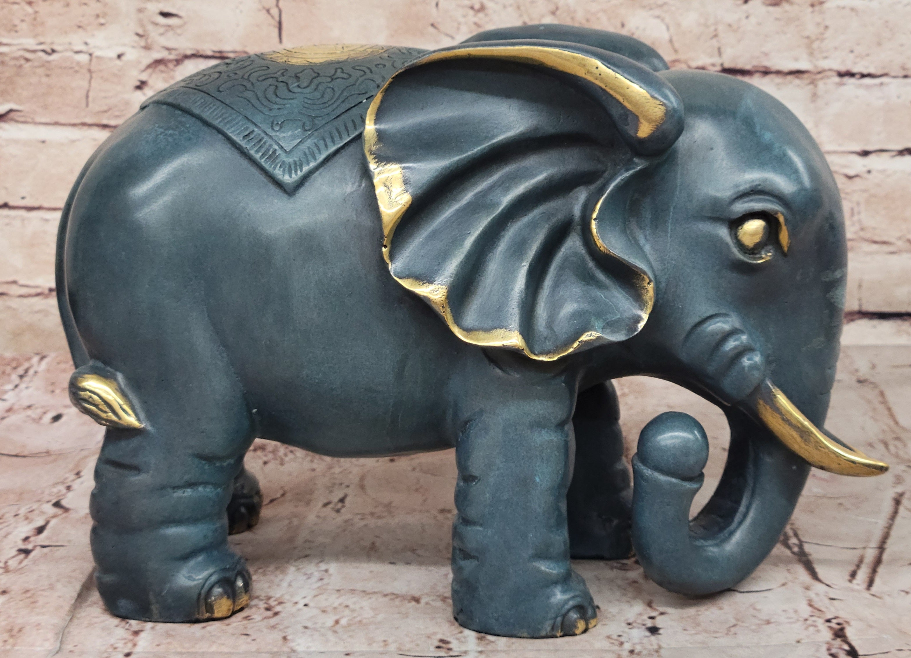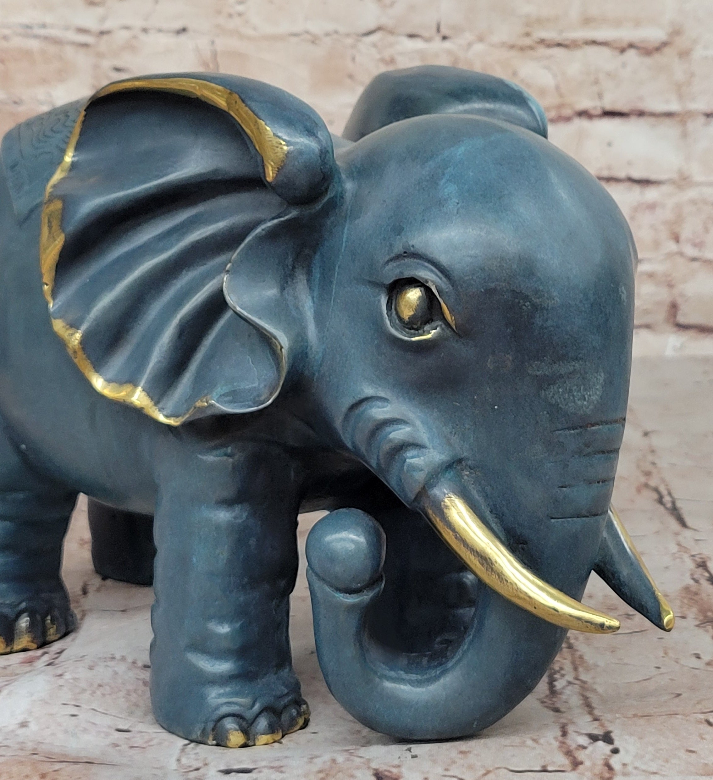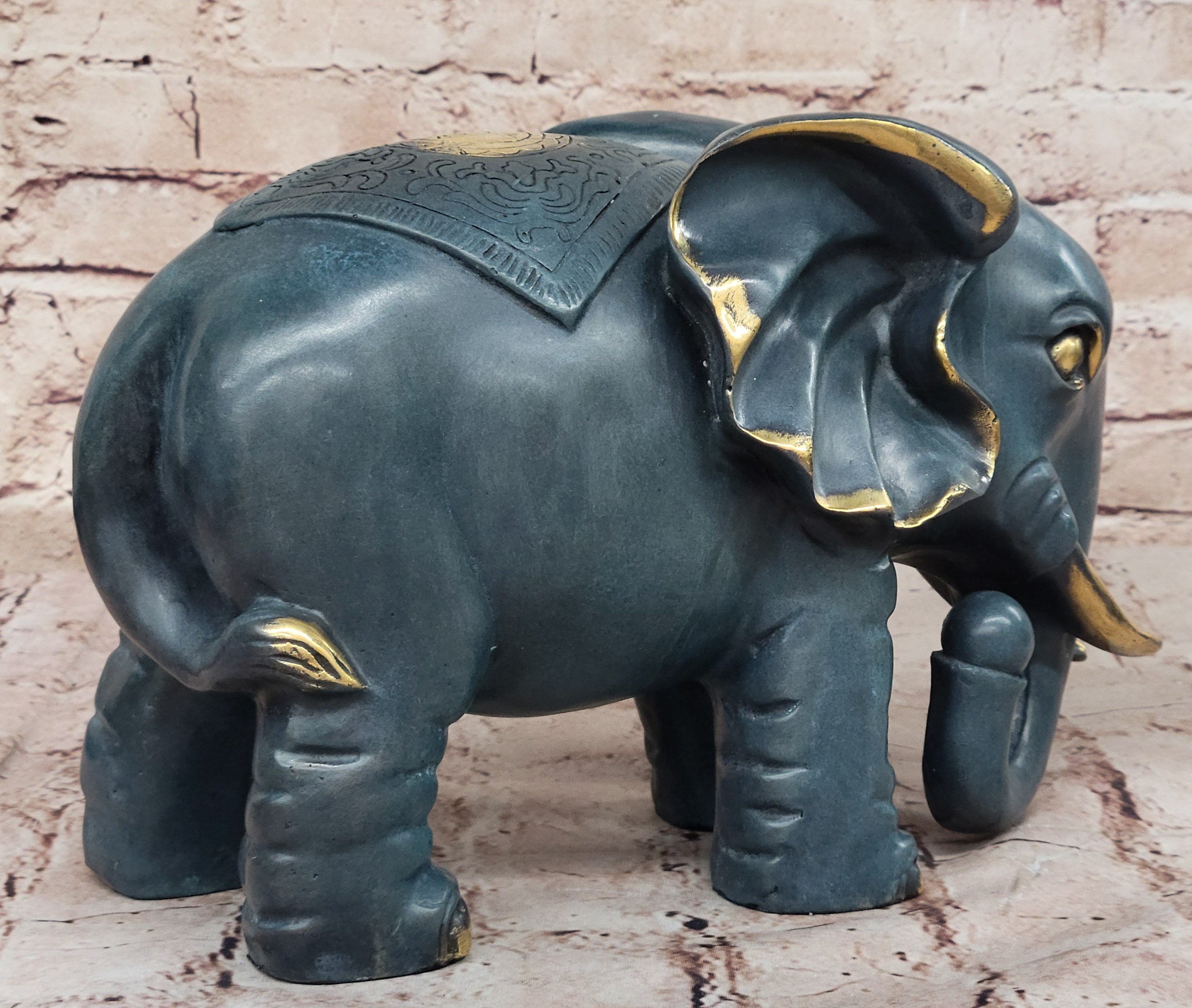 Bronze Elephant Sculpture with Gold Tusks and Accents Feng Shui Statue