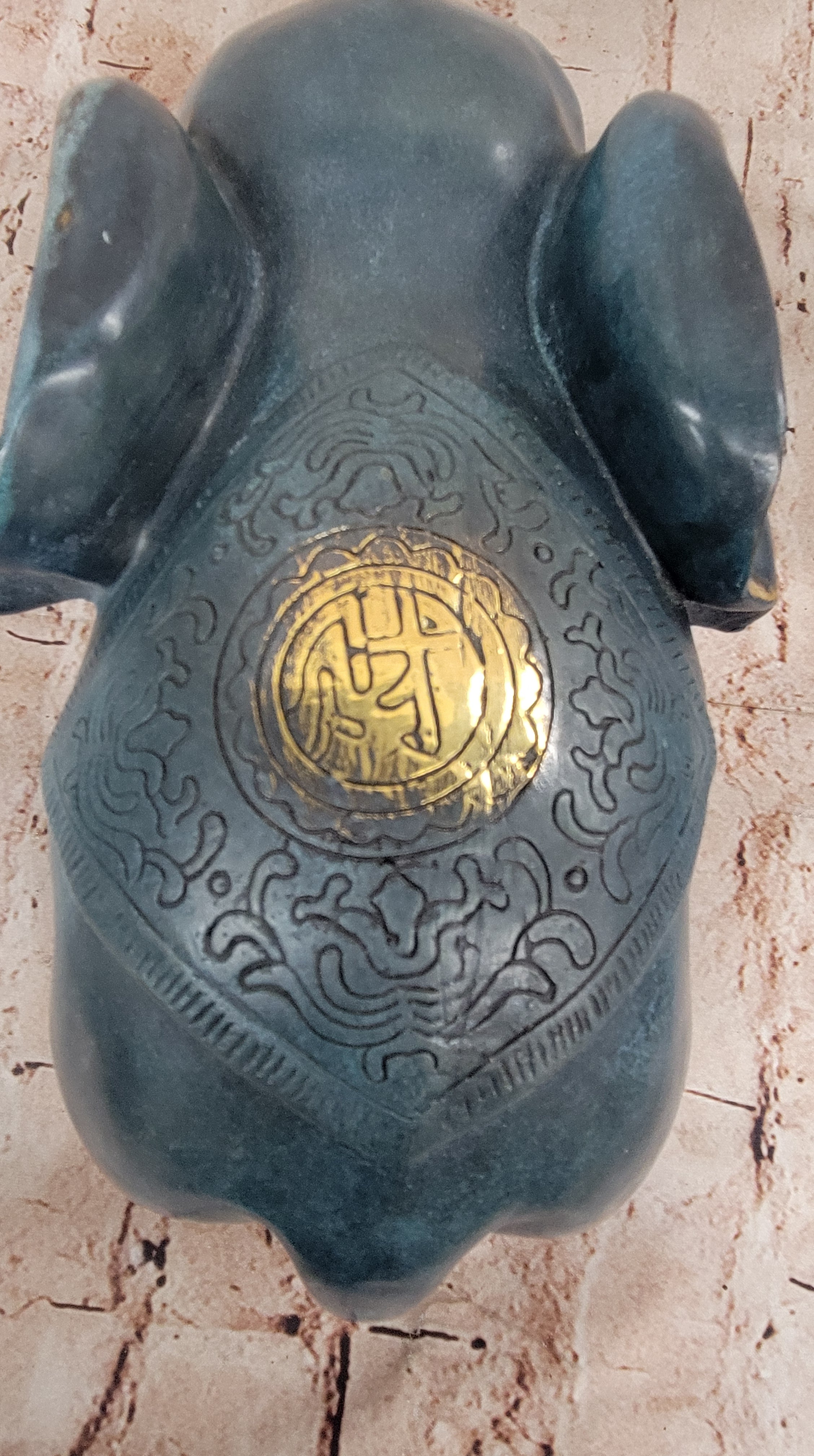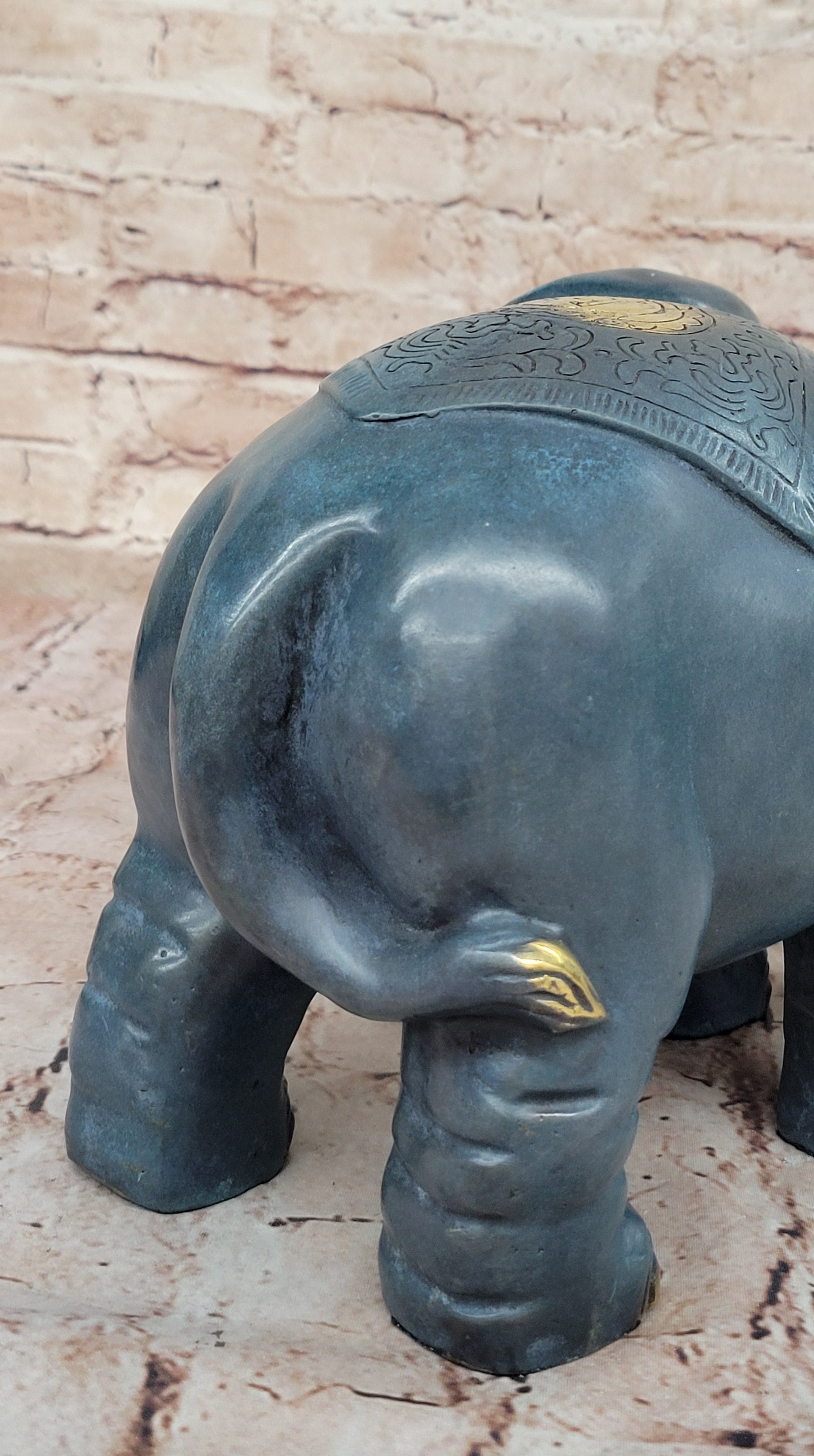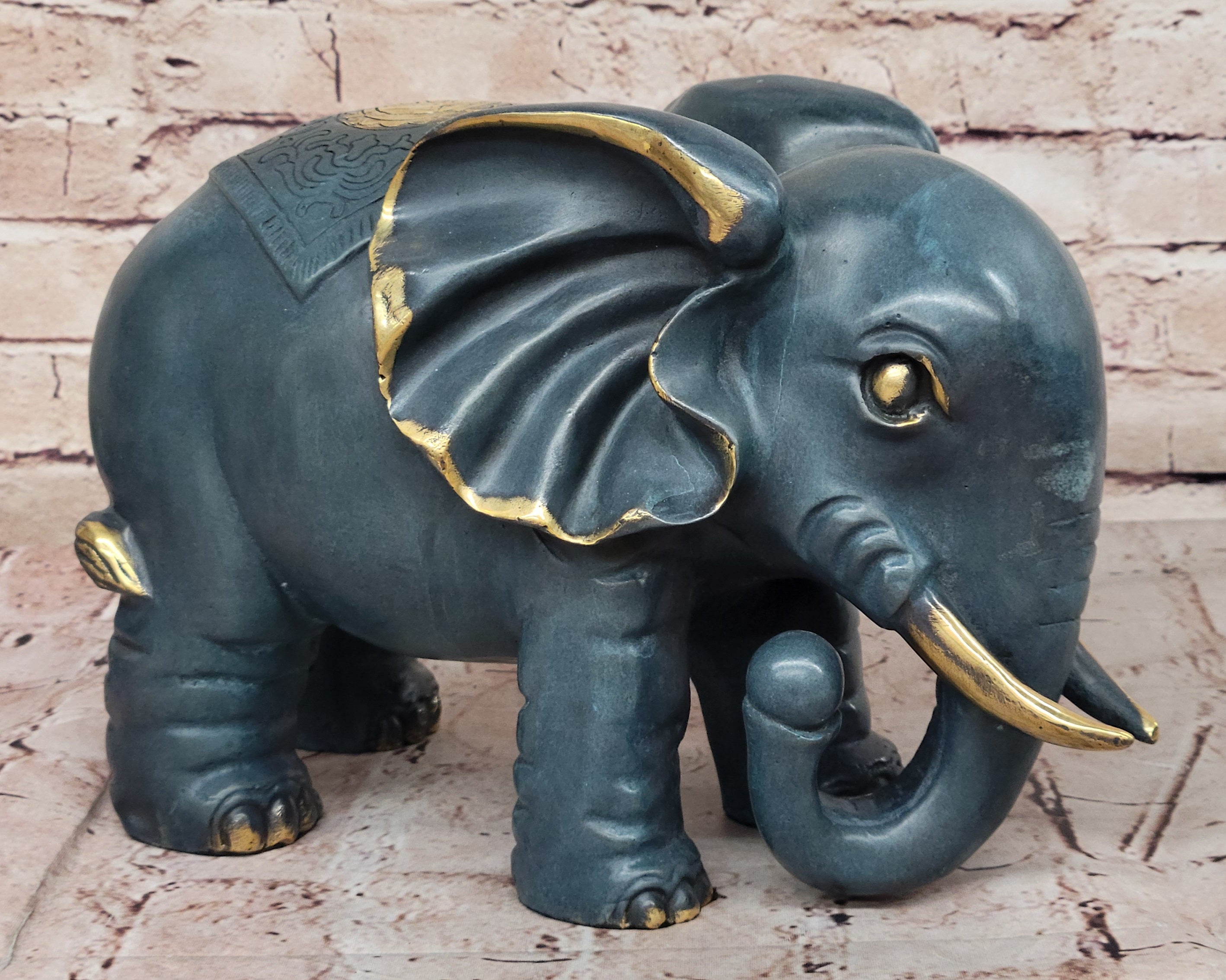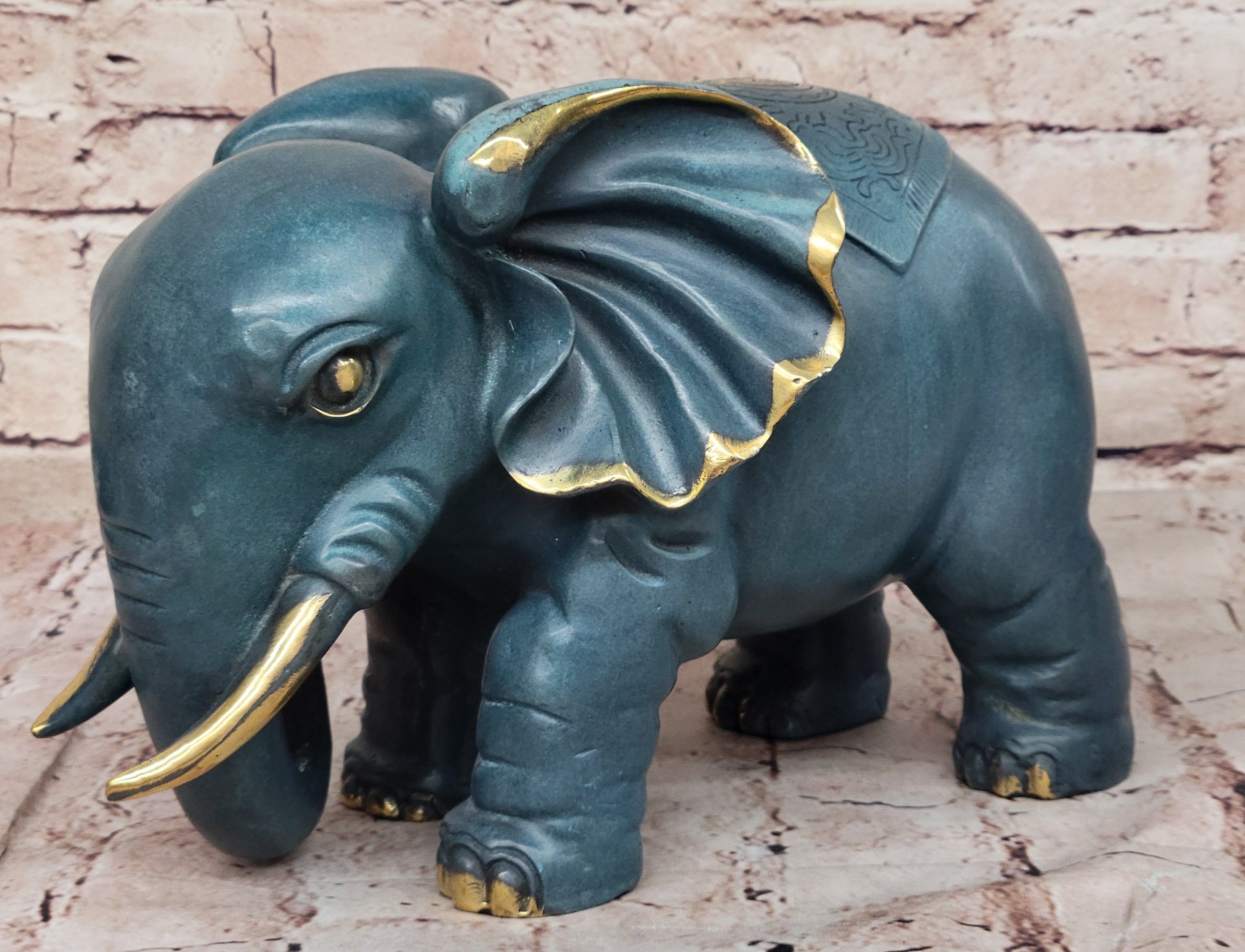 Bronze Elephant Sculpture with Gold Tusks and Accents Feng Shui Statue