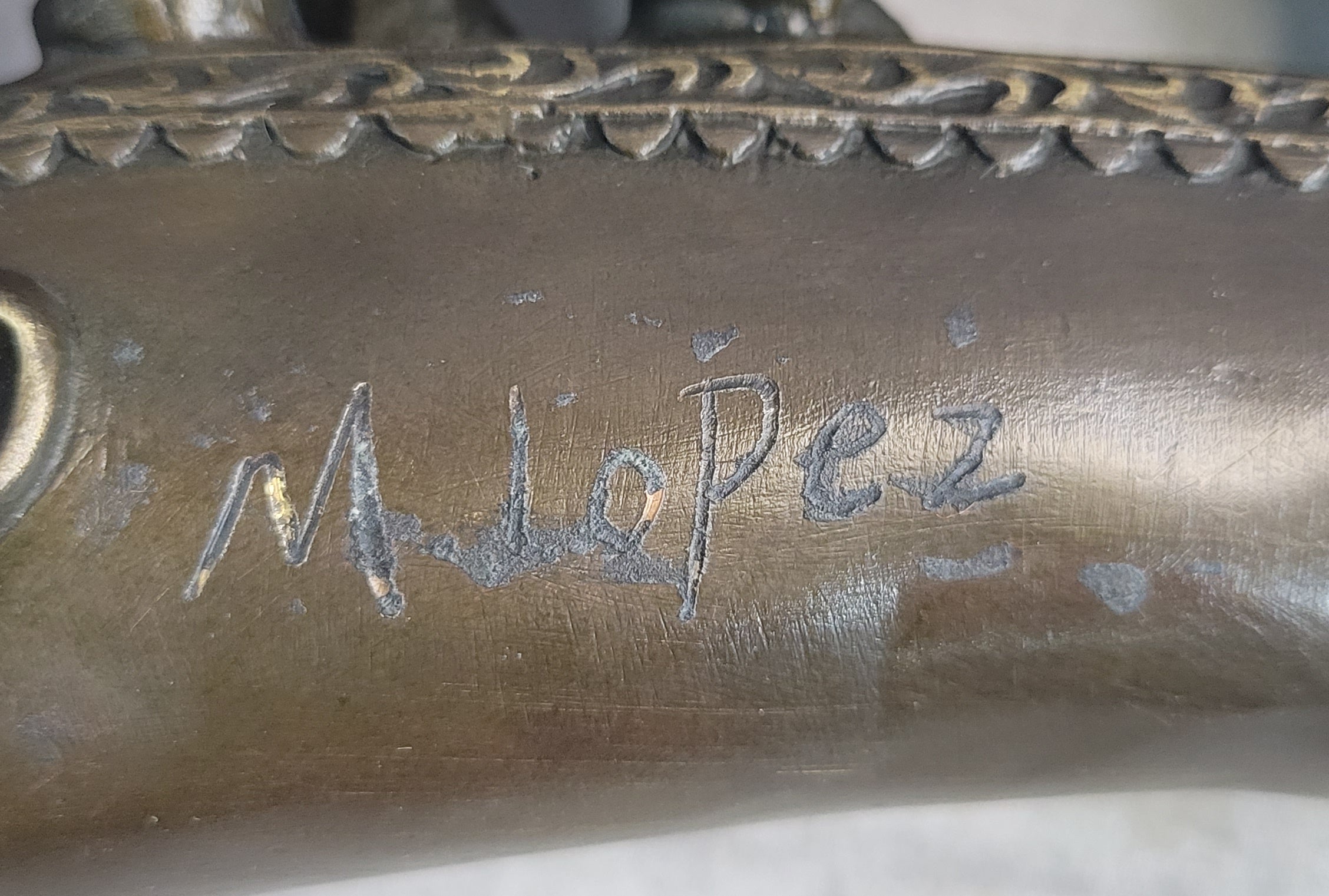 Invite the power of the elephant into your life and usher in prosperity and good fortune with this remarkable bronze sculpture by Miguel Lopez. It's more than art; it's a symbol of abundance and a testament to the enduring allure of these magnificent creatures.Bronze Dimensions: Height 7" X Width 13"