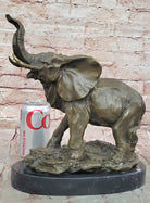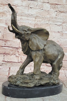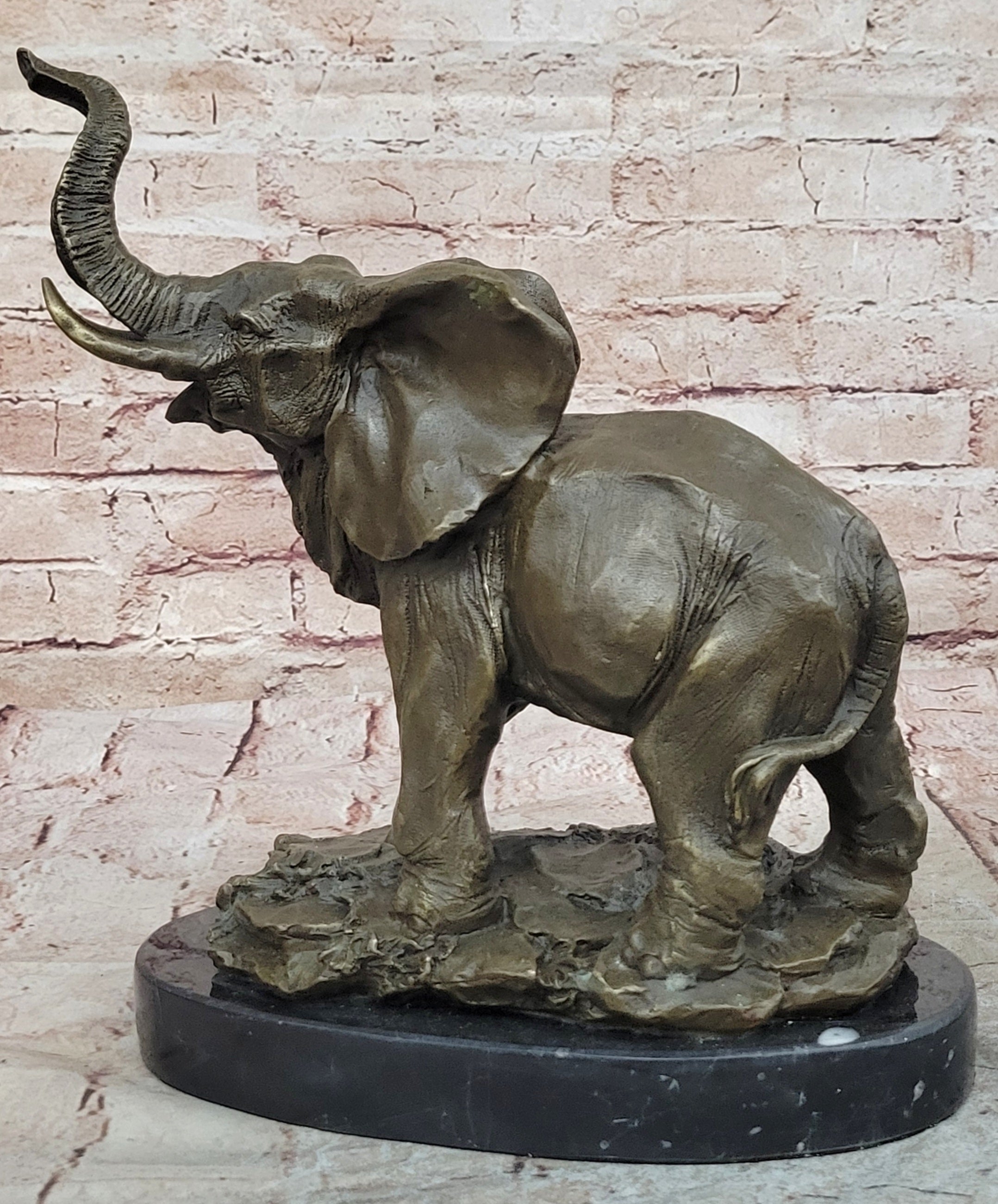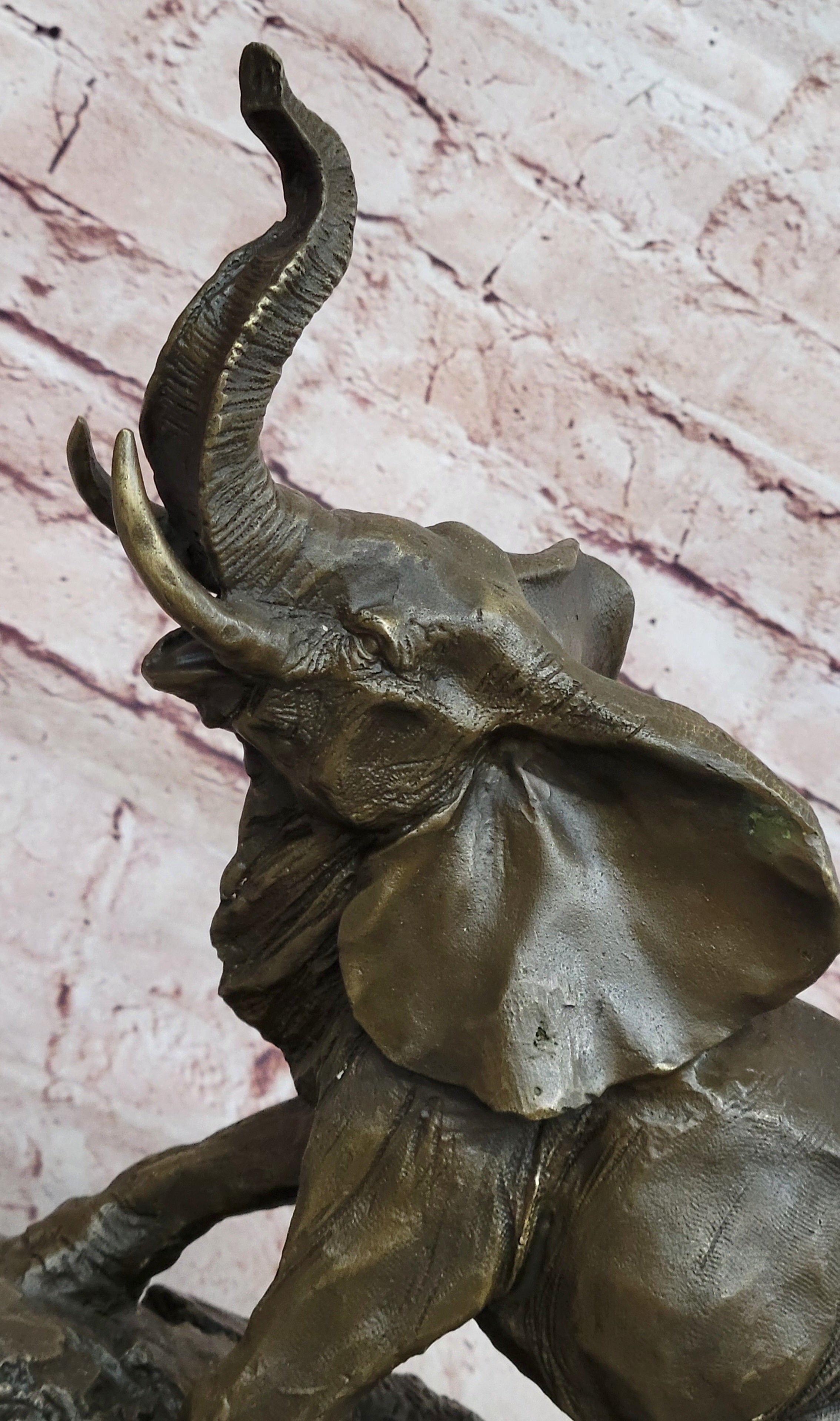 Signed Large African Elephant Safari Bronze Sculpture Marble Statue by Barye Art