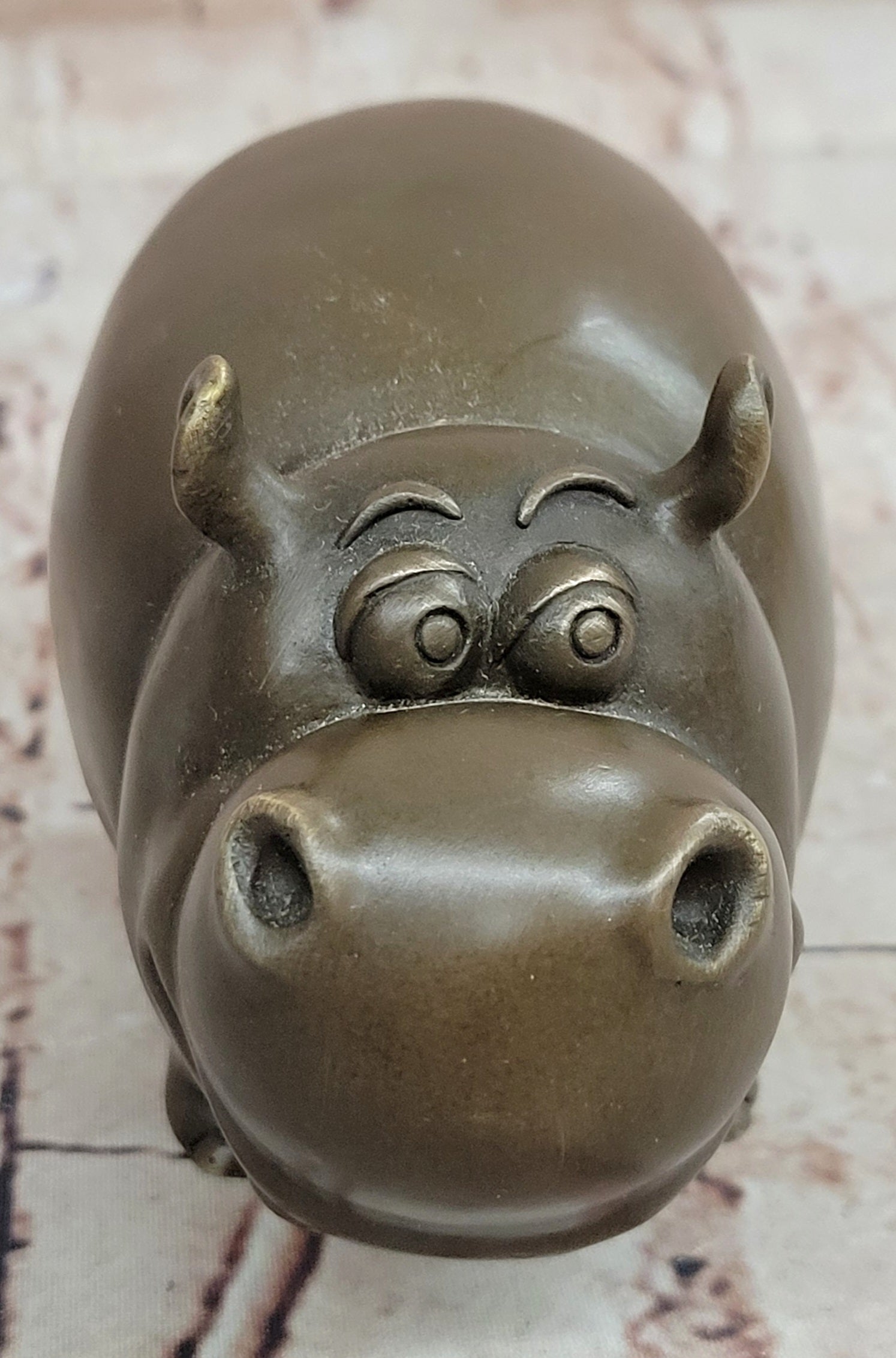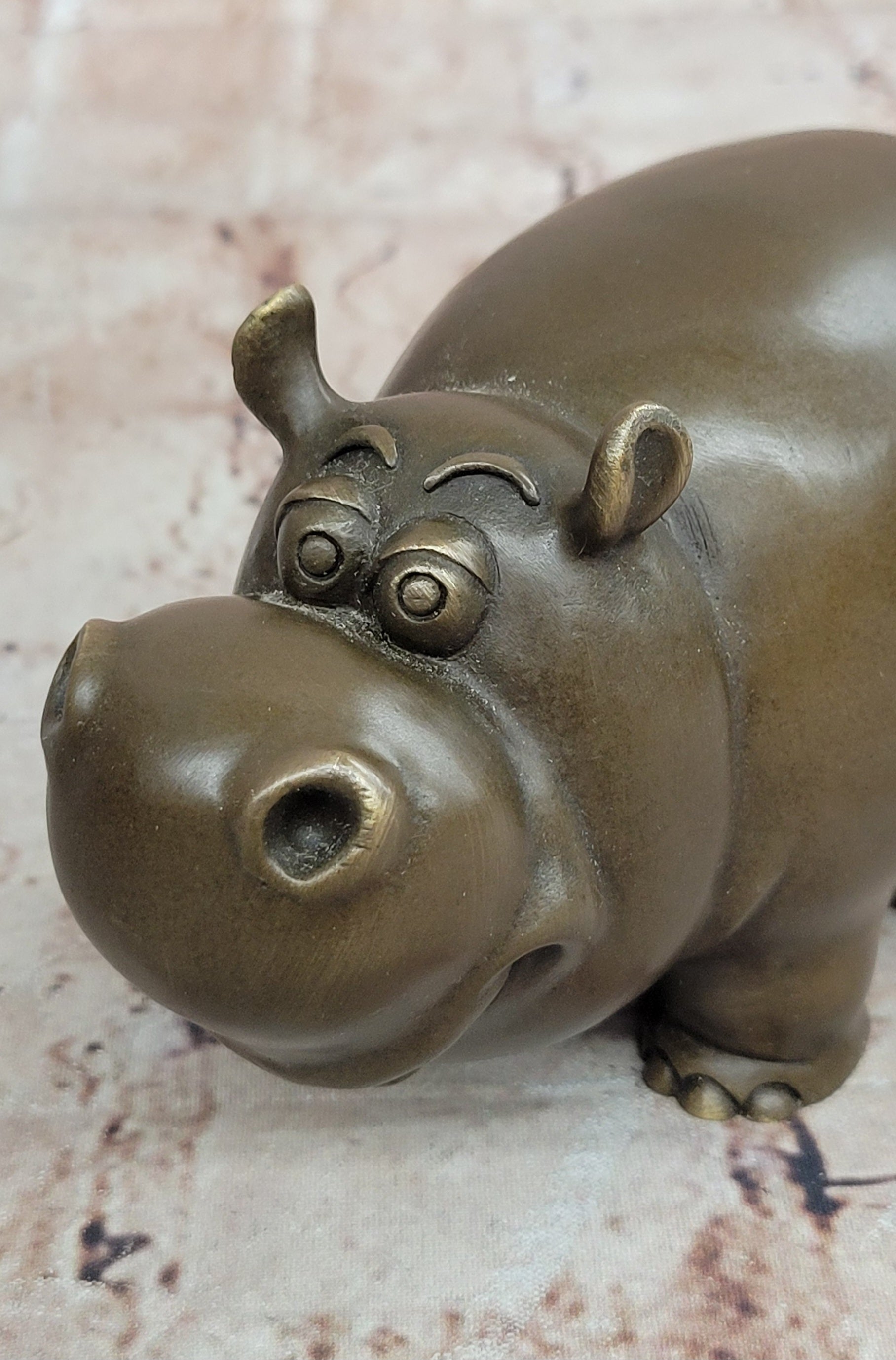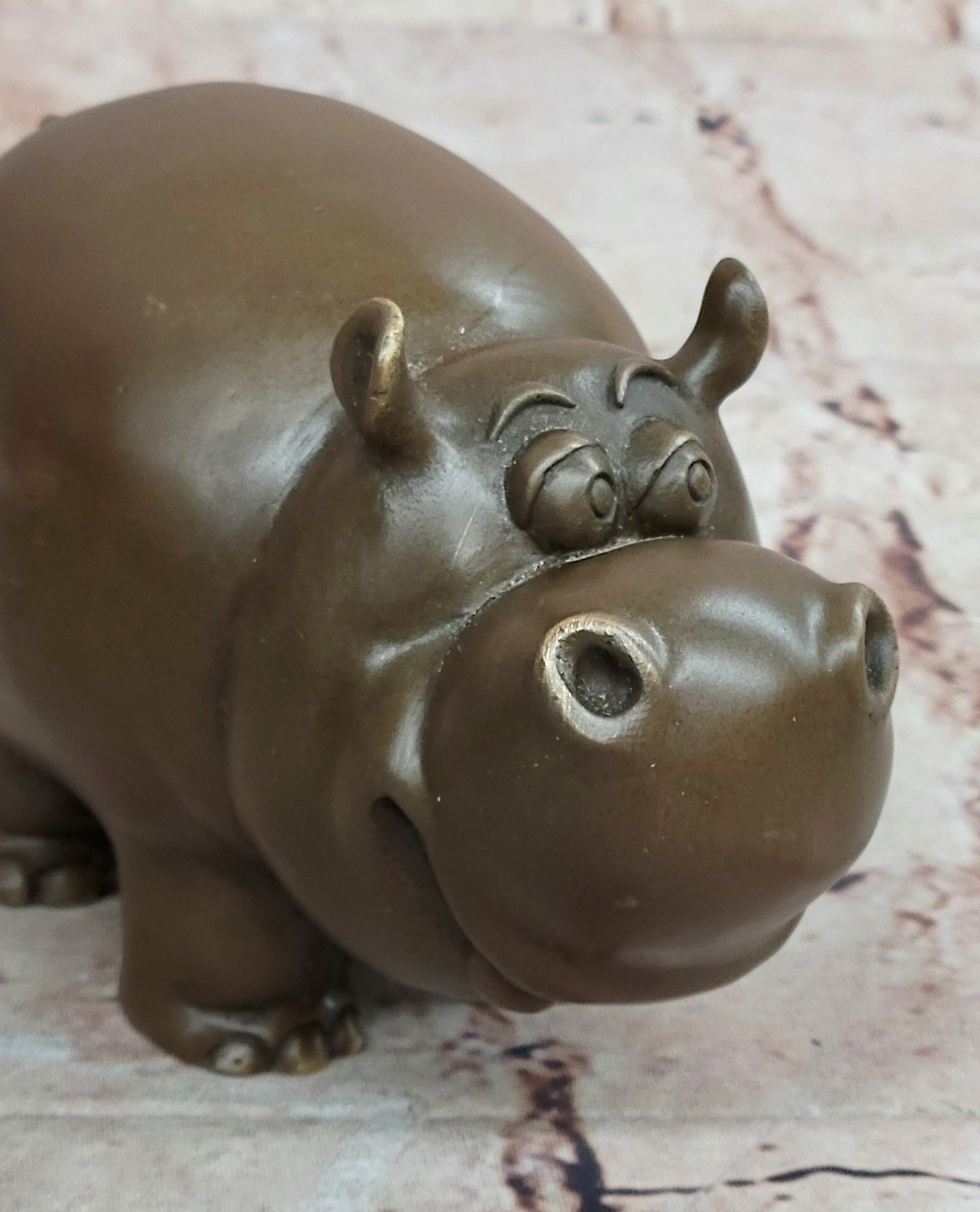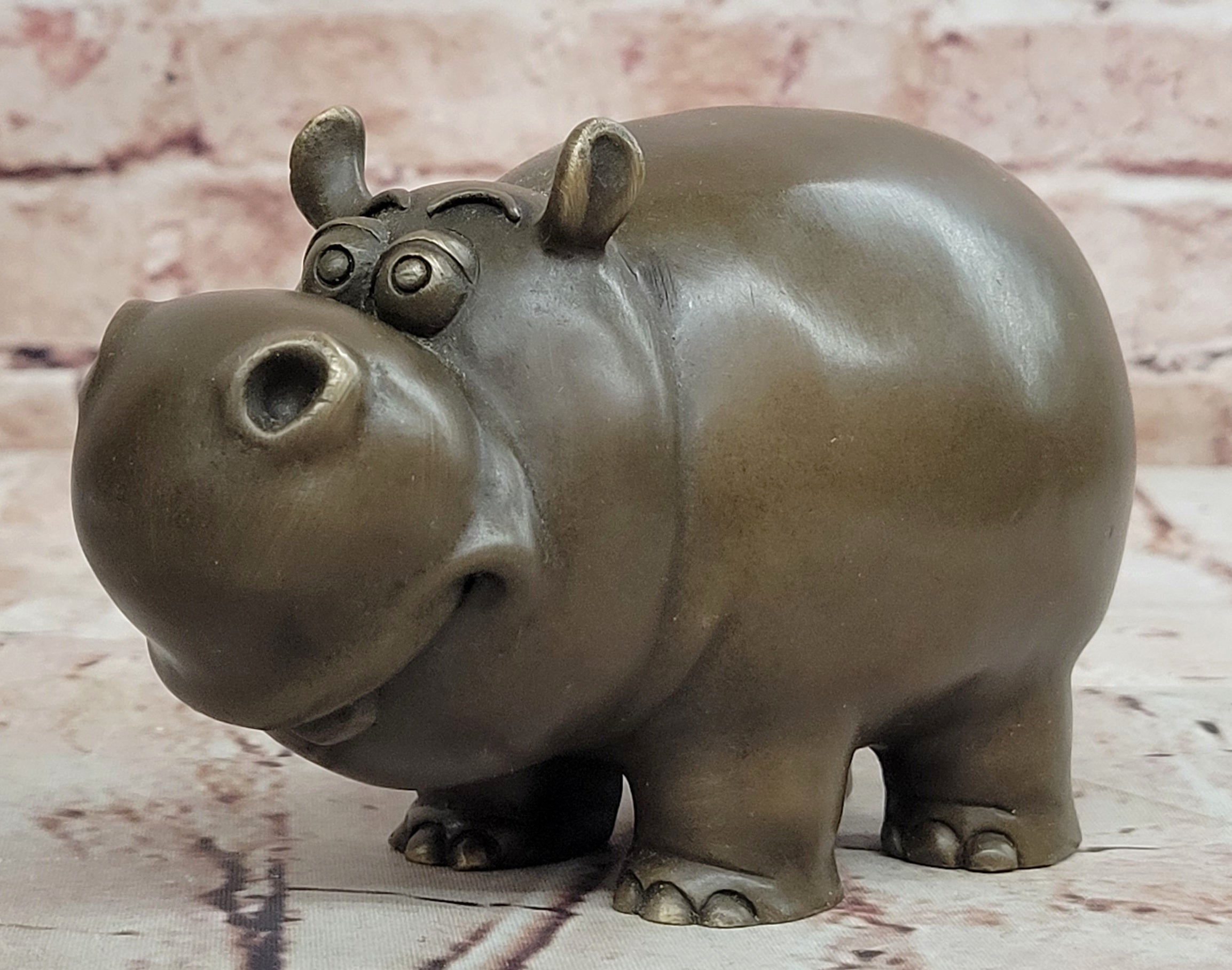 The sculpture features a rich brown patina that beautifully enhances the hippo’s rounded form and expressive character, giving the piece depth, warmth, and a timeless appeal. Carefully crafted proportions and smooth contours make this animal sculpture both playful and elegant.