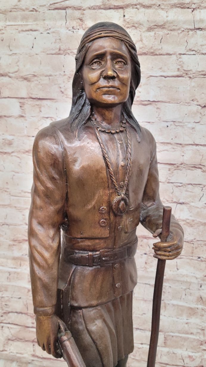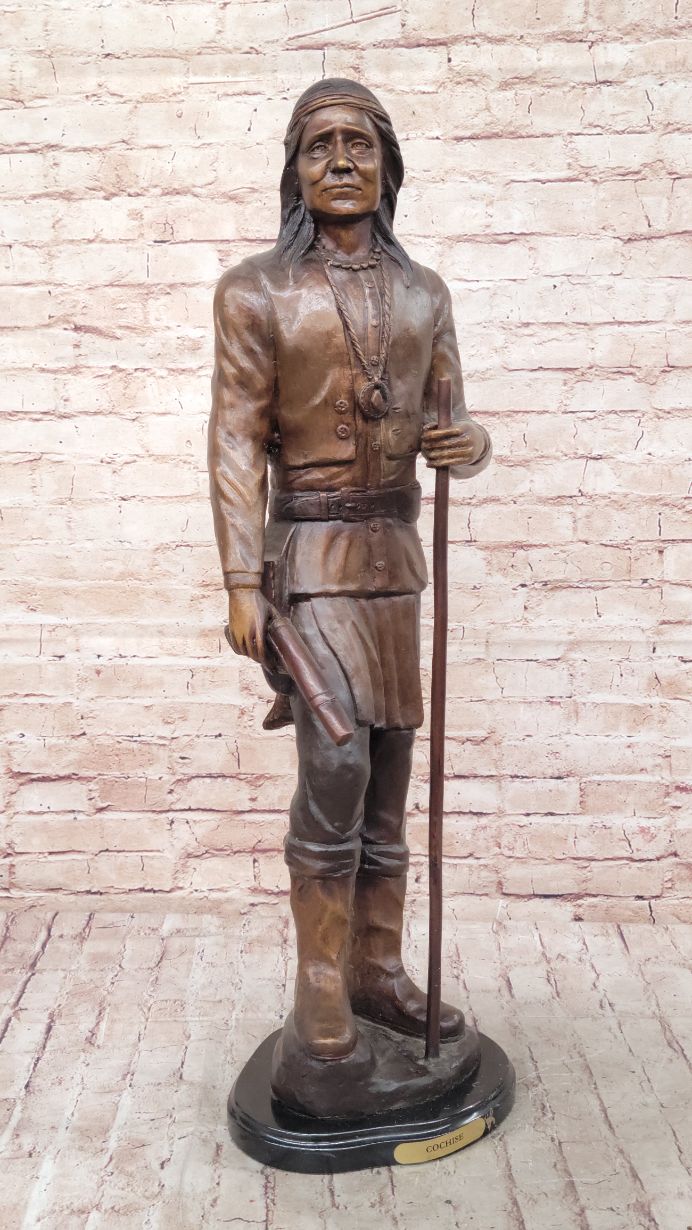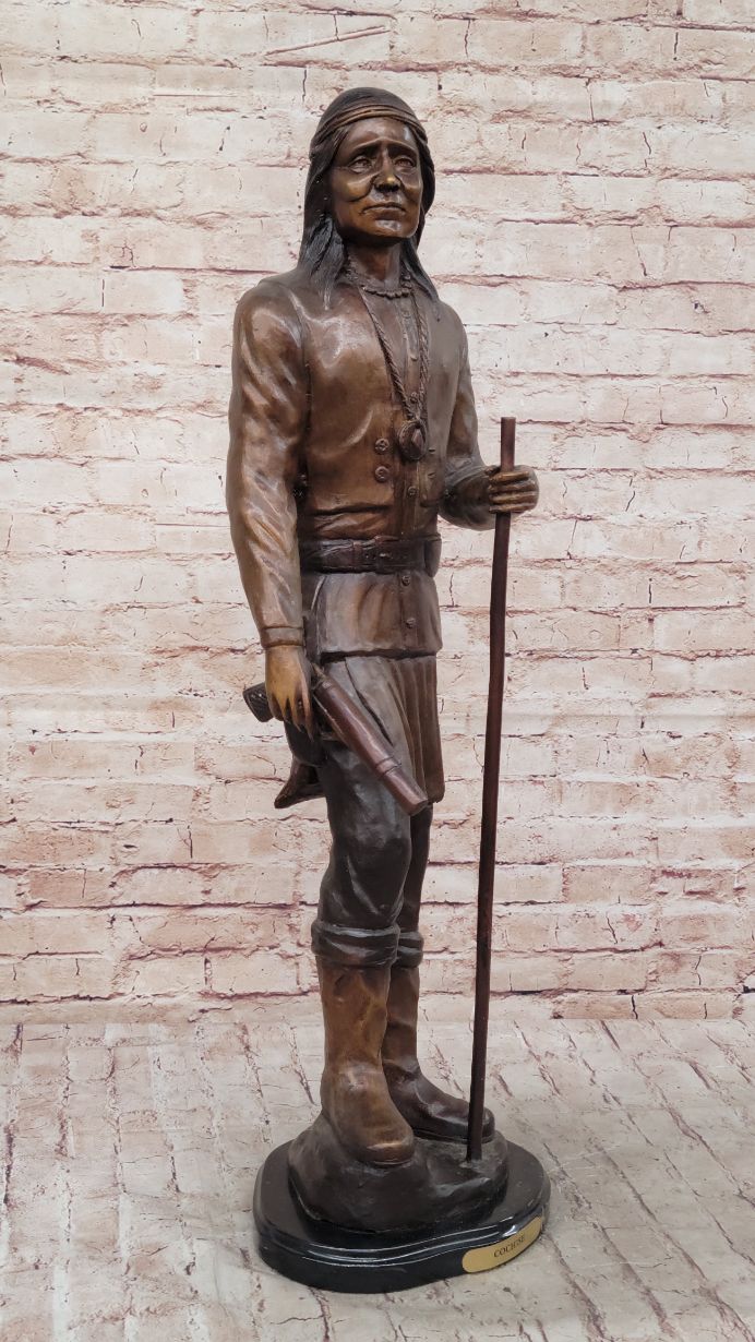 Native American Indian Apache Chief Cochise Bronze Statue Sculpture Figure on Marble Base
