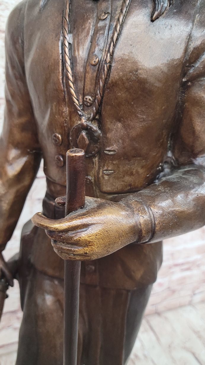 Crafted with meticulous care using the "Lost Wax Method," this 100% bronze sculpture showcases the artist's dedication to preserving history and honoring Cochise's legacy. The two-toned brown patina finish adds depth and realism to the sculpture, accentuating its intricate textures and details. Mounted on a marble base, this masterpiece serves as a symbol of courage and resilience, making it an exceptional addition to any collection or a striking centerpiece in your home or office.