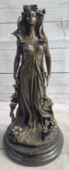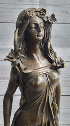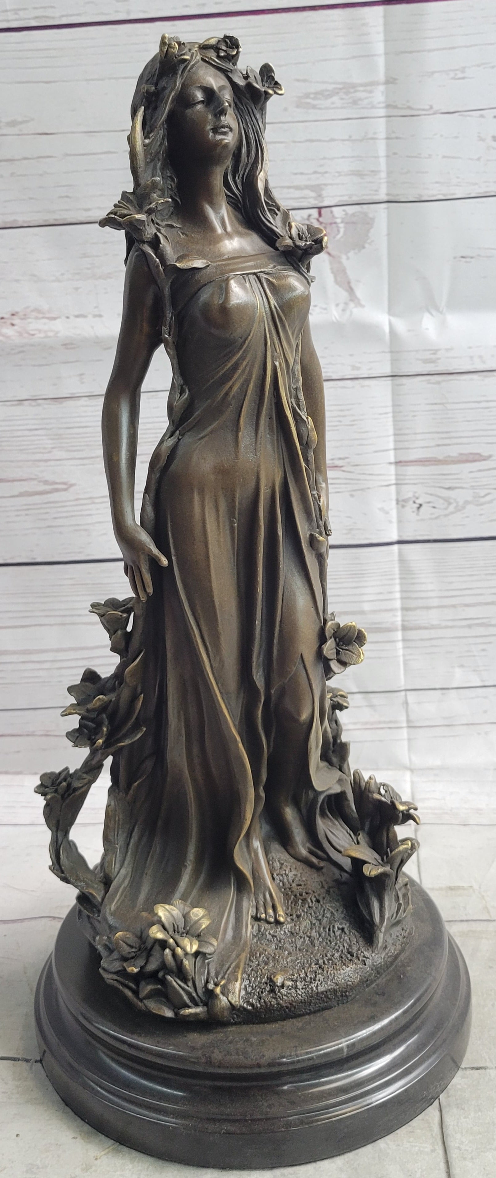 Nymph Girl With Floral Hair Crown Bronze Sculpture Statue Fantasy Art Decor Signed Original Vitaleh