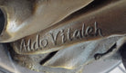 Mounted on a black marble base, this sculpture becomes a captivating focal point, inviting viewers to appreciate the harmonious blend of nature and human form. The artist, Aldo Vitaleh, leaves his signature on this exquisite work, further confirming its authenticity and contributing to its status as a unique and cherished piece of art. Displayed in a home, garden, or gallery, this sculpture brings a sense of calm and elegance to its surroundings.Bronze Dimensions with Marble Base: Height 17" X Width 7"