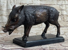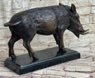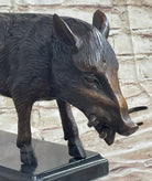 Wild Boar Hog Pig Tusks Bronze Sculpture Statue Figure Art on Marble Base