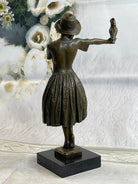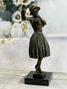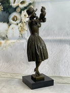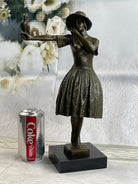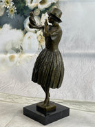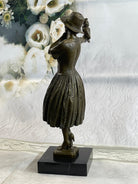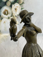 100% Solid Bronze Sculpture Lady with Bird Signed Real Art Hot Cast Figurine LRG