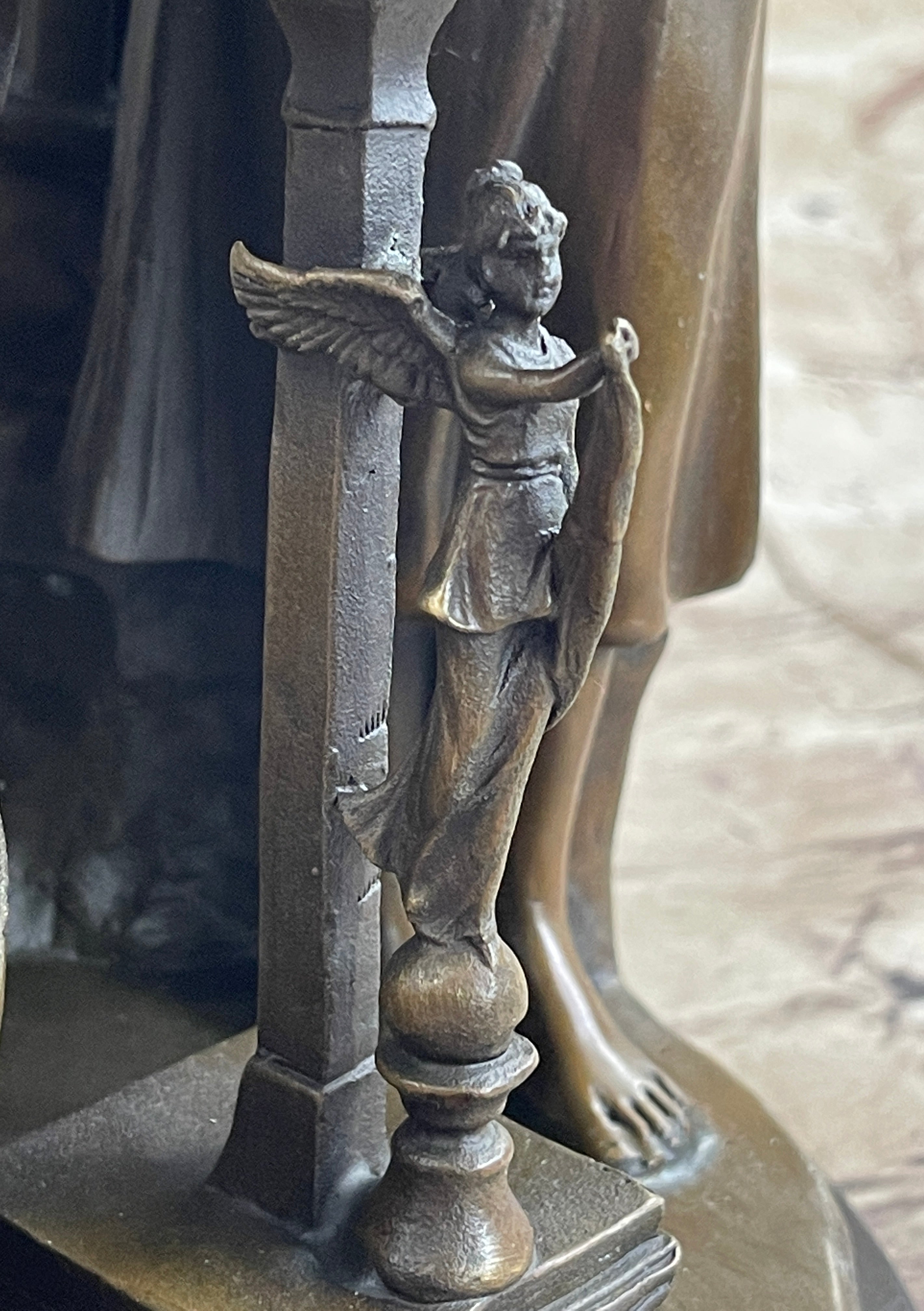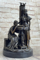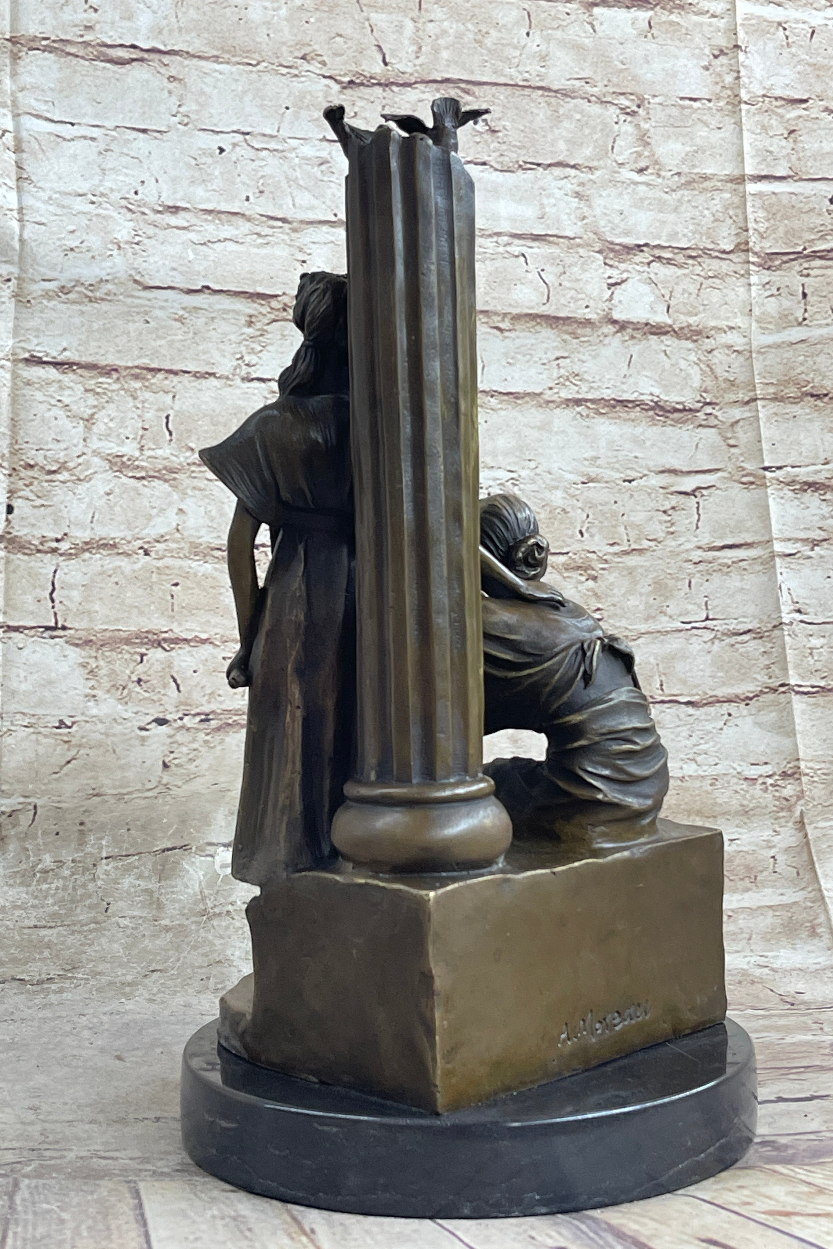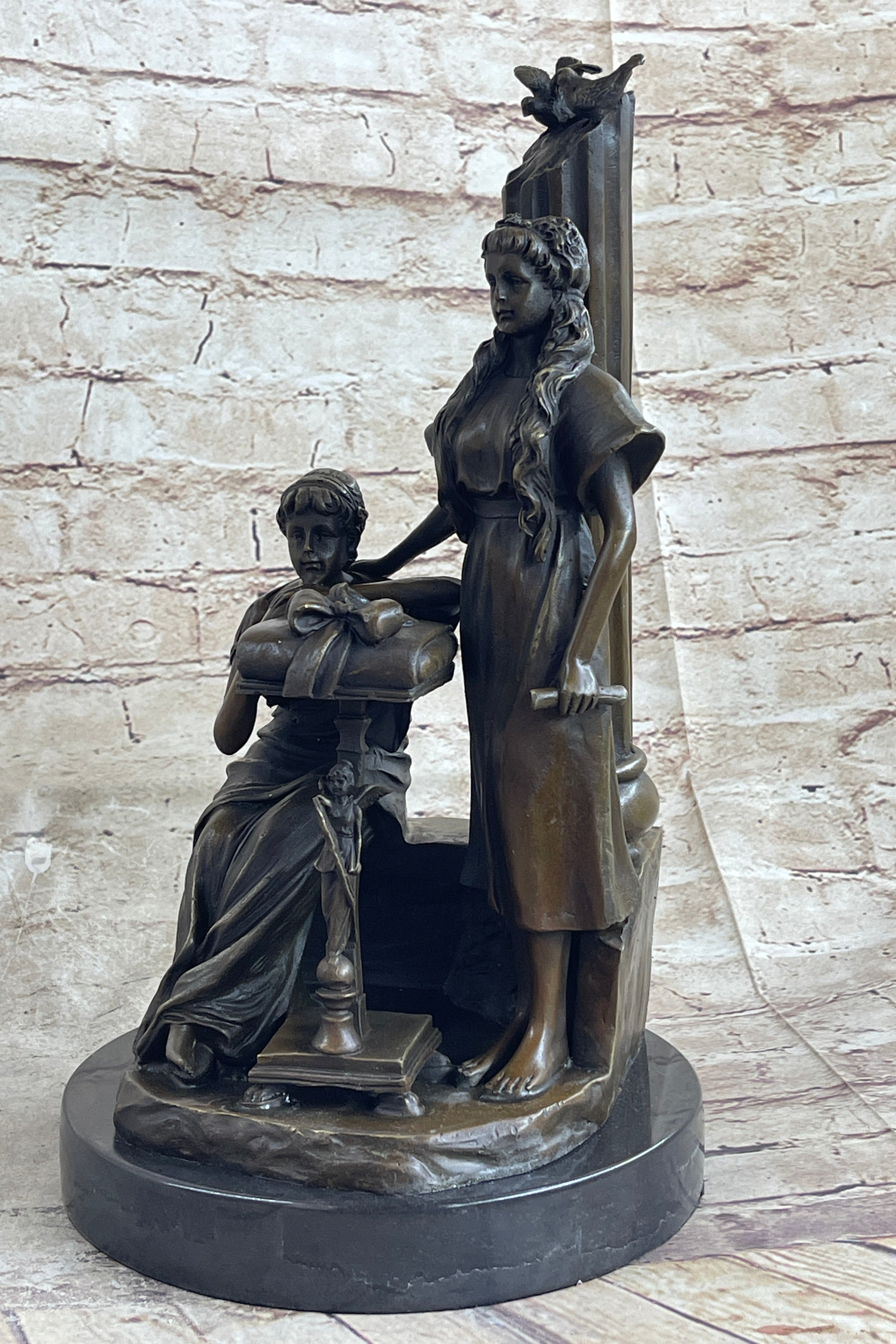 Two Young Girls w/ Book & Column Bronze Statue Sculpture Moreau Decor 14" x 8"
