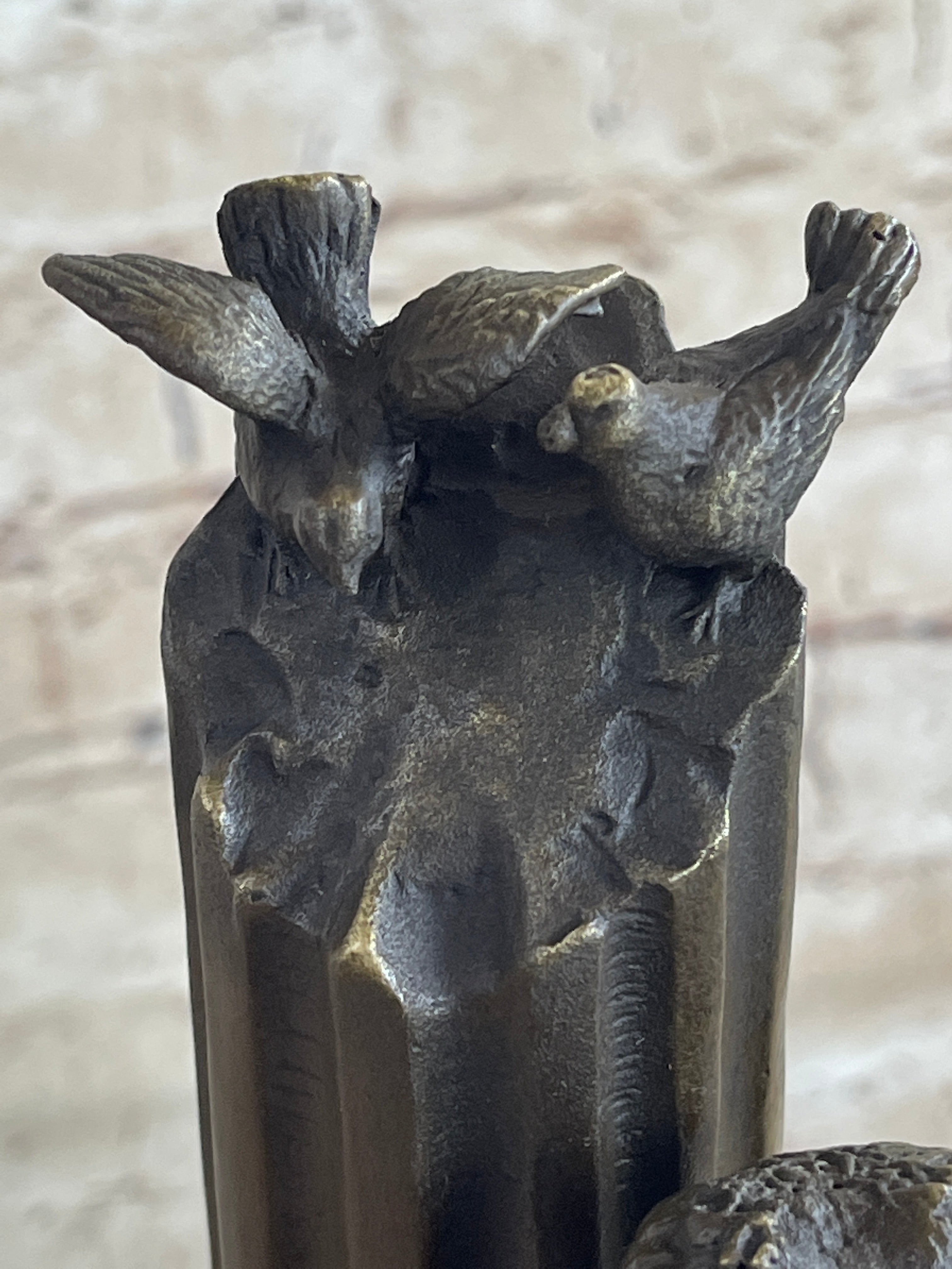 The sculpture beautifully portrays the timeless pleasure of reading and companionship. The warm brown patina finish enhances the delicate textures and lifelike features of the piece, making it a truly captivating addition to any collection or interior space. This is a fine example of Moreau’s mastery in expressing emotion and storytelling through bronze.Bronze Dimensions with Marble Base: Height 14" X Width 8.5"